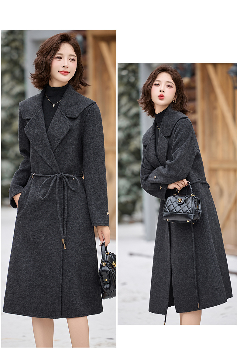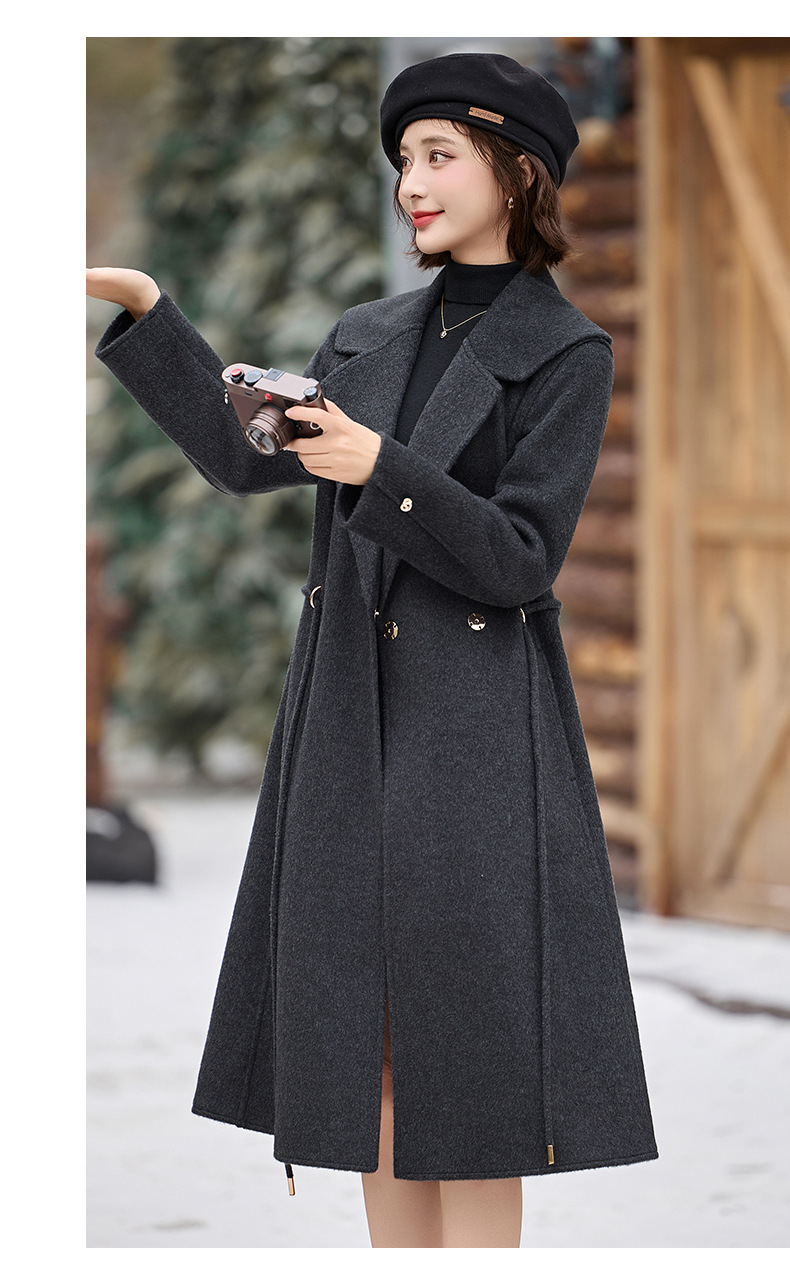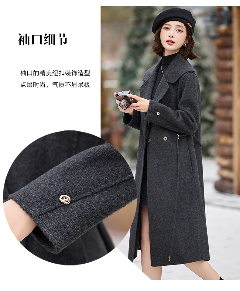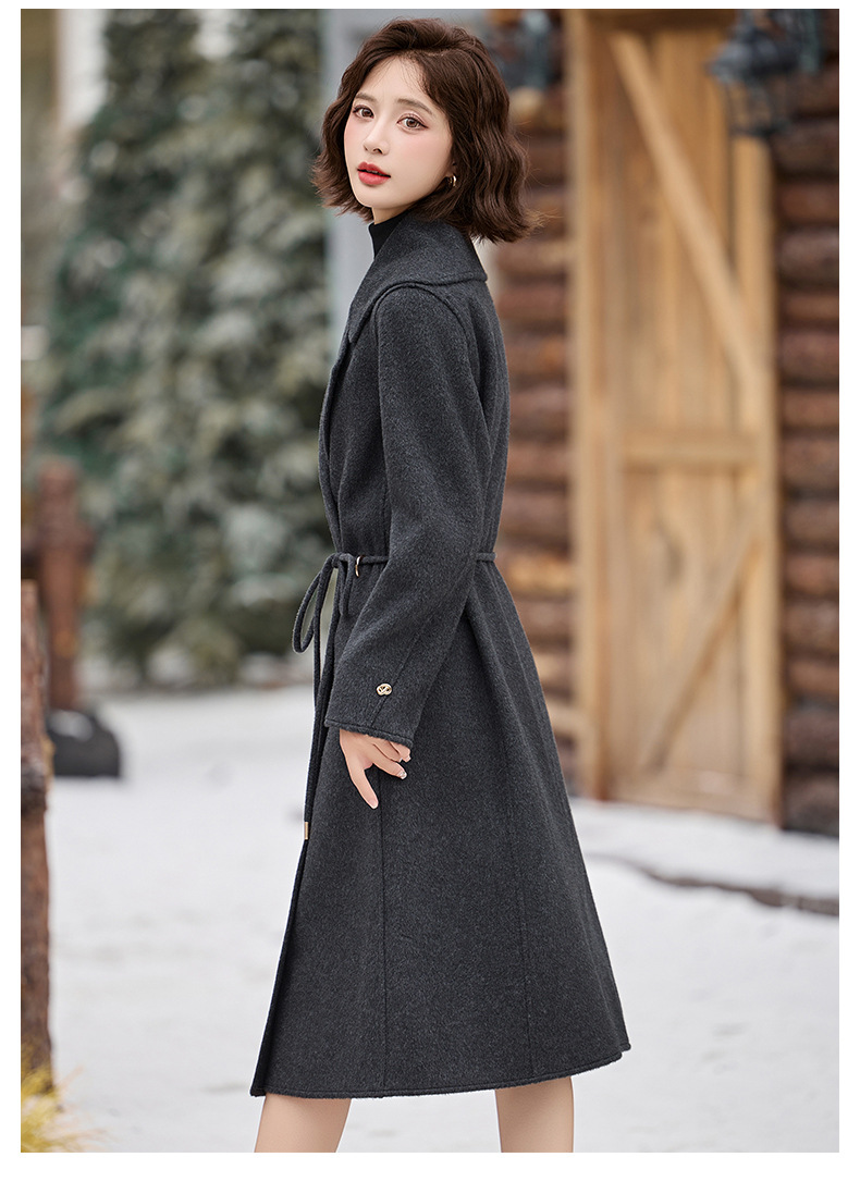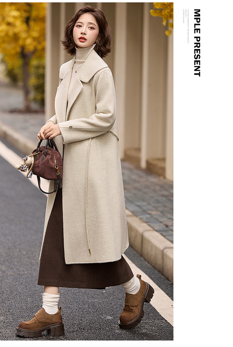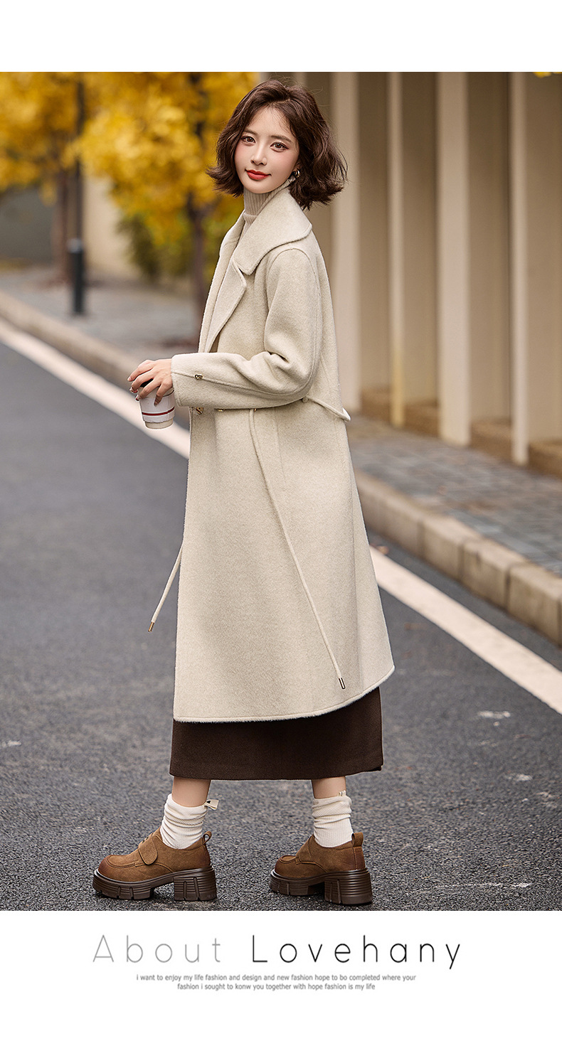 2025秋冬气质大翻领暗扣门襟系绳收腰双面羊绒大衣HR-MLJL16267
