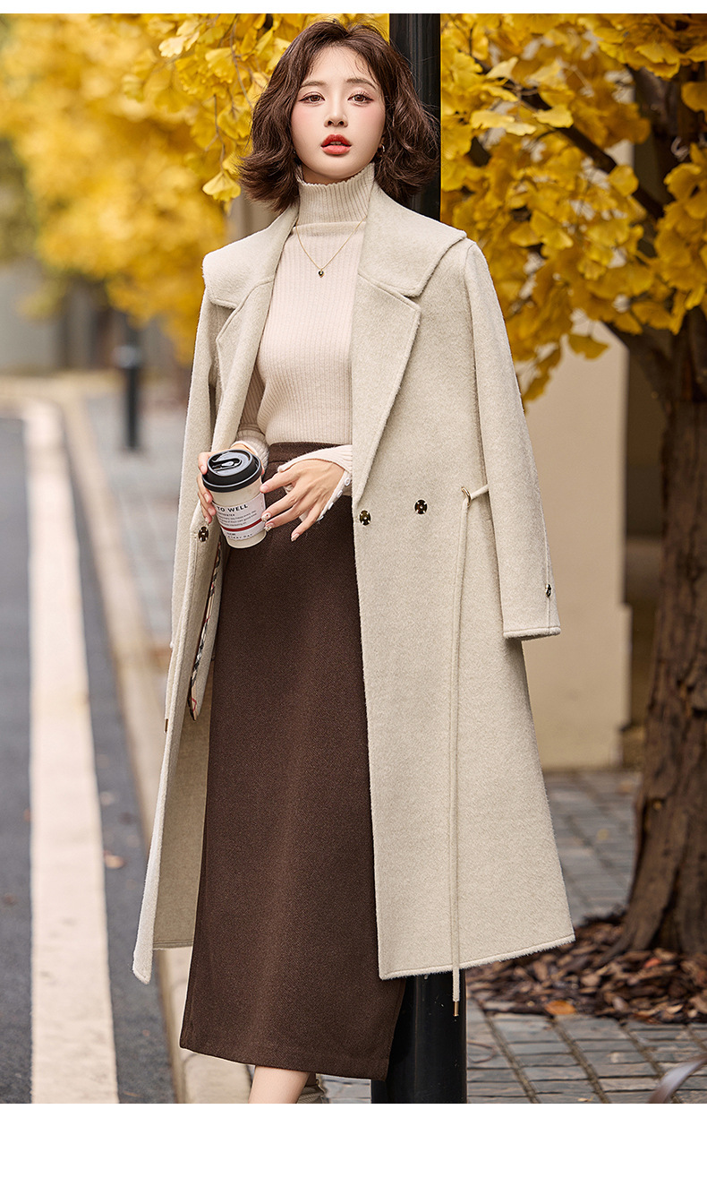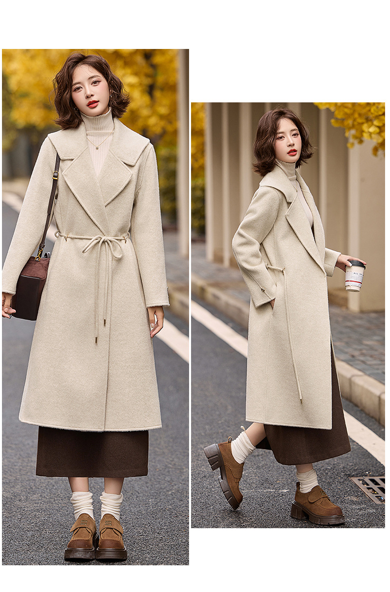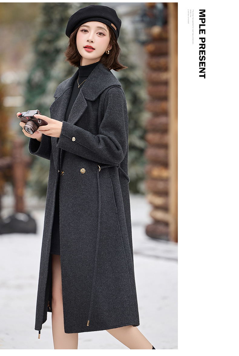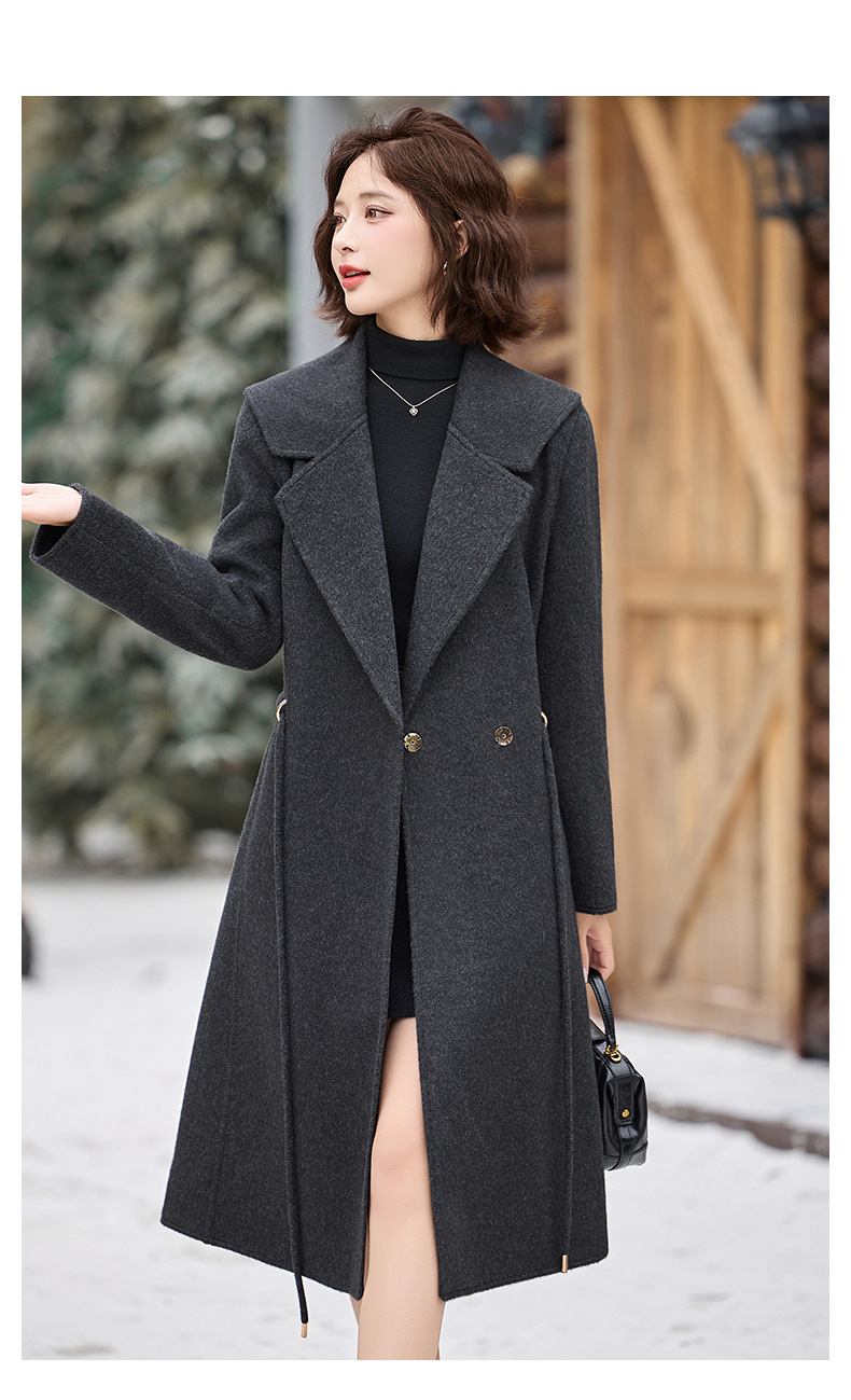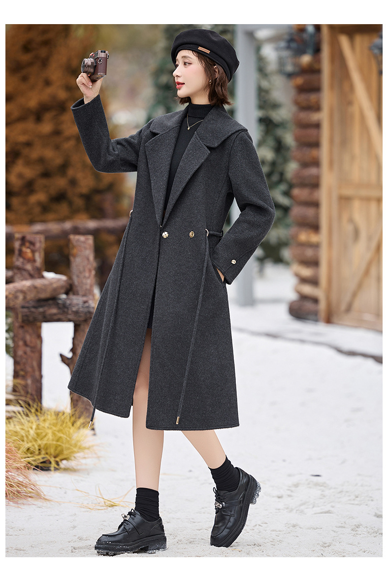 2025秋冬气质大翻领暗扣门襟系绳收腰双面羊绒大衣HR-MLJL16267