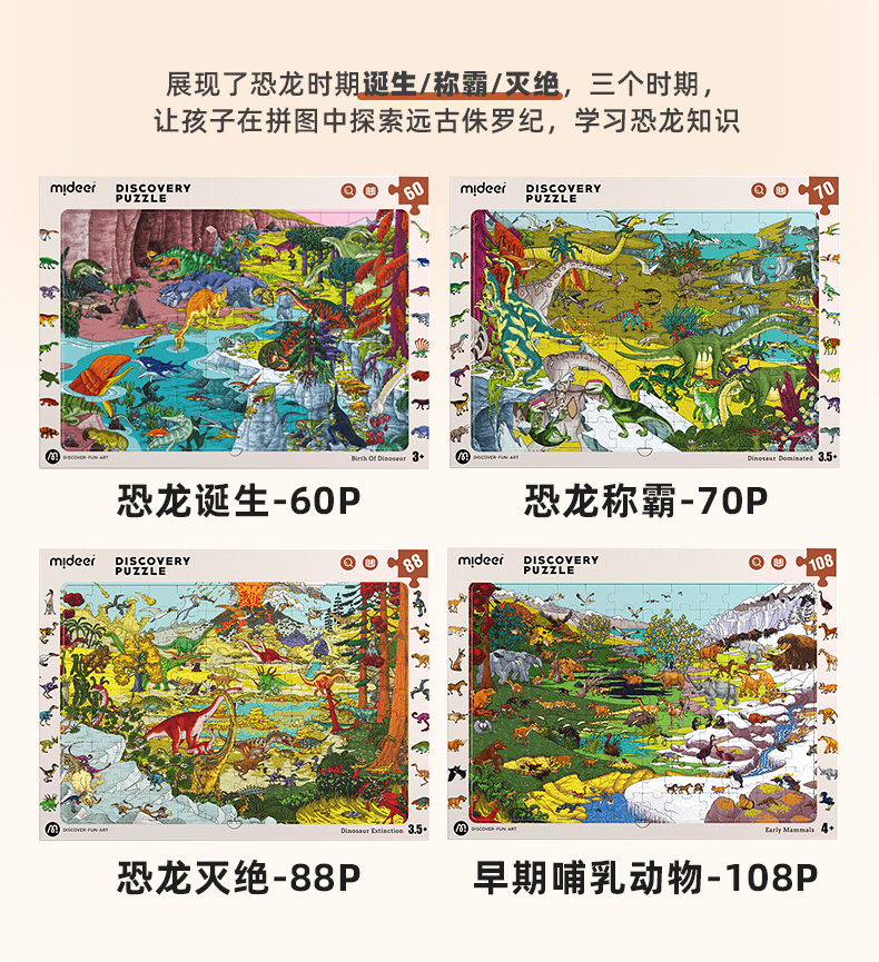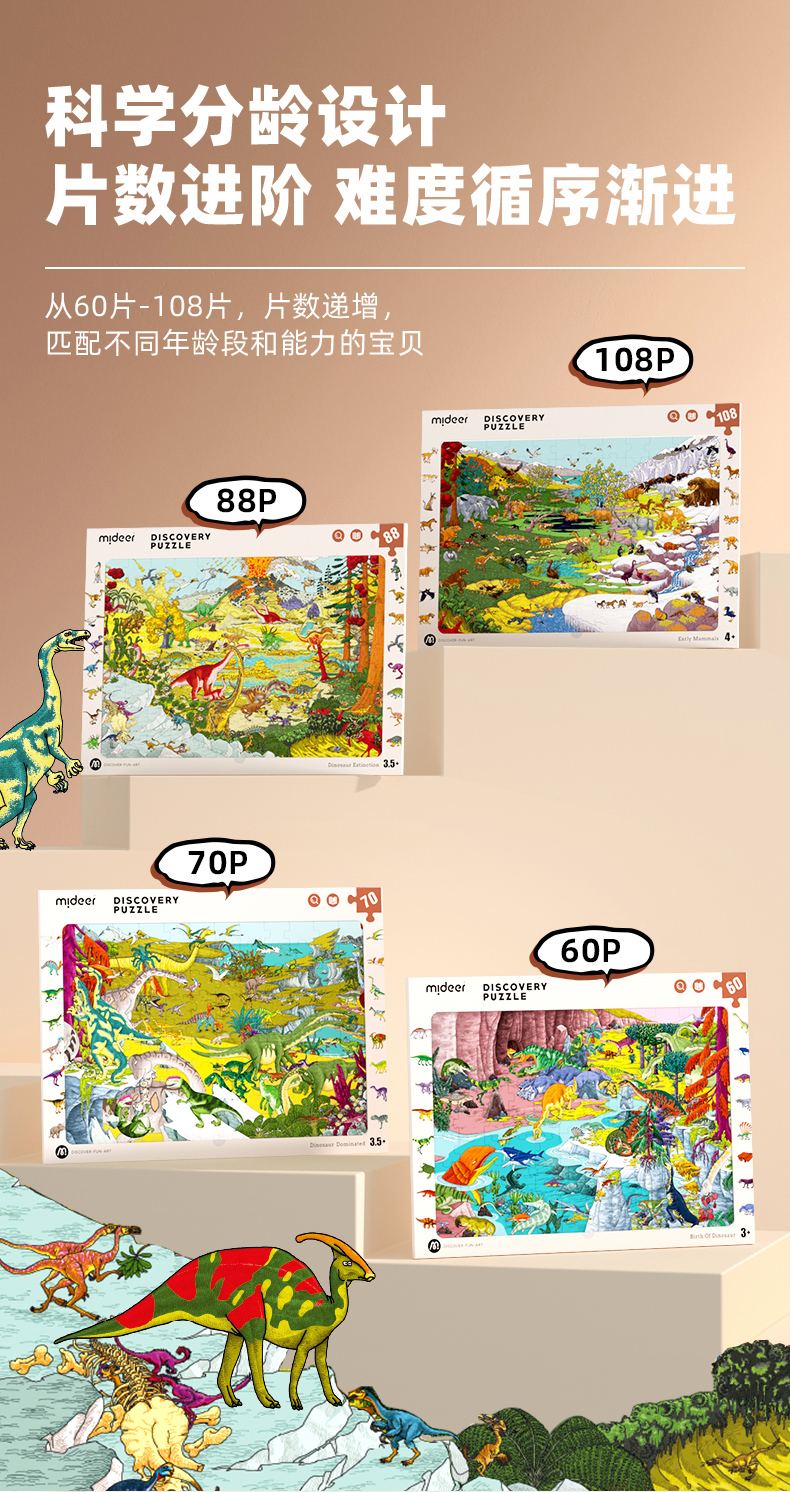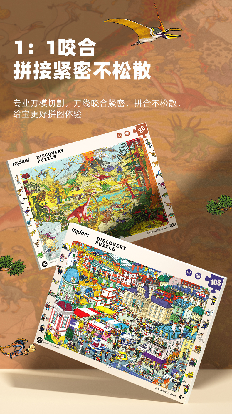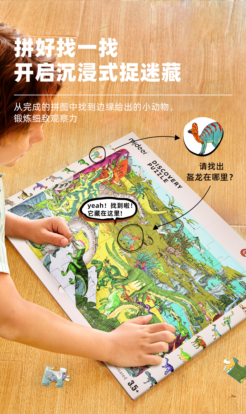 mideer弥鹿儿童拼图自然百科恐龙科普启蒙认知城市小学生玩具3+