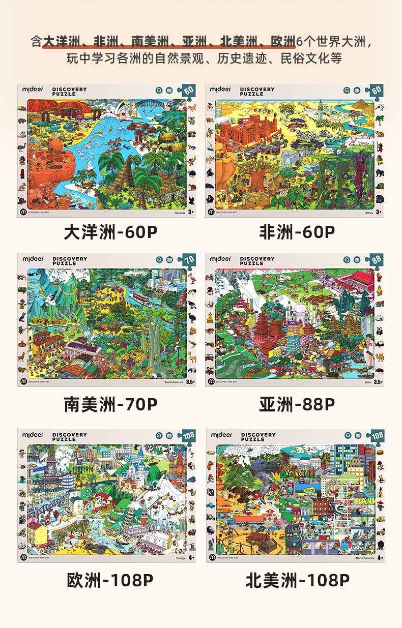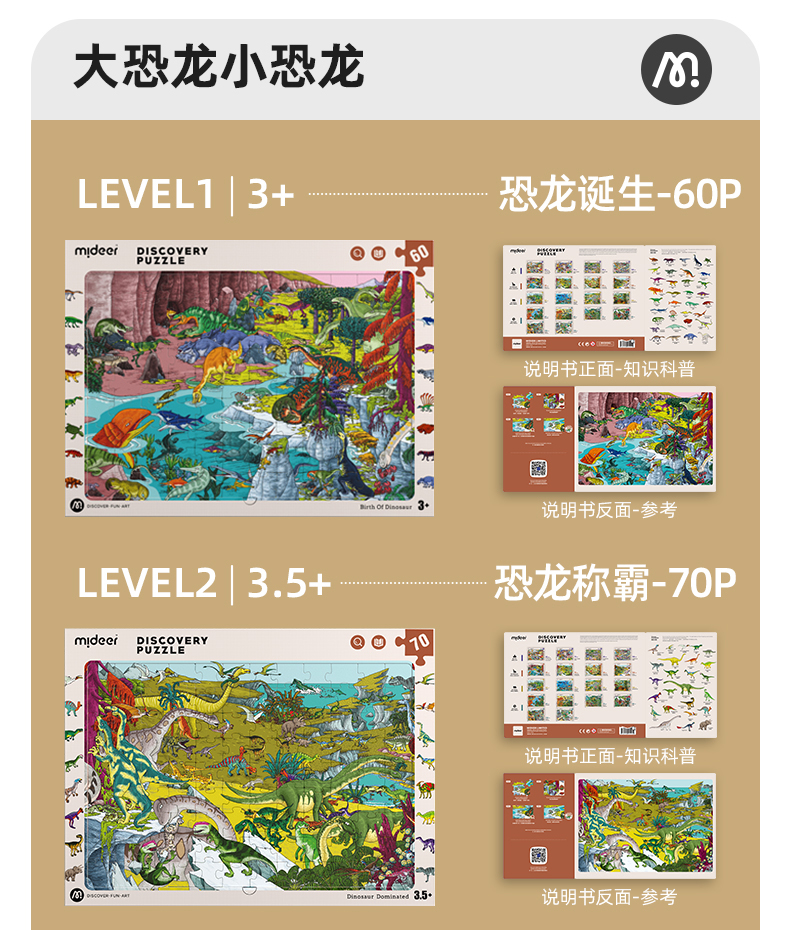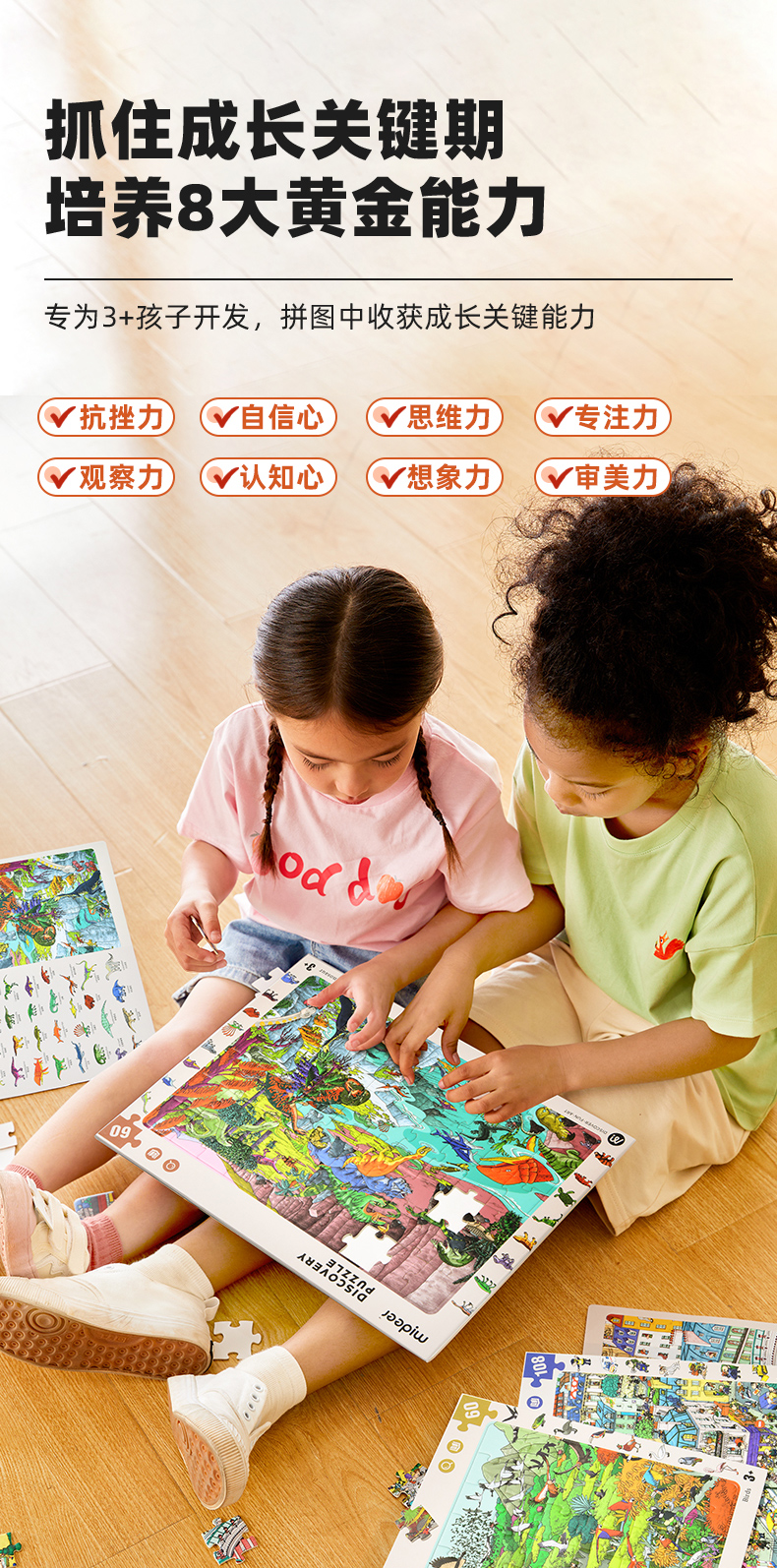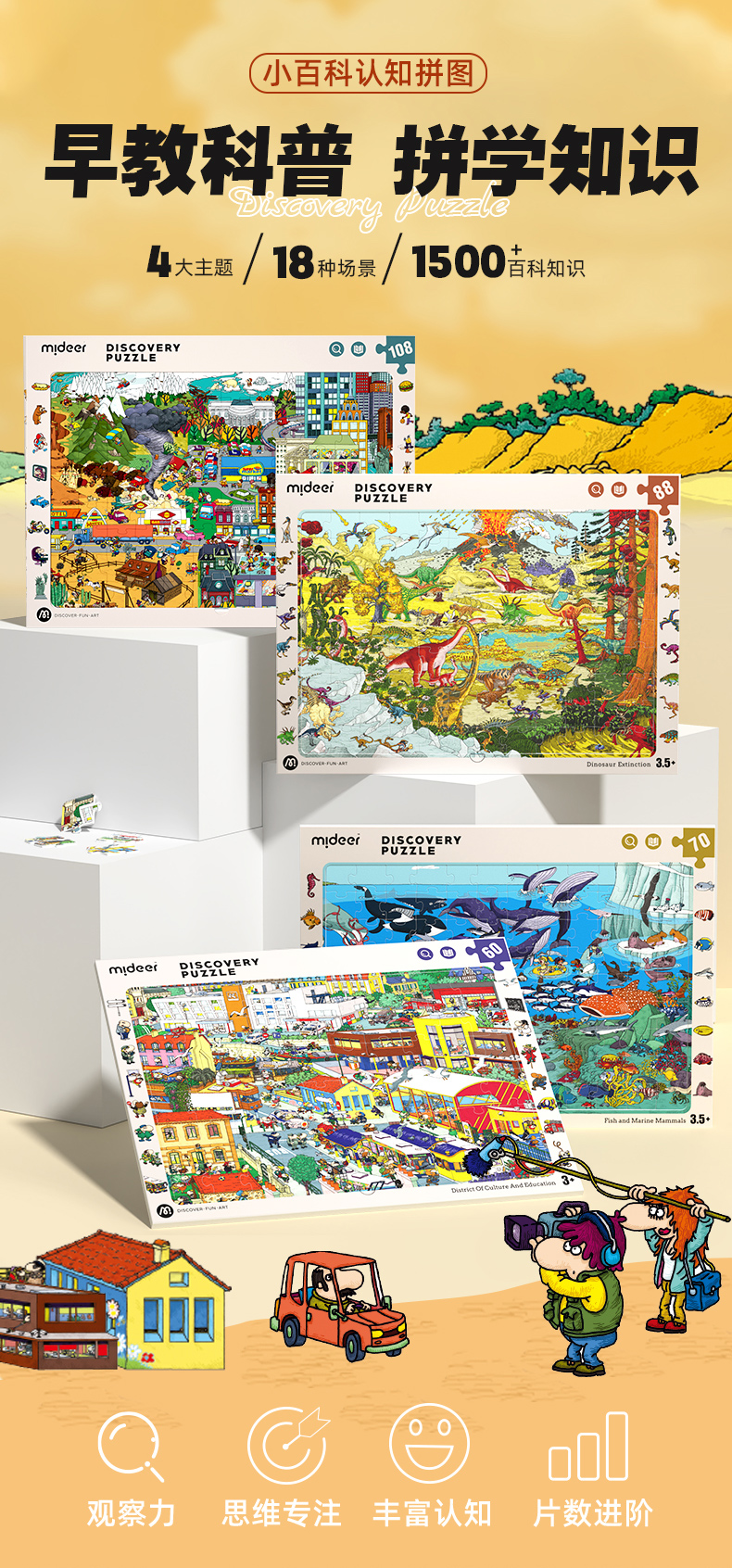 mideer弥鹿儿童拼图自然百科恐龙科普启蒙认知城市小学生玩具3+