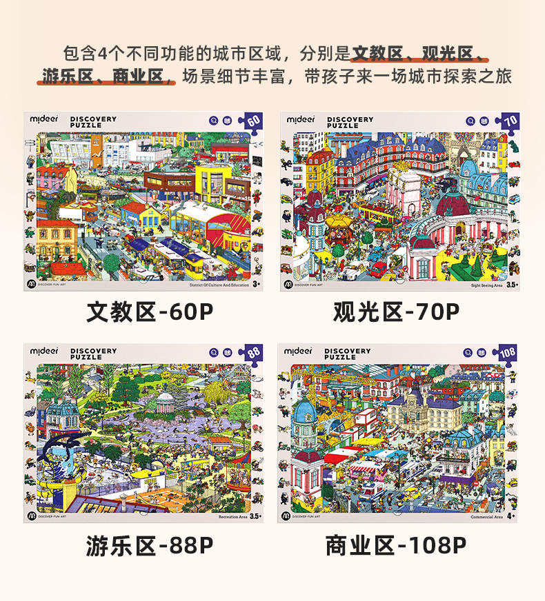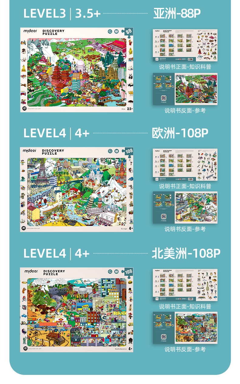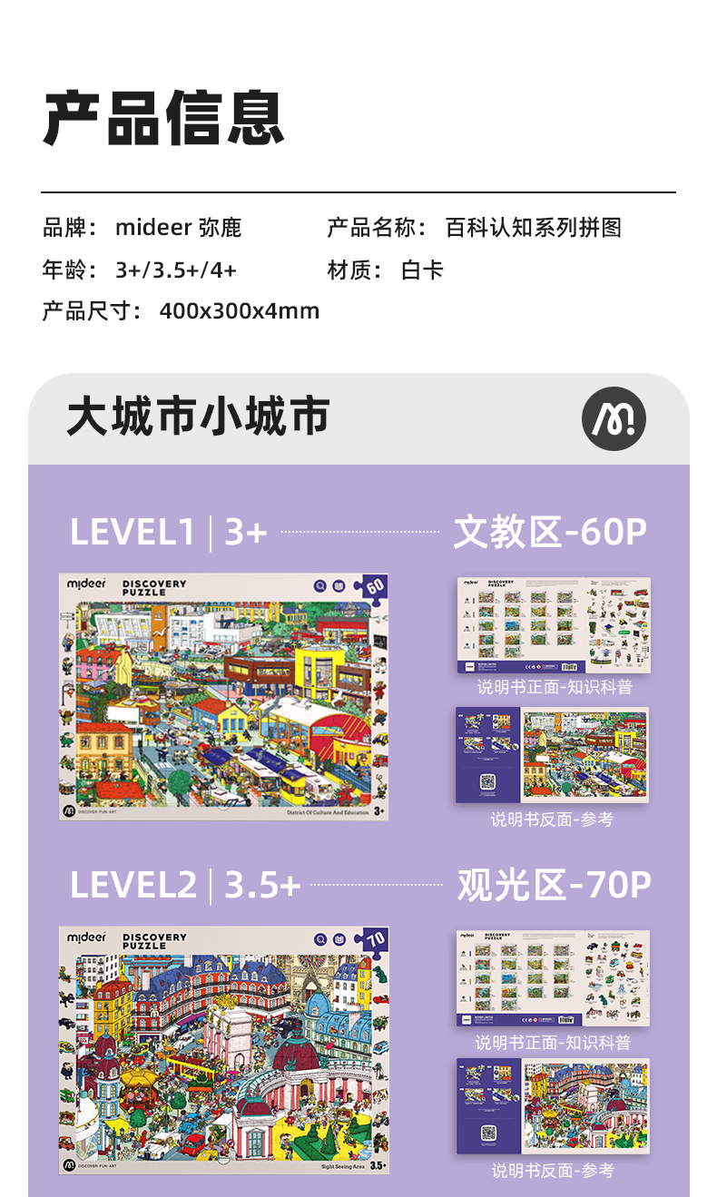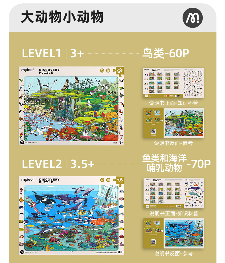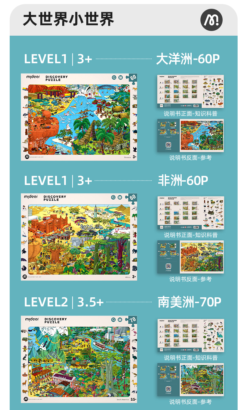 mideer弥鹿儿童拼图自然百科恐龙科普启蒙认知城市小学生玩具3+