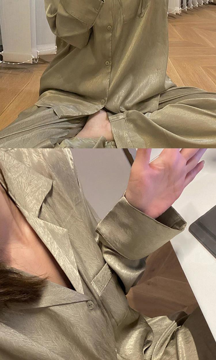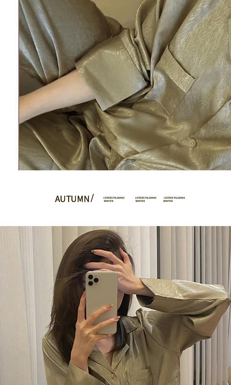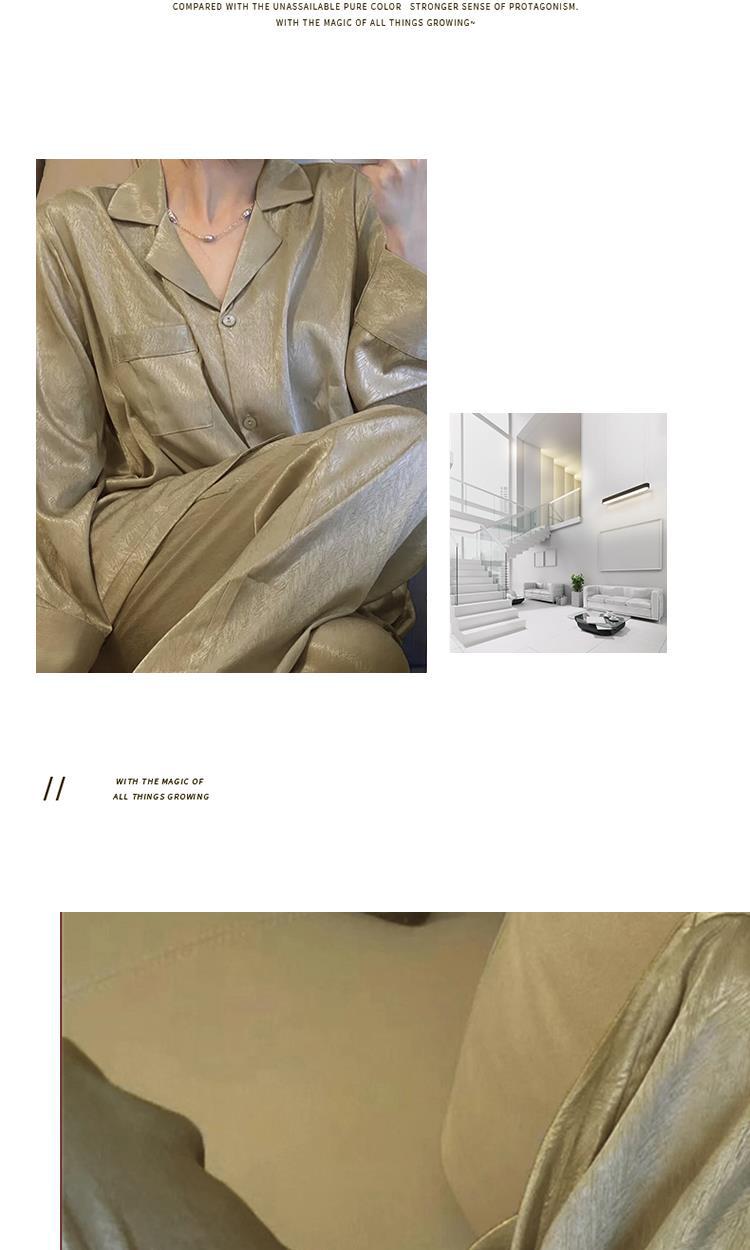 【法式睡衣女秋款冰丝薄款家居服】2023年新款气质长袖长裤套装,保型V领修饰颈部线条 环保活性印染 松紧裤腰带刚刚好不勒 挺阔裤腿 自在不束缚,舒适居家。