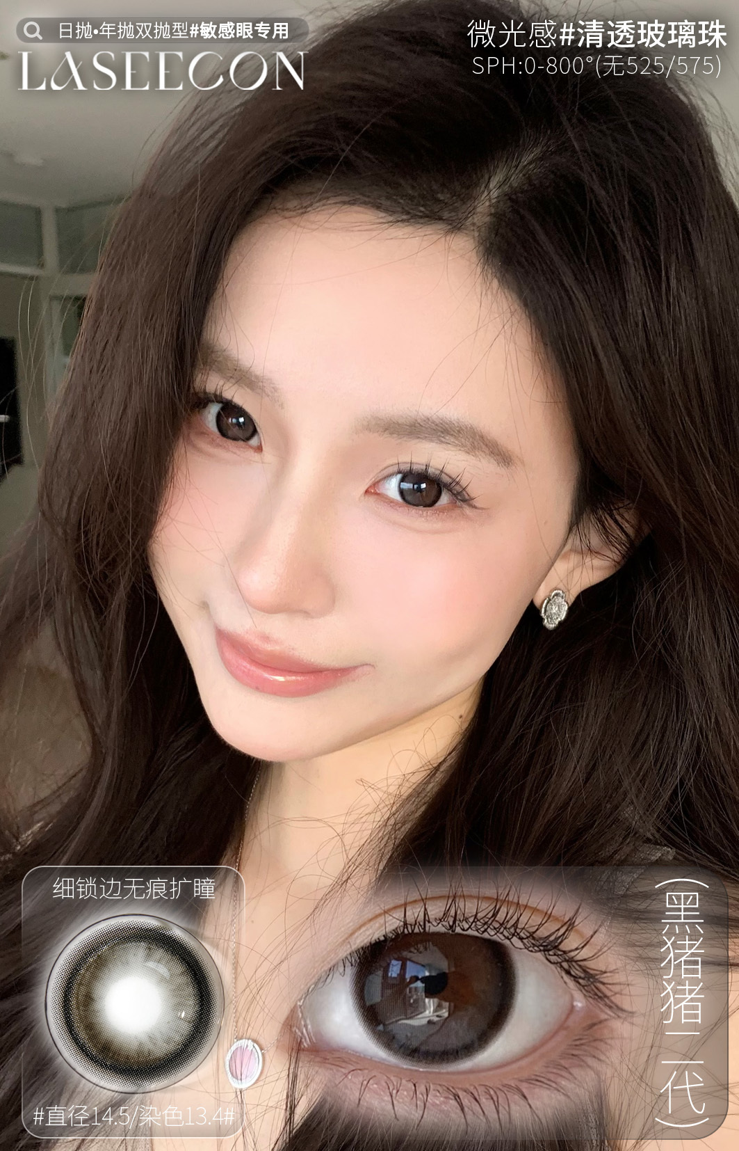 laseecon日抛 黑猪猪二代 14.5mm 一盒10片 日抛无售后!!!有同款年抛
