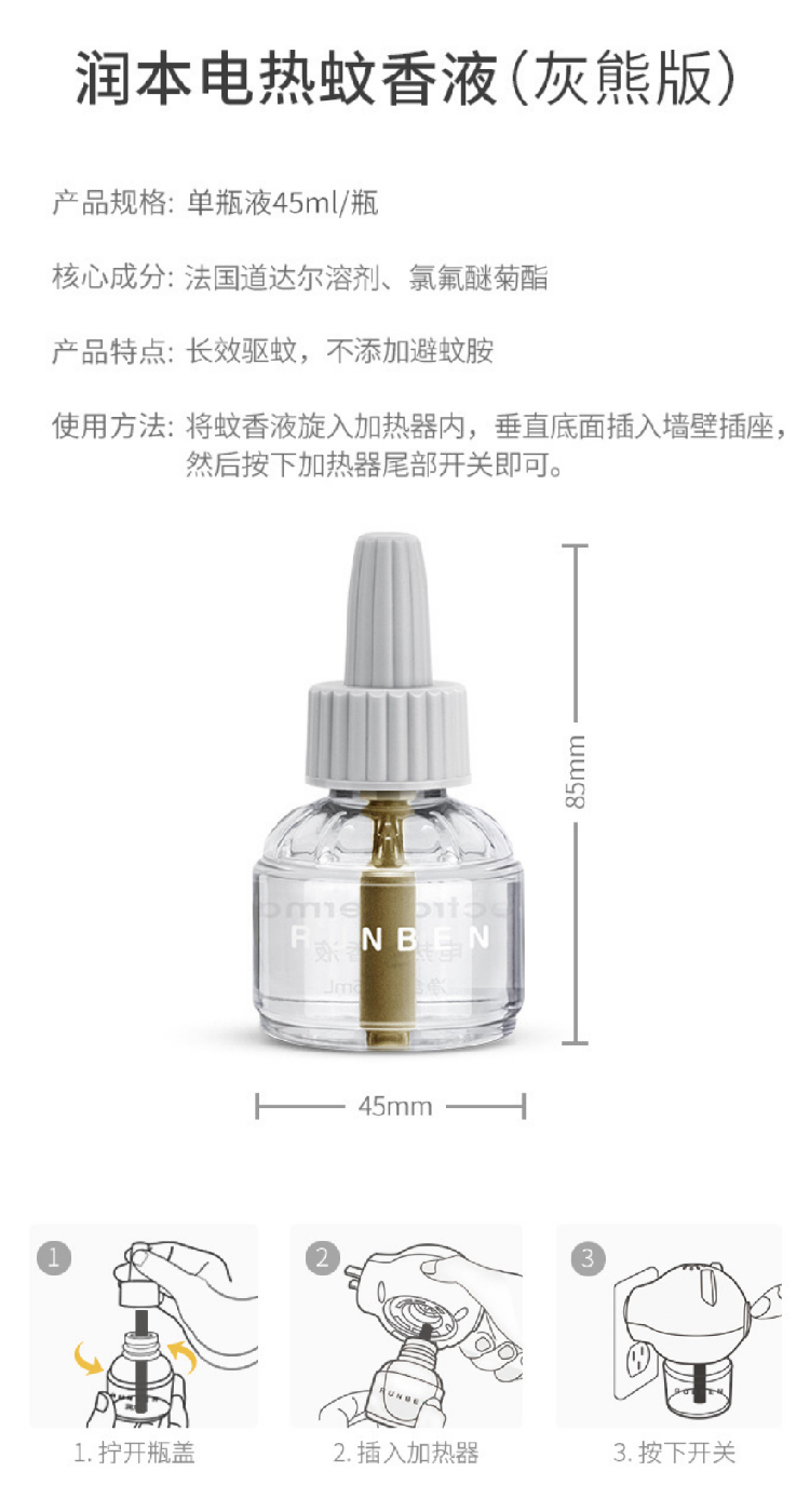 【润本驱蚊液3液+1器】夏季无味婴儿孕妇家用驱蚊器 插电式宝宝小熊电蚊香套组