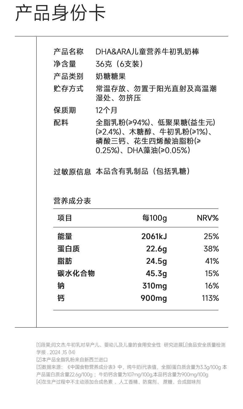 【不二宝贝】DHA&ARA儿童营养牛初乳奶棒