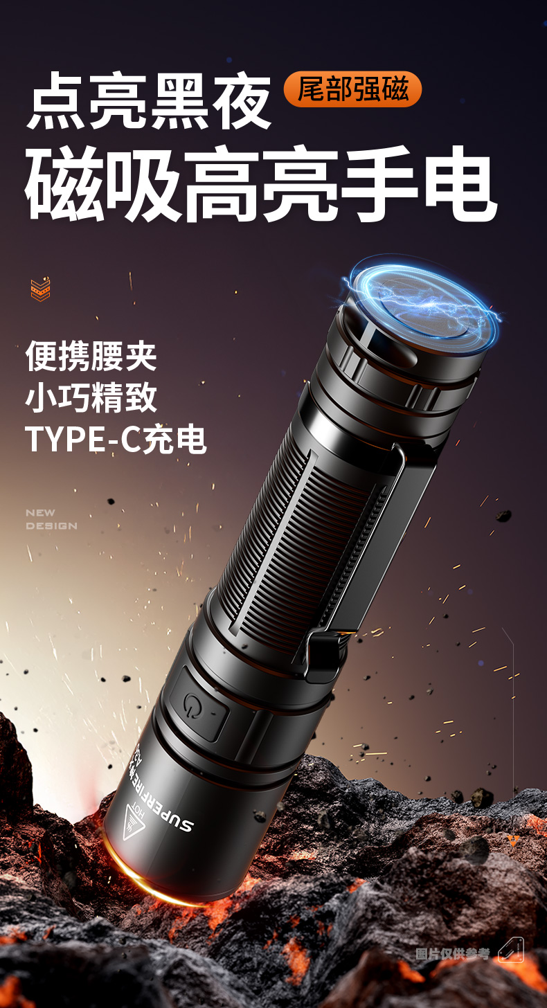 神火A36强光手电筒小型便携磁吸户外维修作业小手电可充电LED灯