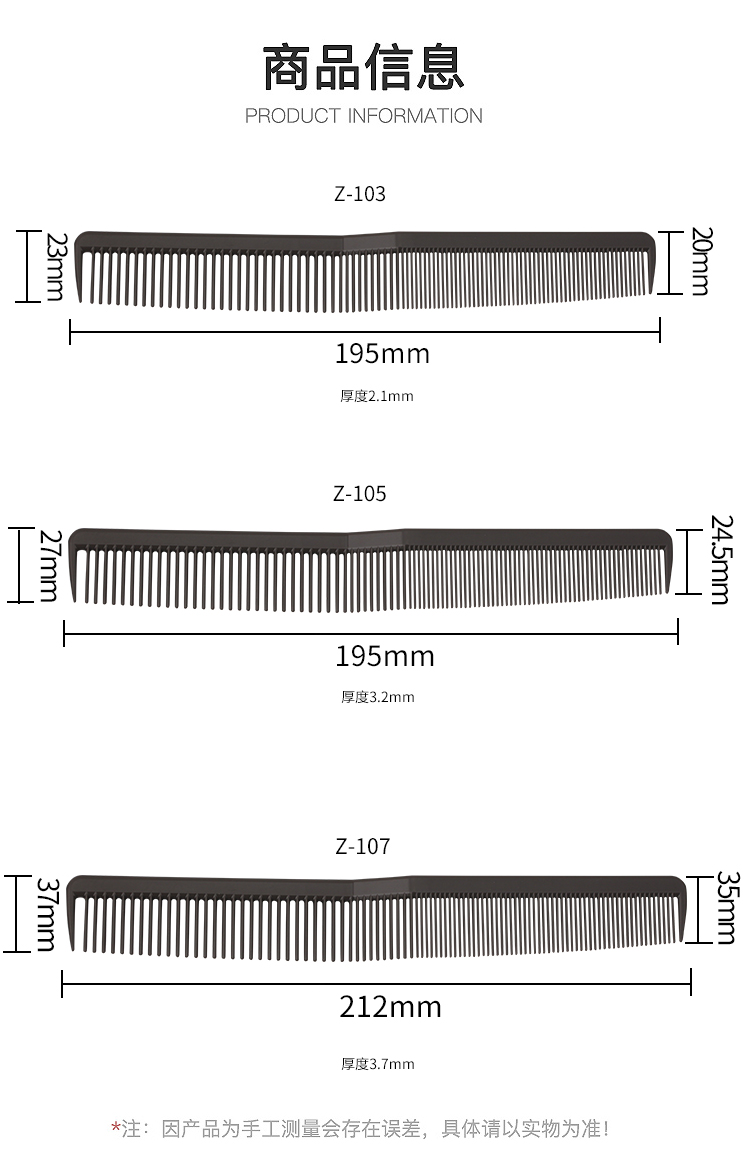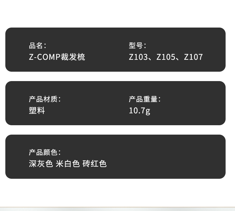 Z-comp裁发梳Z107/Z103/Z105 梳子女剪发梳 理发师专用剪发梳子 台湾品牌 正品