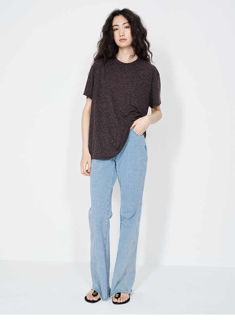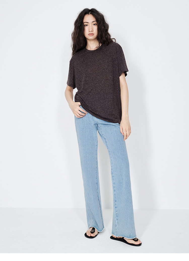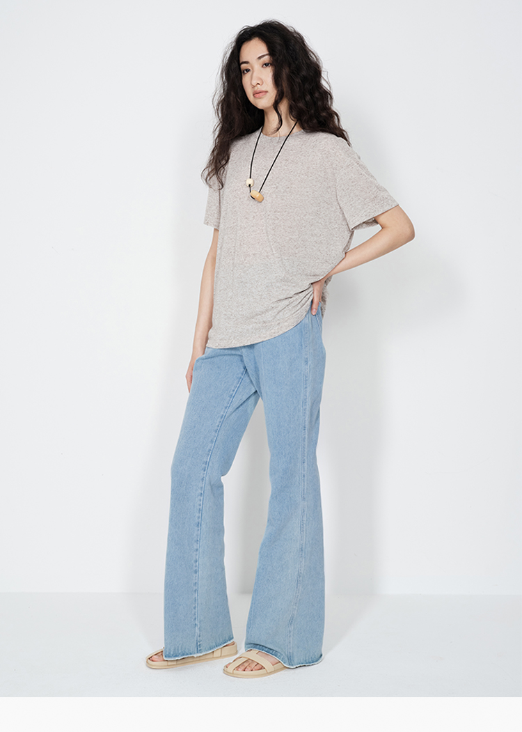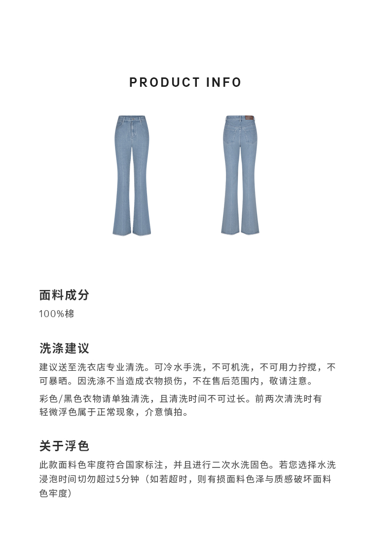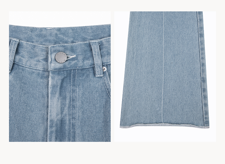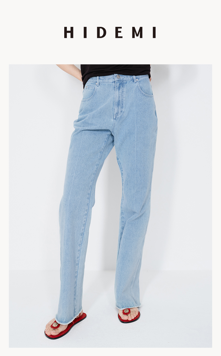 HIDEMI 经典牛仔系列水洗做旧感滚边水洗蓝微喇牛仔裤