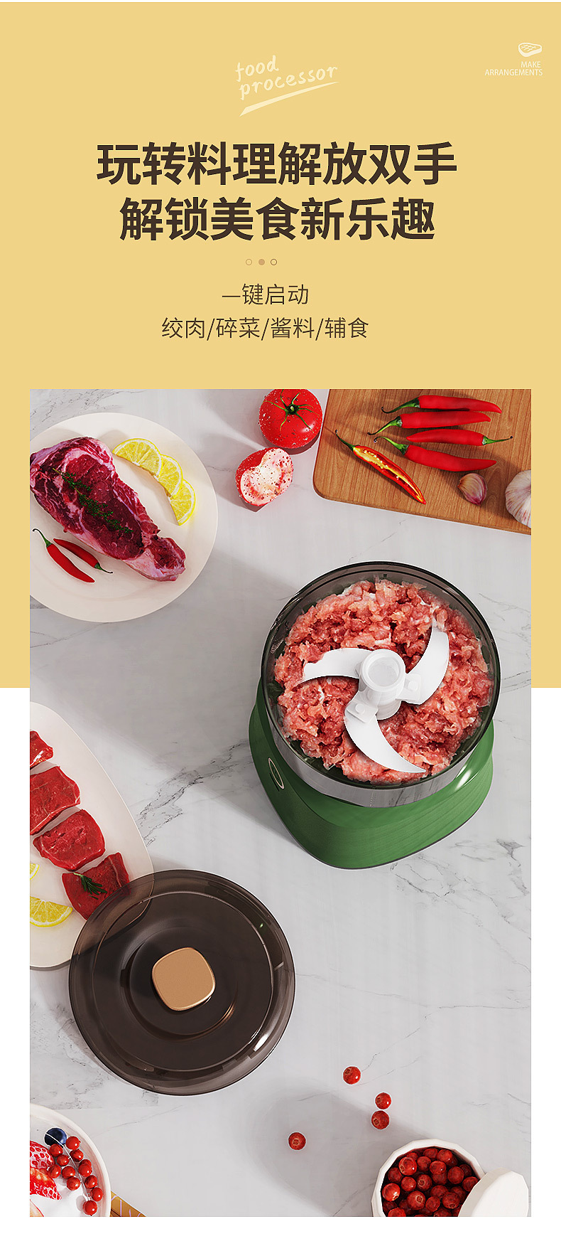 【一键电动切碎!食材秒变佐料】新款多功能料理机无线电动绞肉机家用厨房捣蒜器宝宝辅食机,轻松获得百样辅料,小白也能秒变大厨。ry