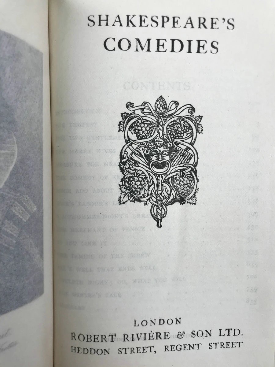 工坊特装本!约20世纪早期 莎士比亚喜剧集 1幅肖像插图 真皮精装36开