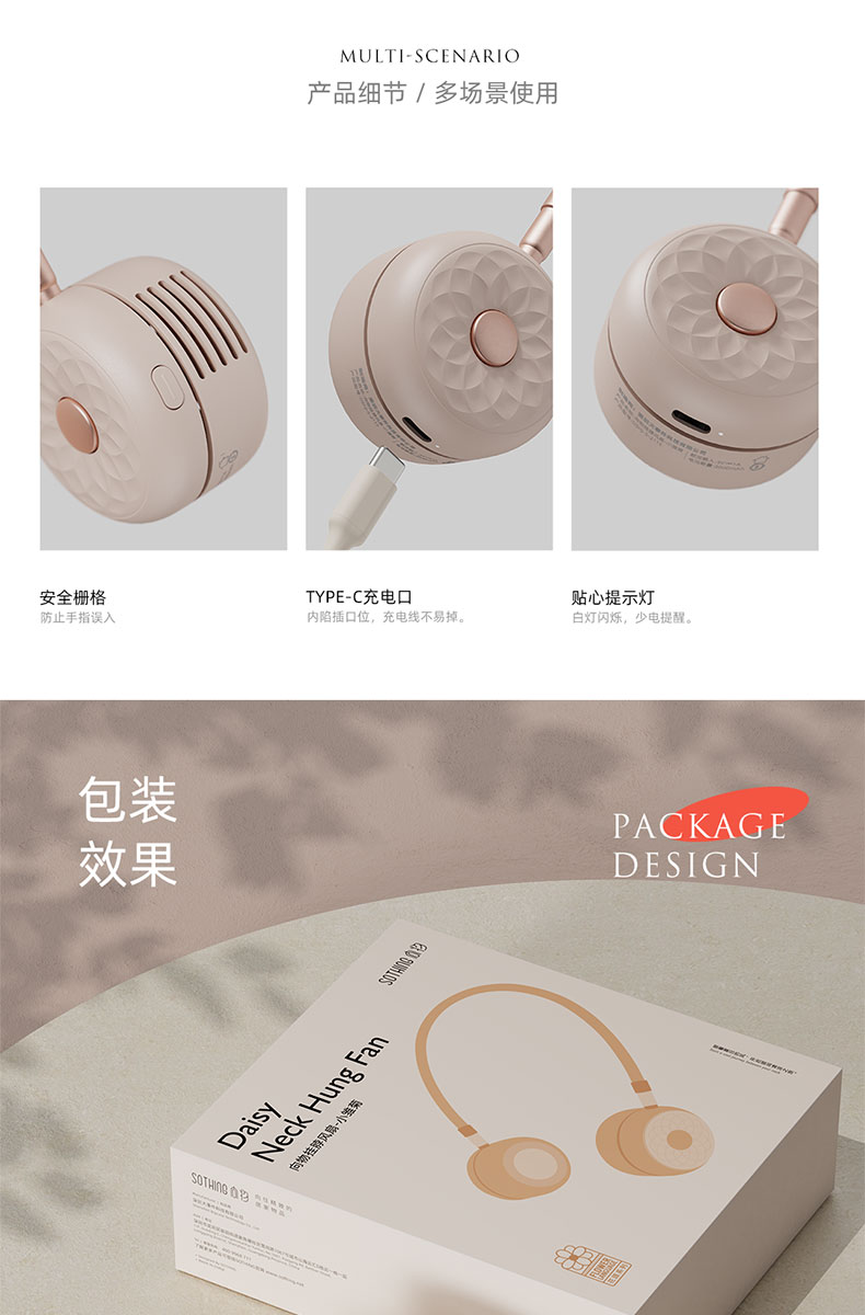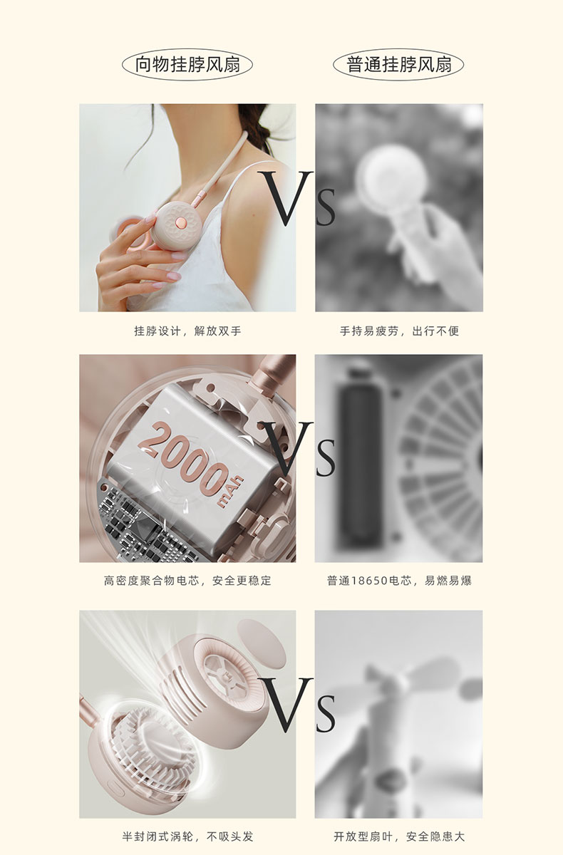 向物(SOTHING)挂脖风扇折叠 随身便携式挂脖子风扇 户外脖颈挂式无叶小风扇 懒人手持usb小型电扇静音电风扇制冷 【奶杏白】360°调节 / 无感佩戴 / 折叠收纳