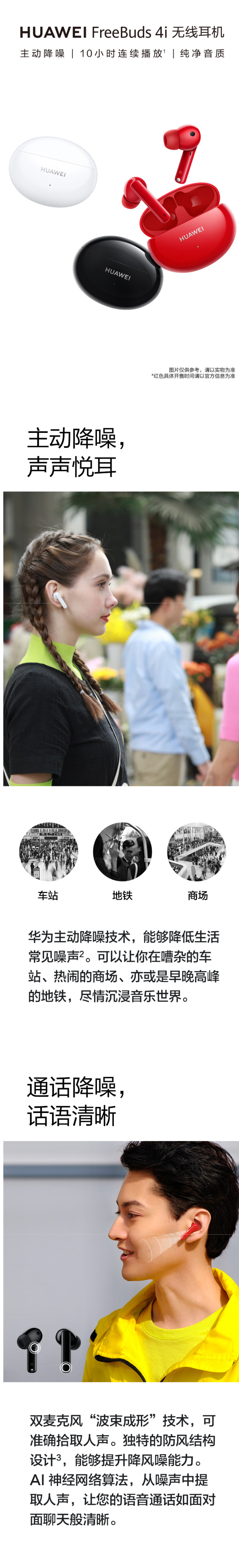 华为HUAWEI FreeBuds 4i主动降噪 入耳式真无线蓝牙耳机/通话降噪/长续航/小巧舒适 Android&ios通用 碳晶黑