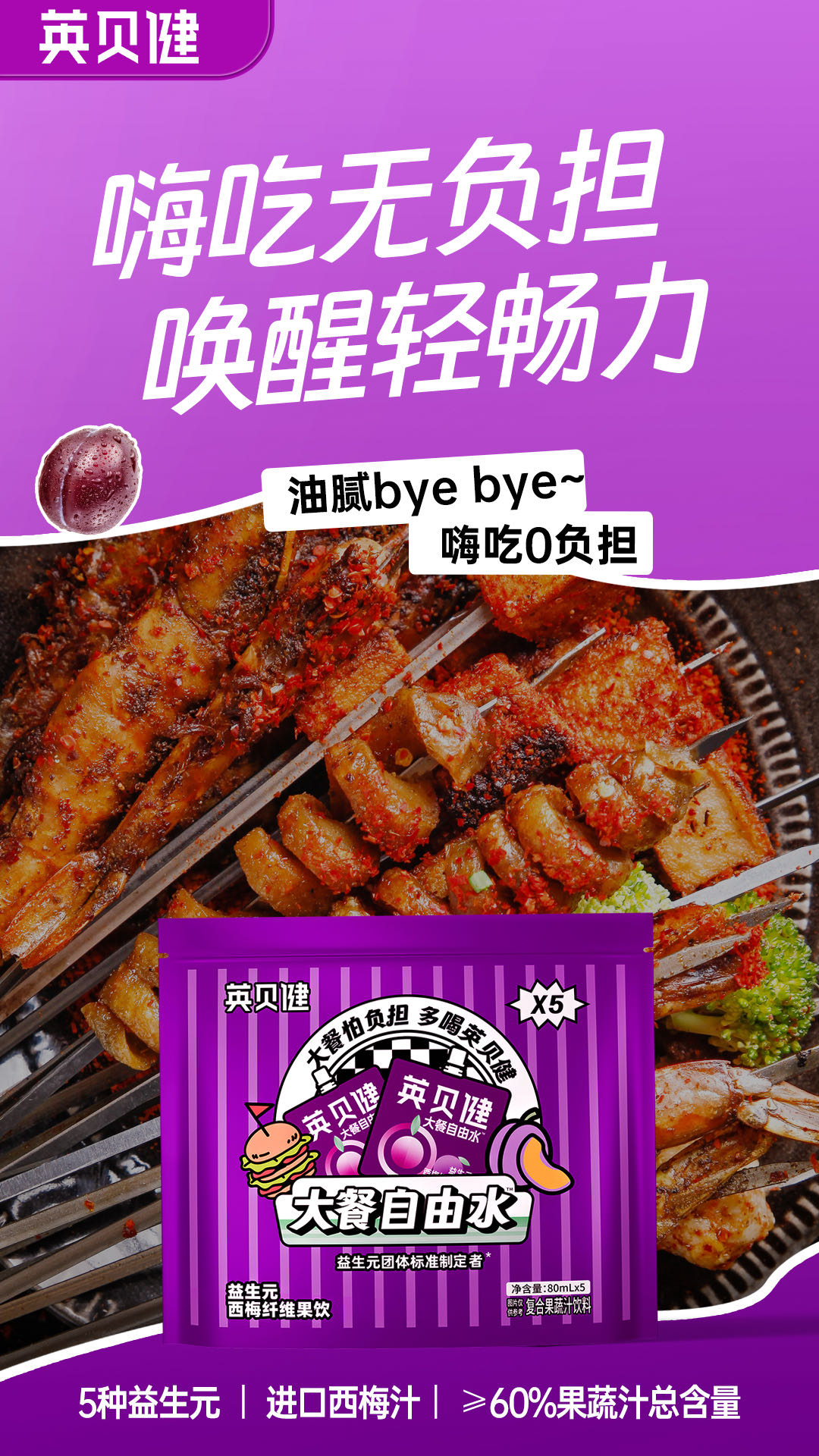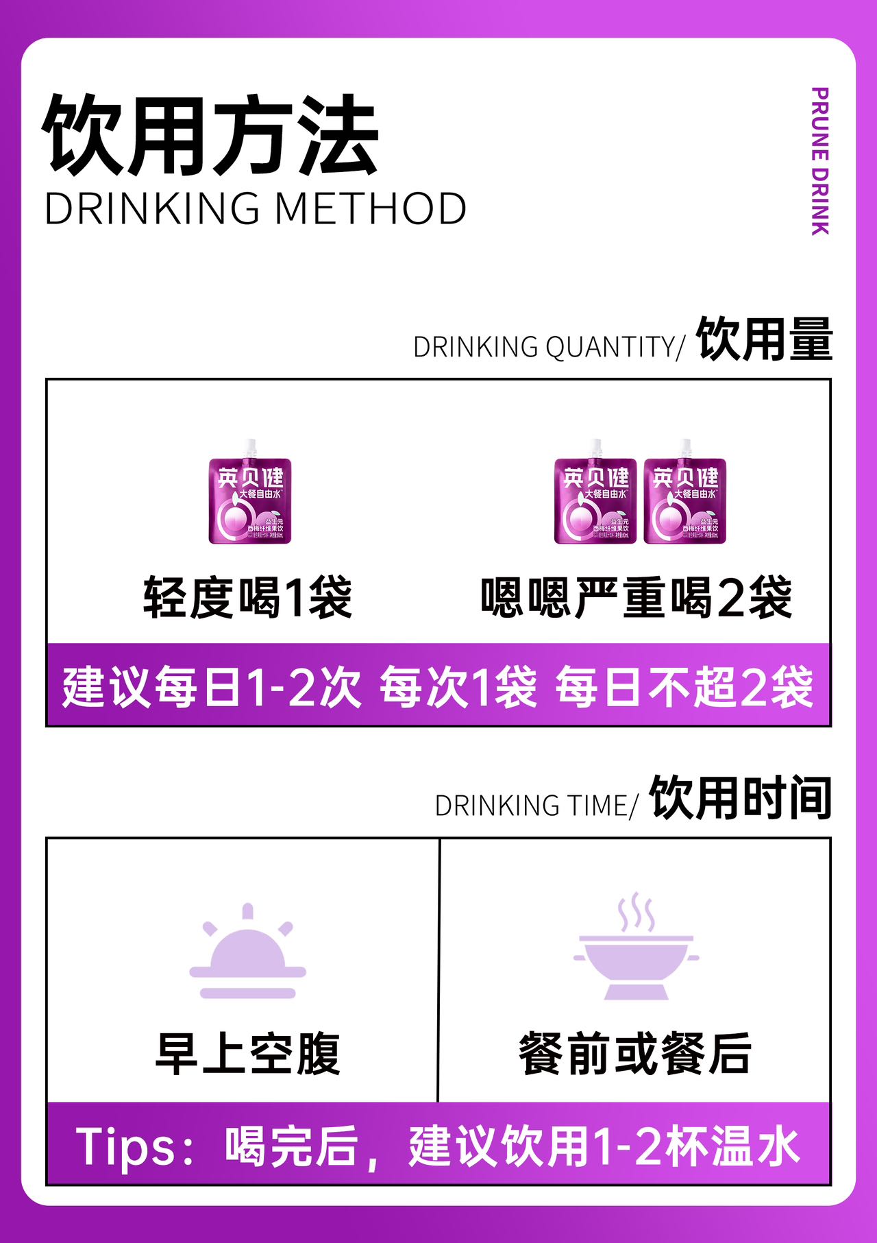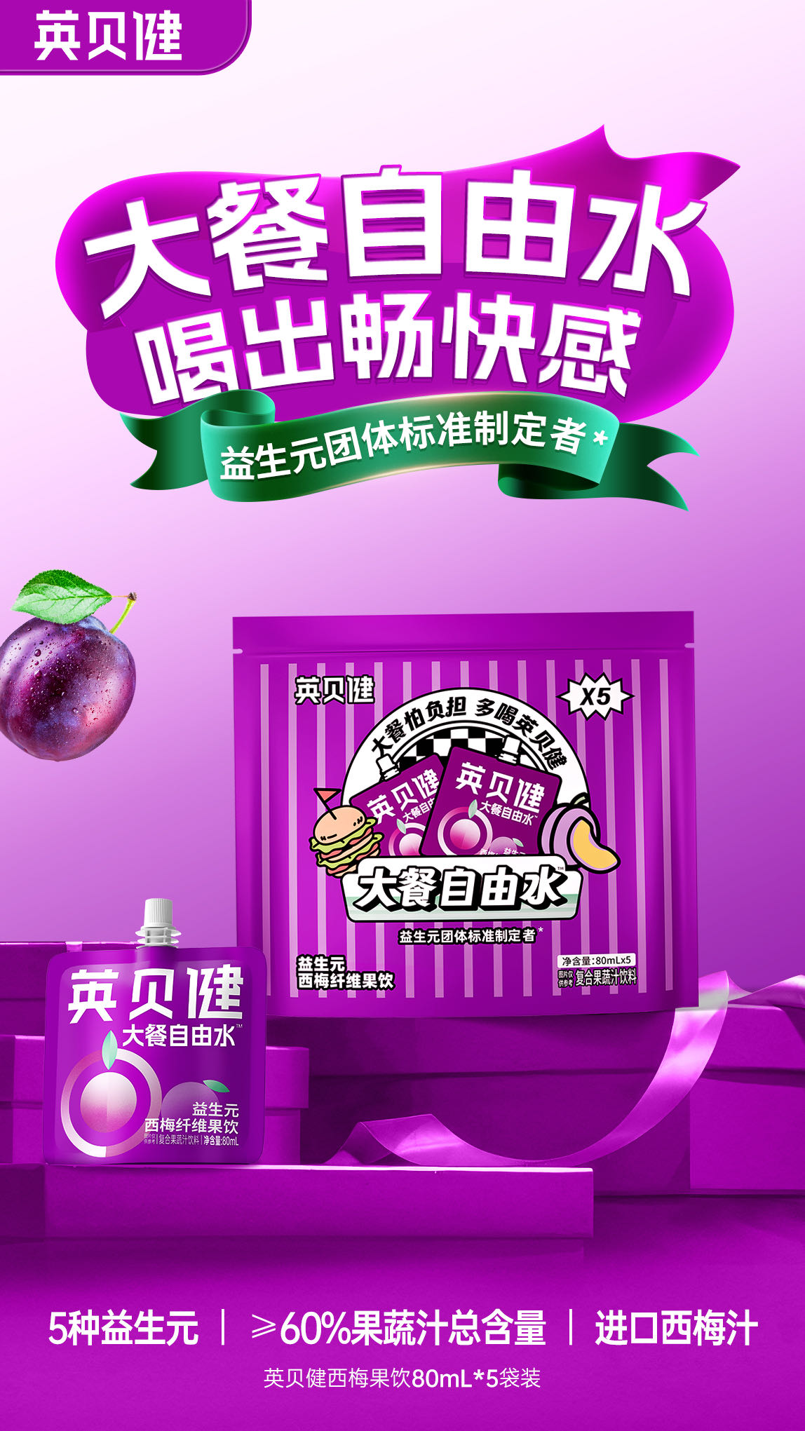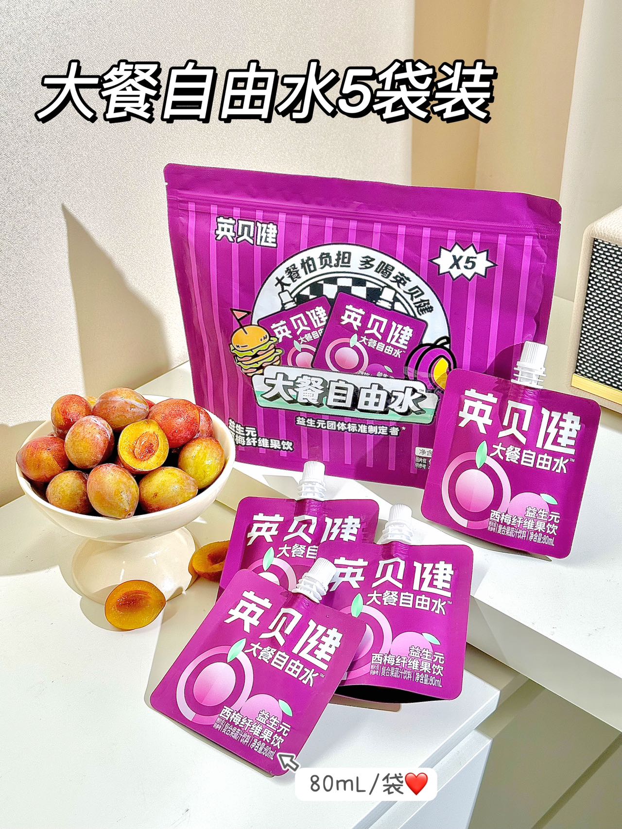 🥘嗨吃大餐怕负担?【英贝健大餐自由水】蕞强西梅汁大礼包来啦‼️❷大礼包仅需59.8💰到手🉐10袋🐮 「大餐自由水西梅饮5袋装」大礼包!