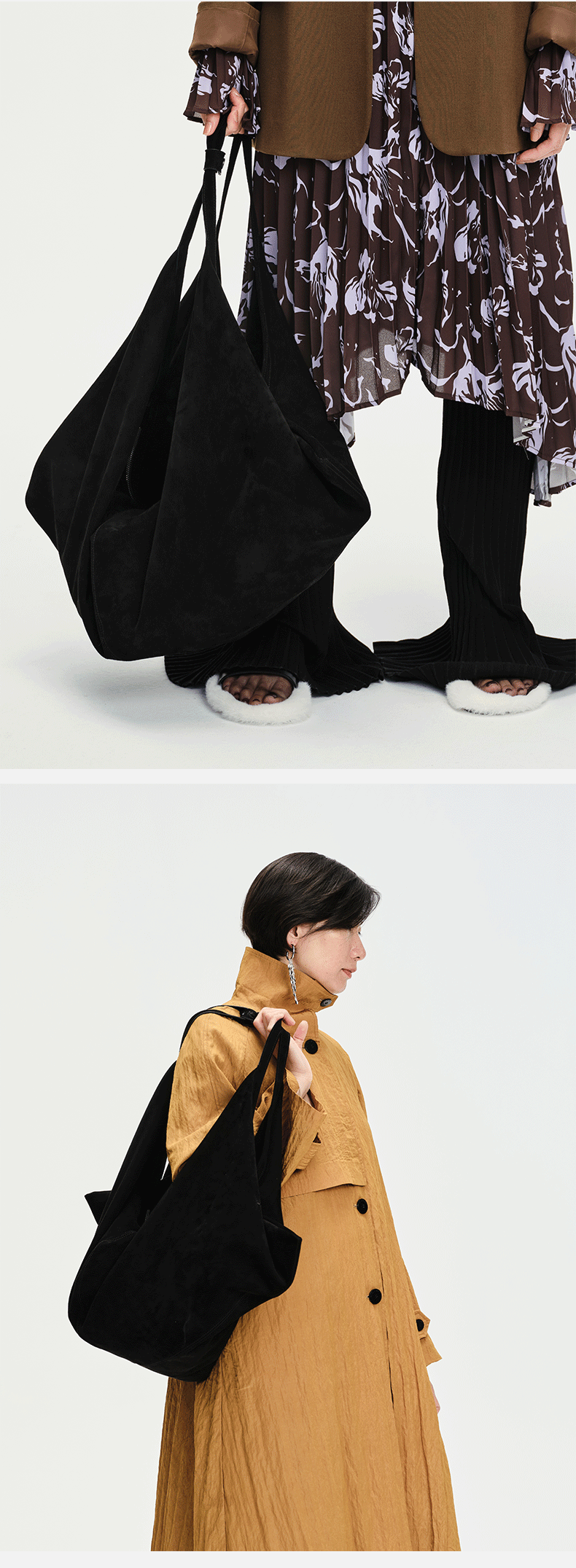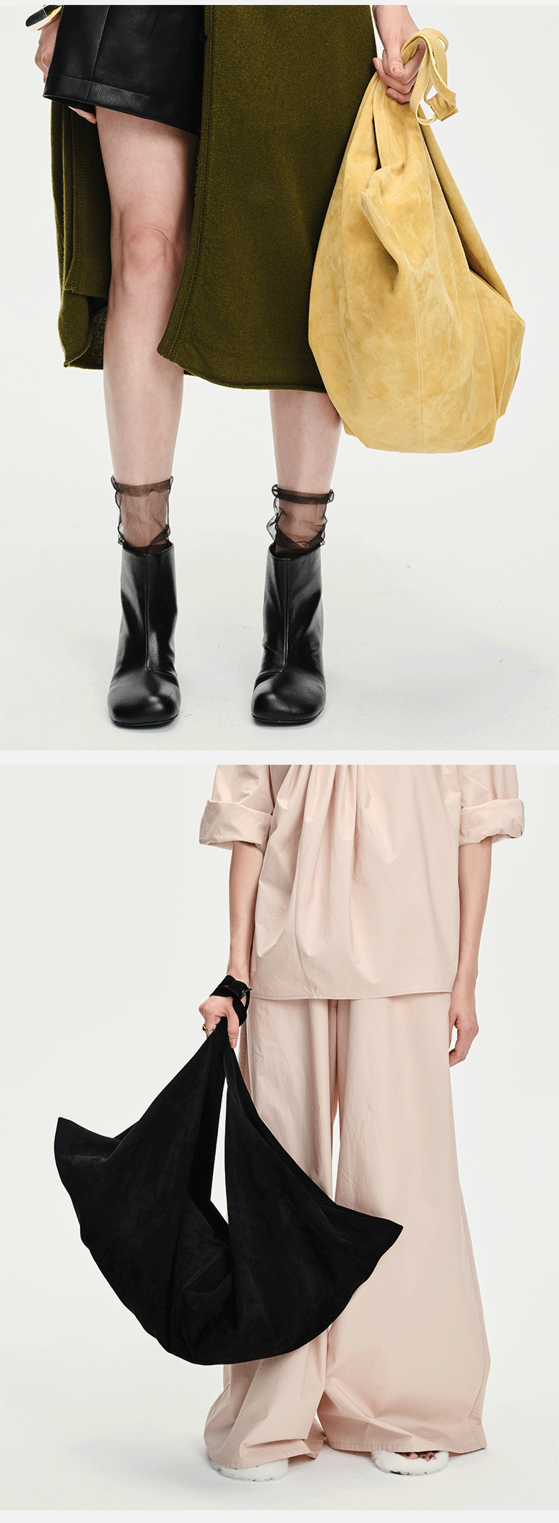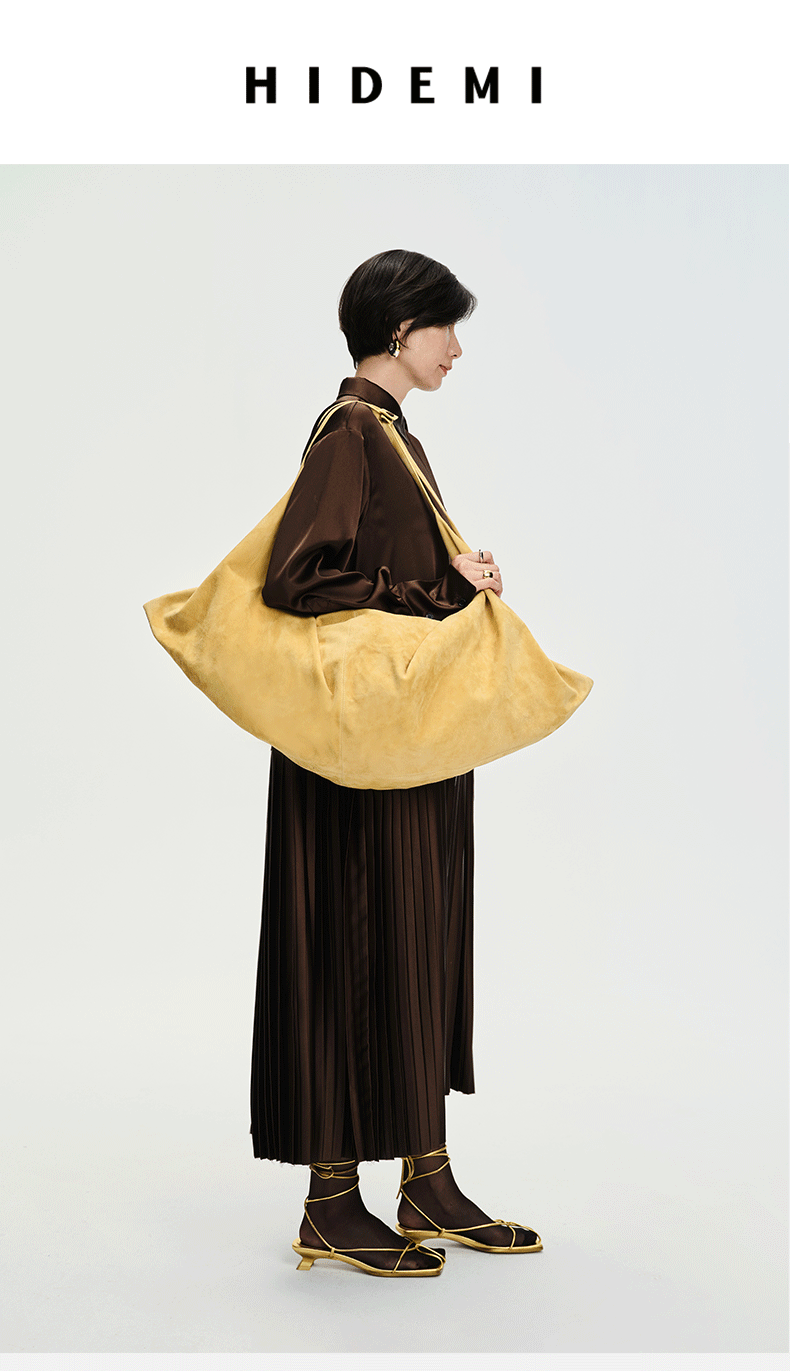 HIDEMI 多用设计感麂皮行囊包大号 黑色/姜黄色/军绿色/咖色