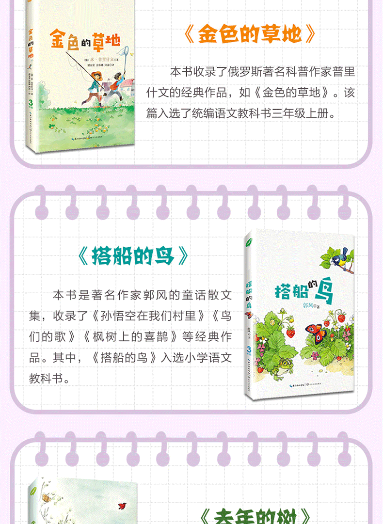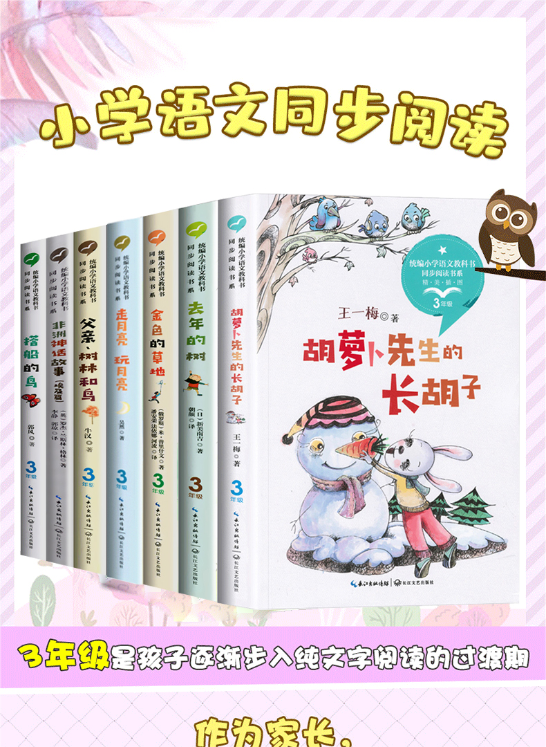 三年级课外书必读全套7册 胡萝卜先生的长胡子 金色的草地 去年的树 搭船的鸟 小学生课外阅读书籍老师推荐经典读物上册学期人教版