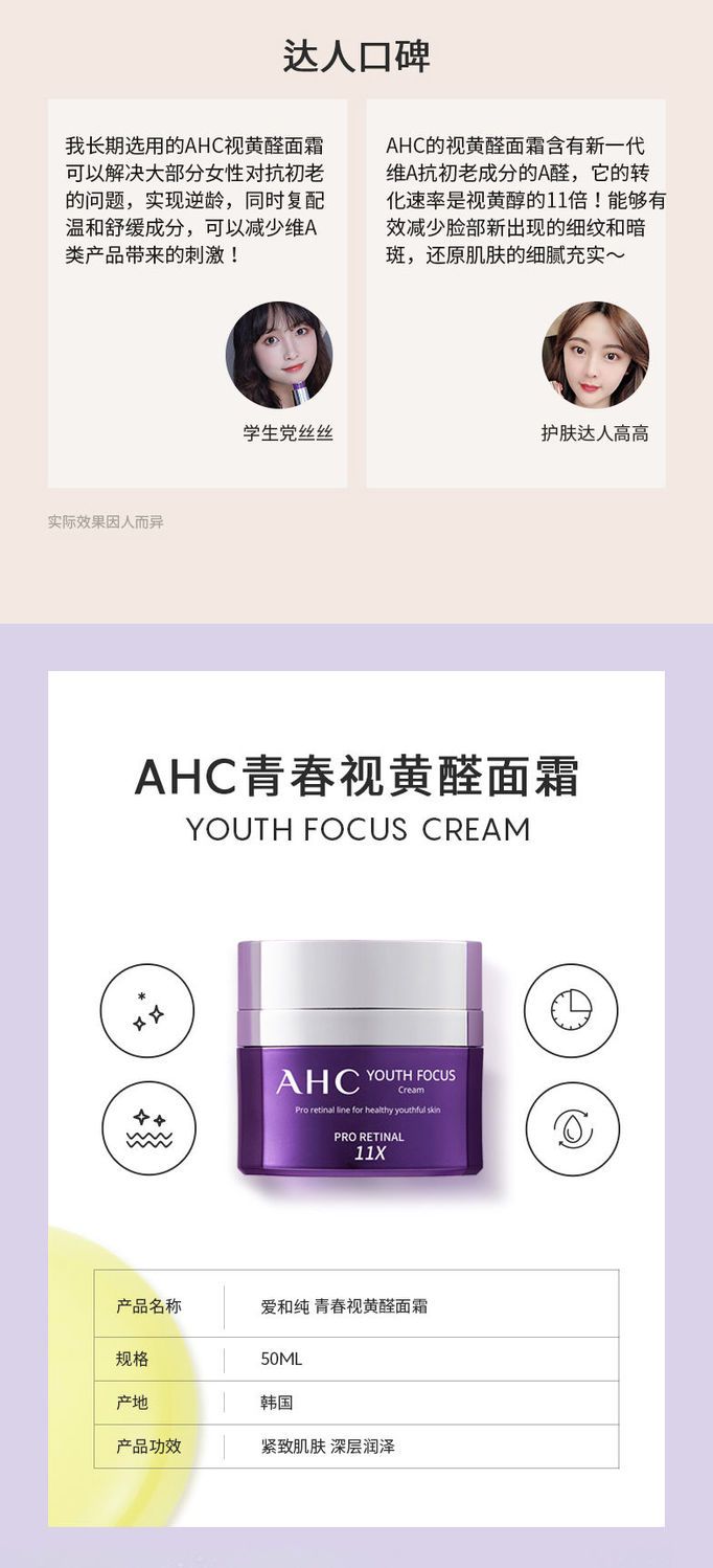 【预售 急单慎拍】AHC视黄醛紫滤镜面霜抗初老淡纹保湿紧致弹润抗皱50ml