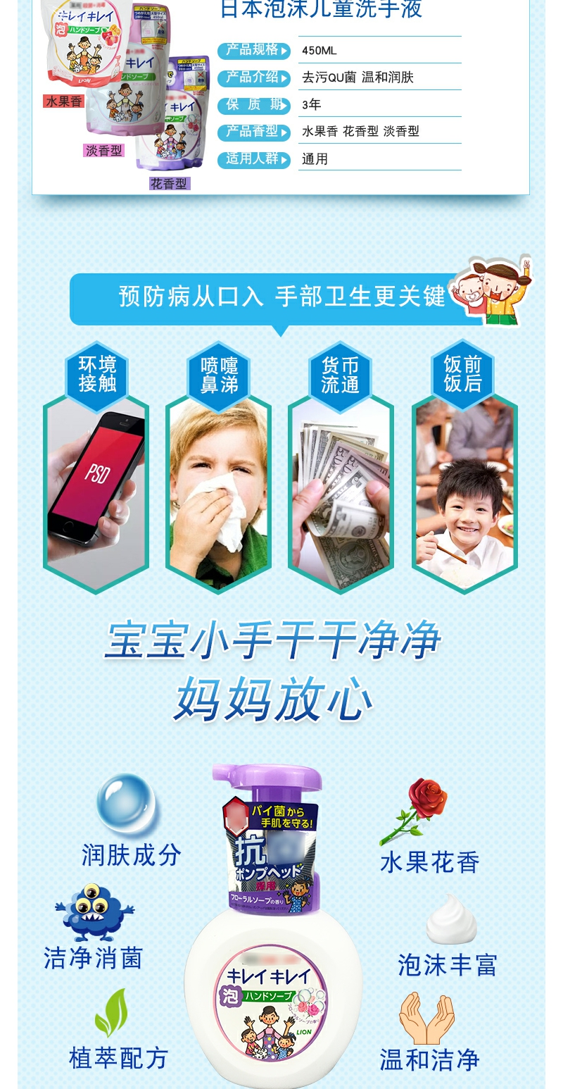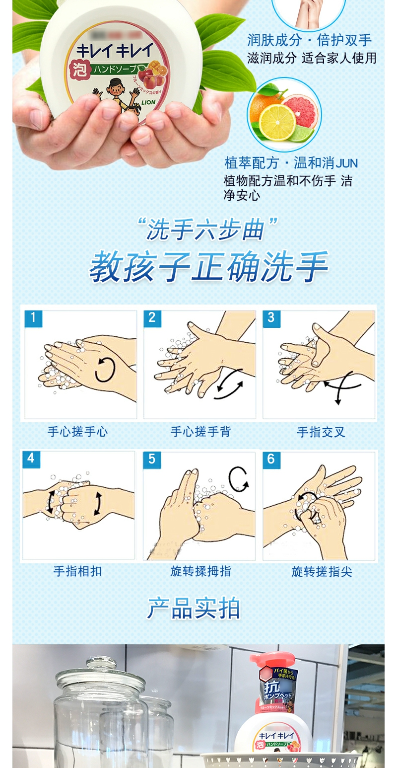 【YZ】日本进口狮王洗铁我液泡泡KIREI全植物泡沫Sa云朵儿童宝宝
