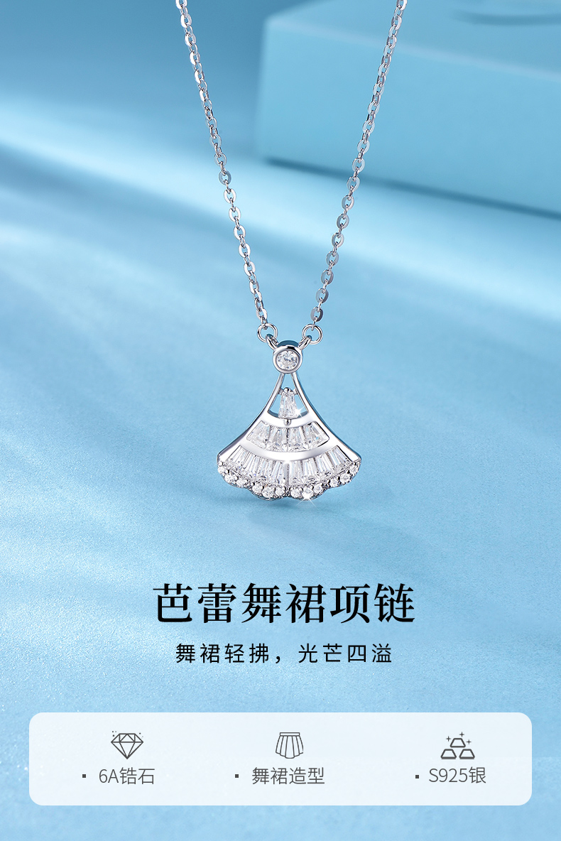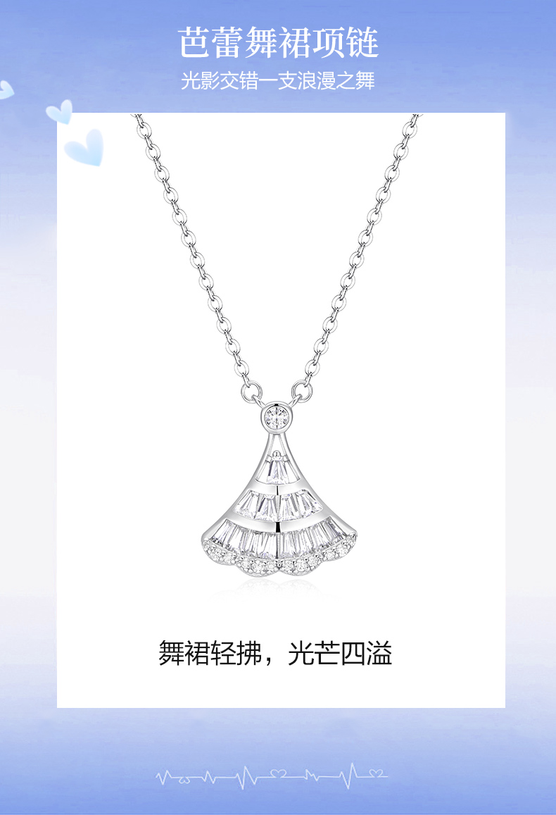 卡蒂罗/KADER 芭蕾舞裙项链 一贝子满钻镶嵌璀璨闪耀甜美小众设计感拼接链 时尚简约可调节锁骨链礼盒款 925银