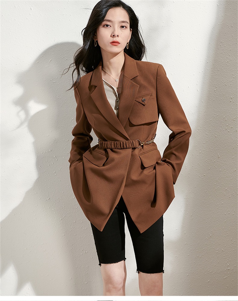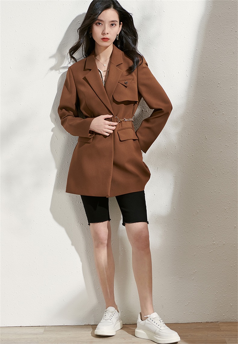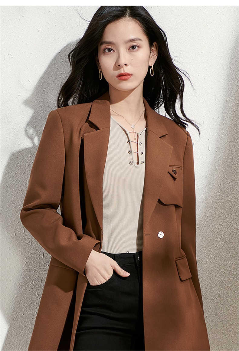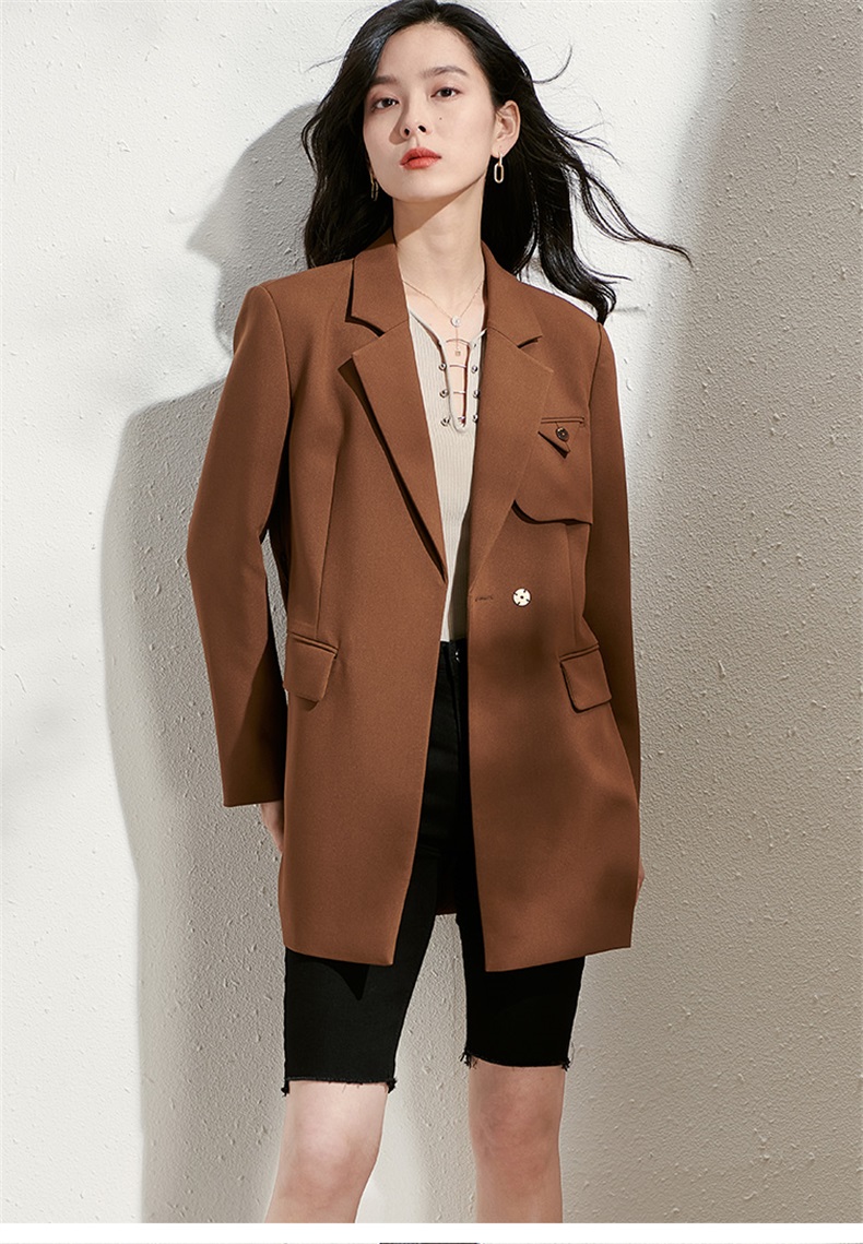 剩S 芳外新款通勤气质咖色女式西装拼接设计收腰直筒外套8T22AW0016