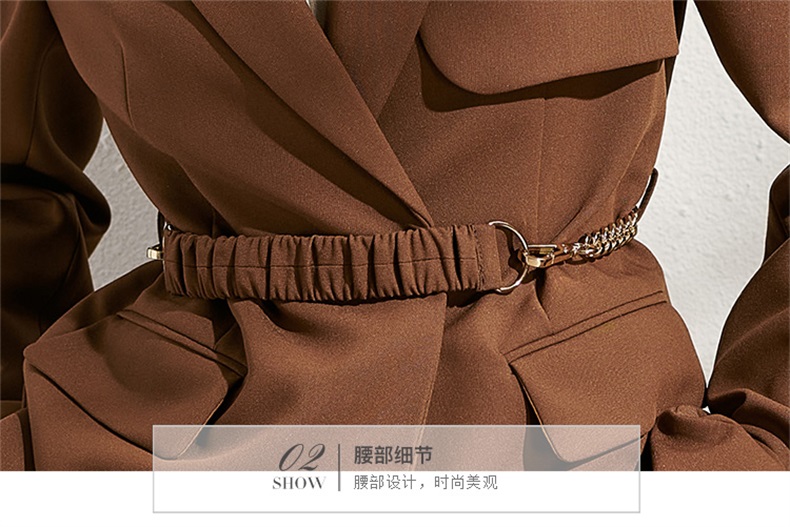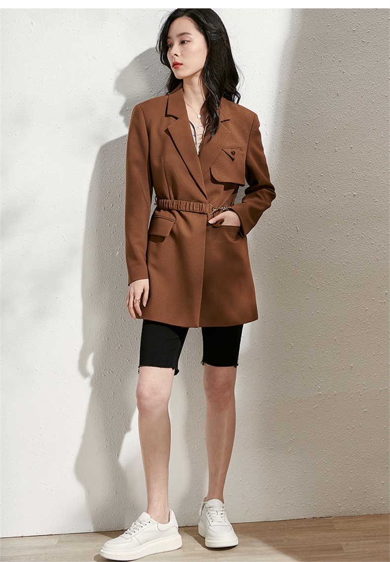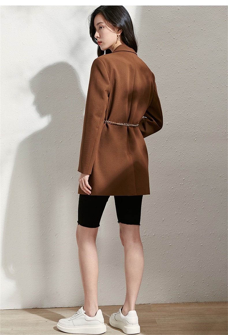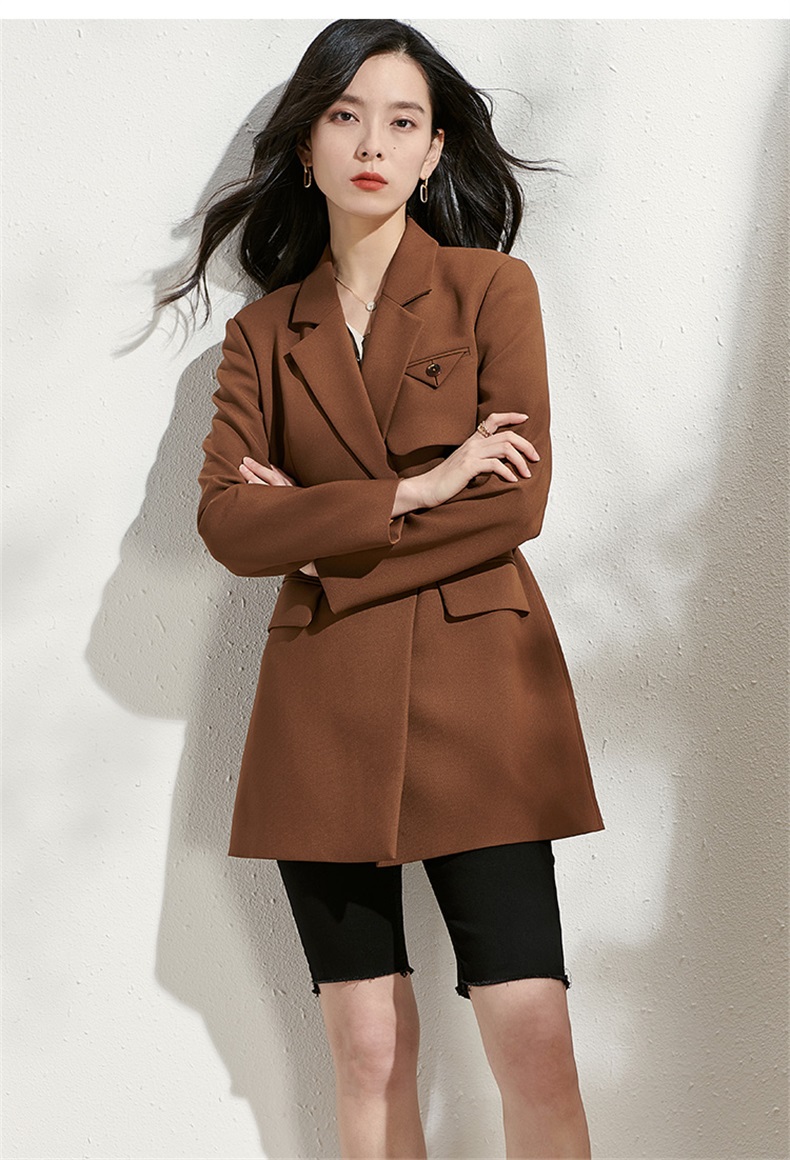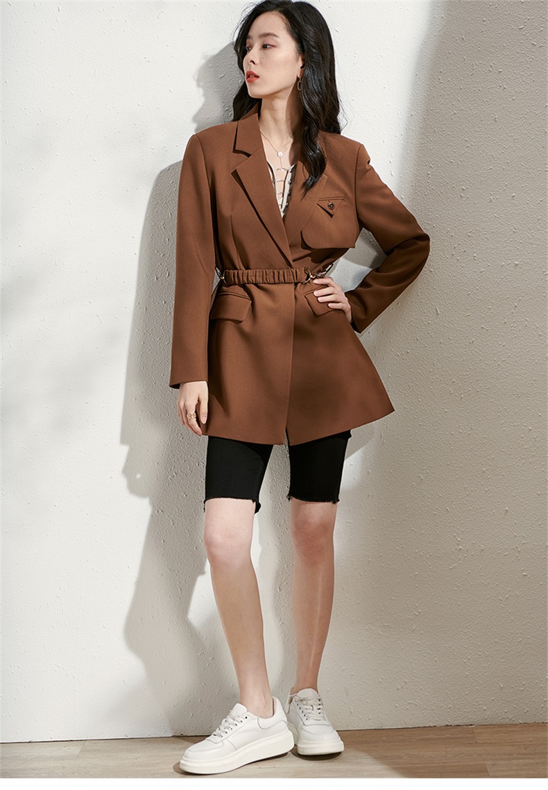 剩S 芳外新款通勤气质咖色女式西装拼接设计收腰直筒外套8T22AW0016