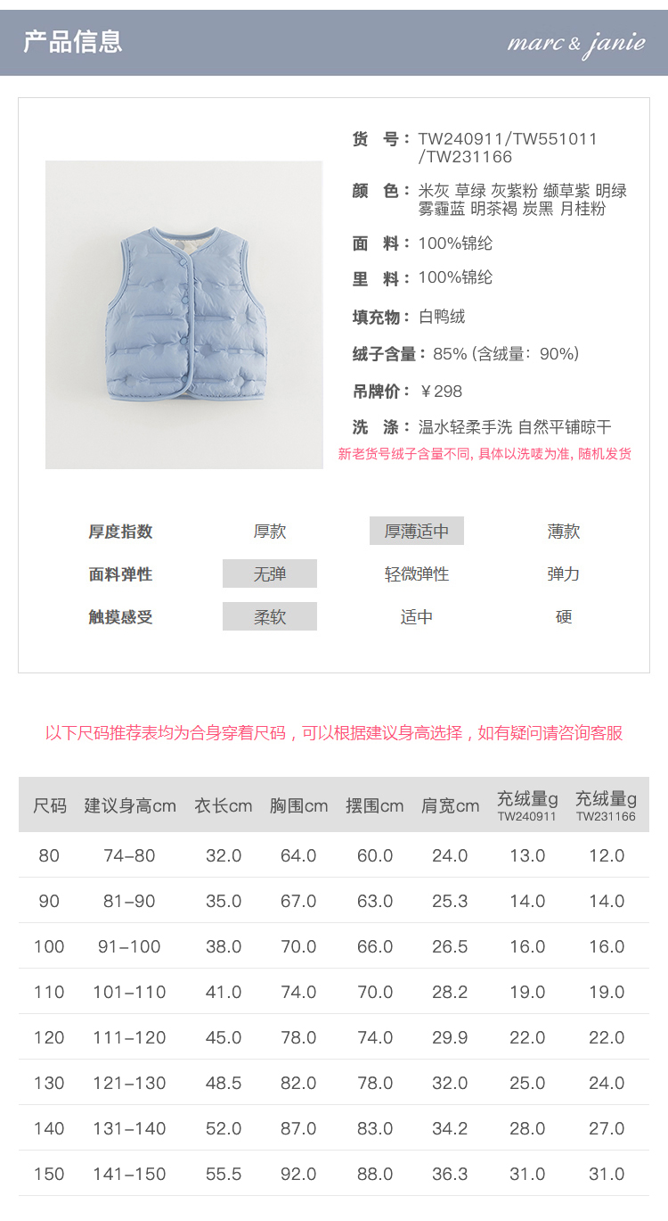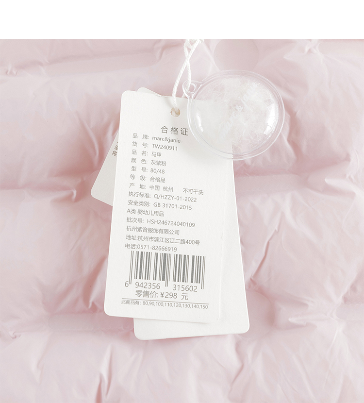 马克珍妮男女童羽绒马甲冬装儿童超轻保暖羽绒服背心秋童装240911/551011
