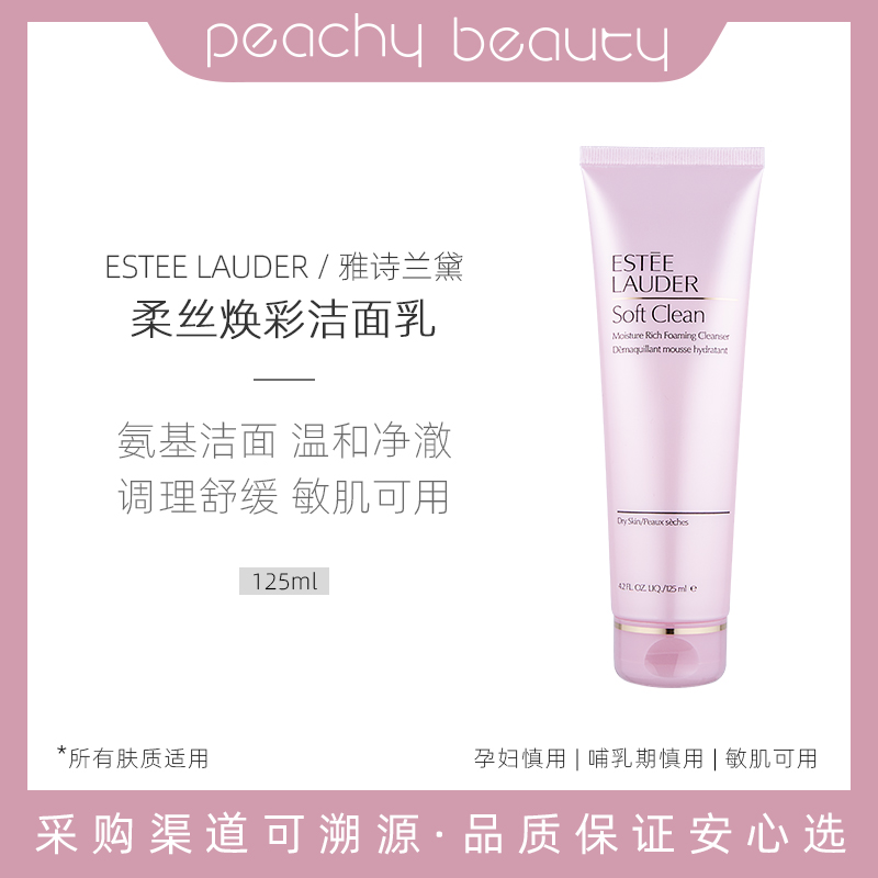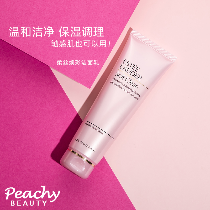 【中欧班列精选】Y BF美版雅诗兰黛柔丝焕彩洗面奶氨基酸温和保湿粉色洁面乳125ml 干皮