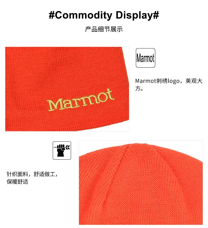 Marmot/土拨鼠户外休闲男女通款防寒保暖毛线帽情侣加长款针织帽