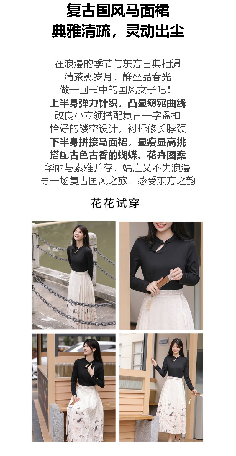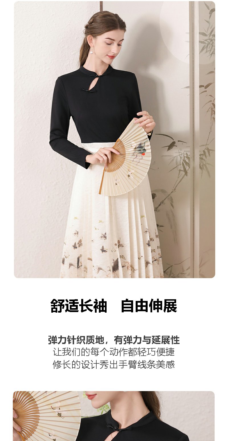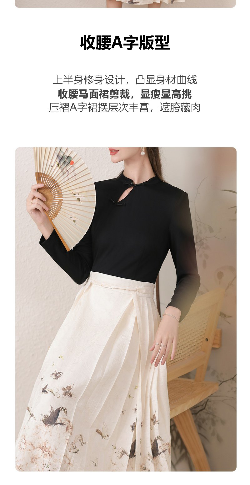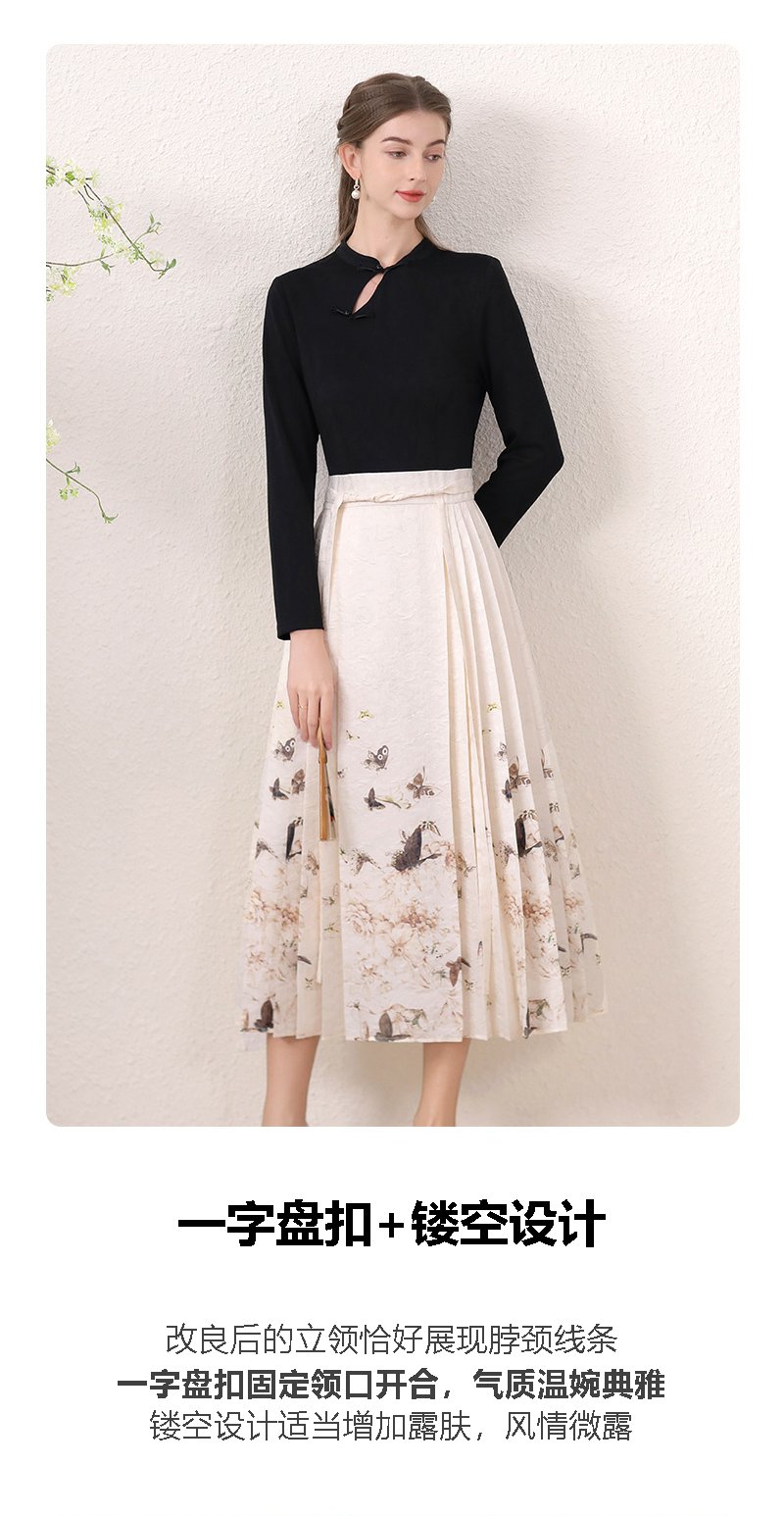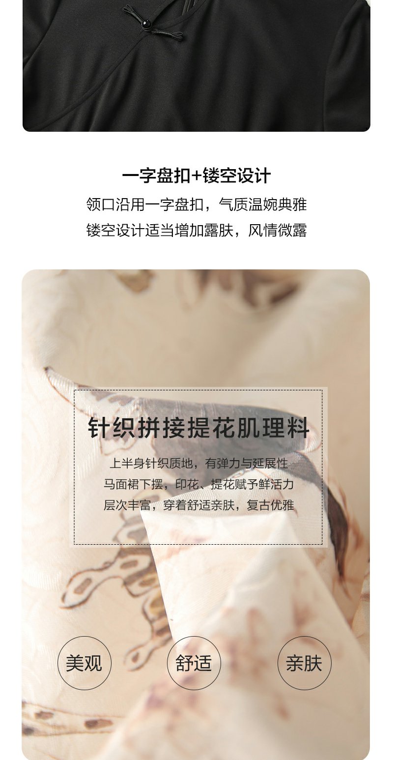 黑色新中式拼接针织连衣裙女春秋2026春季新款国风马面裙