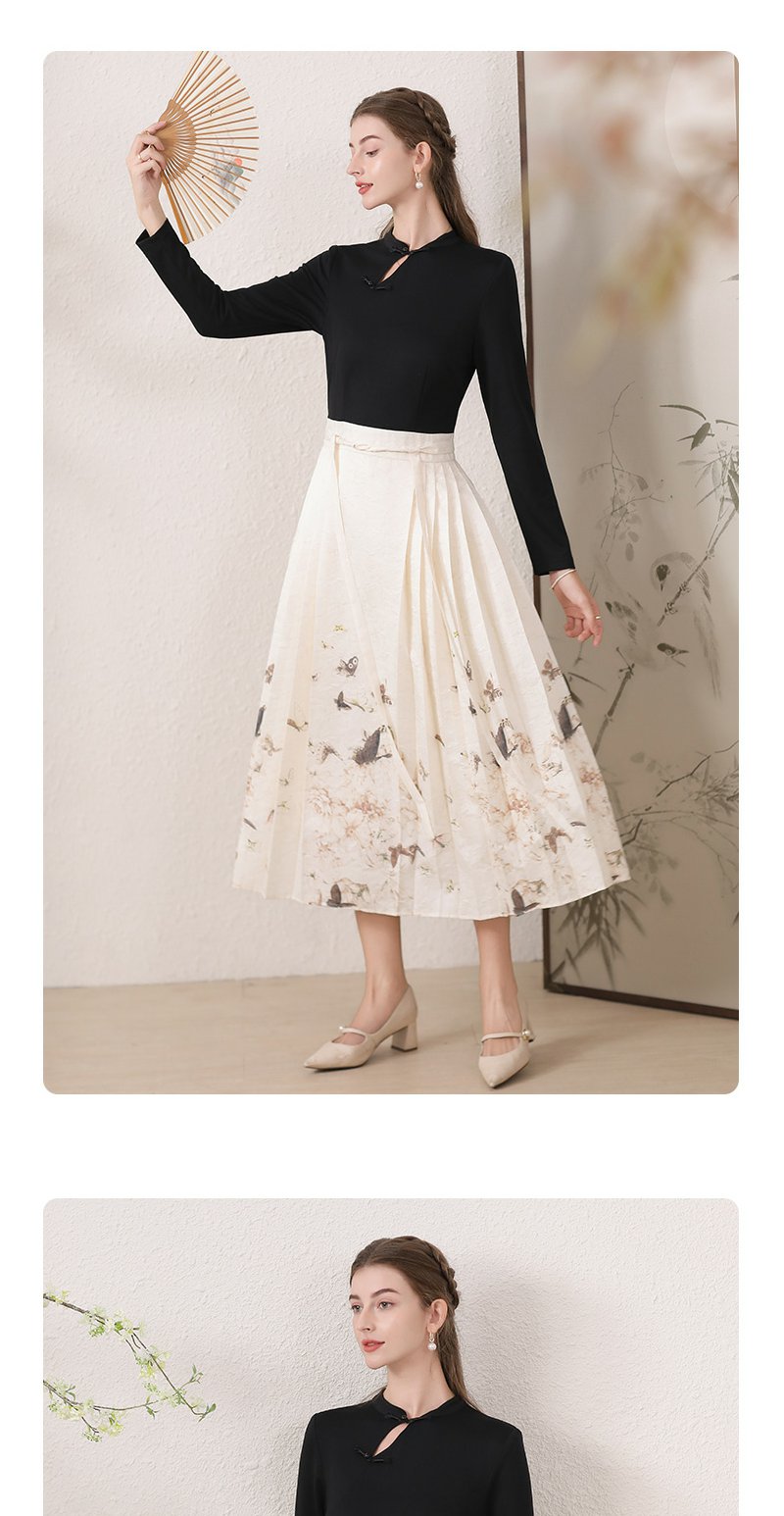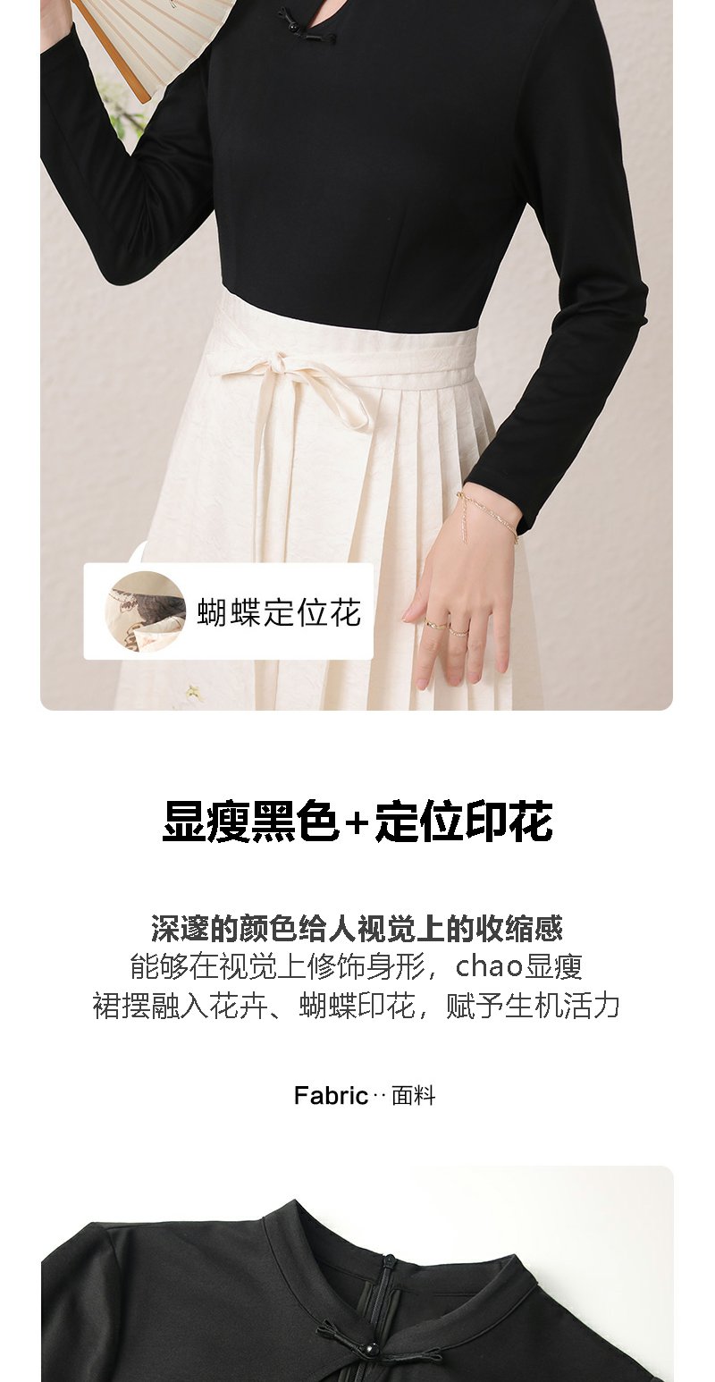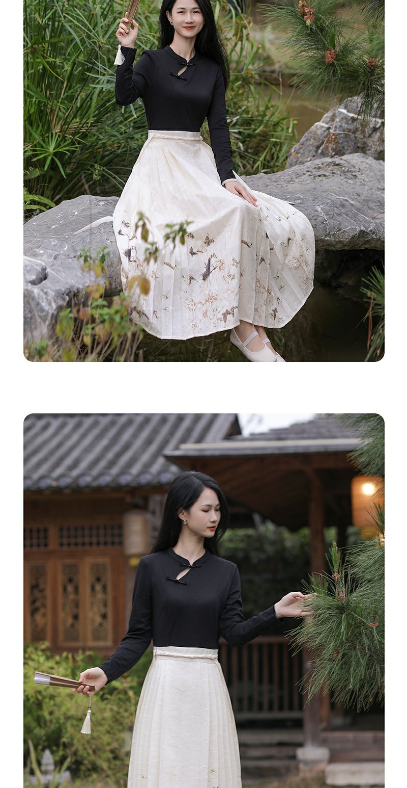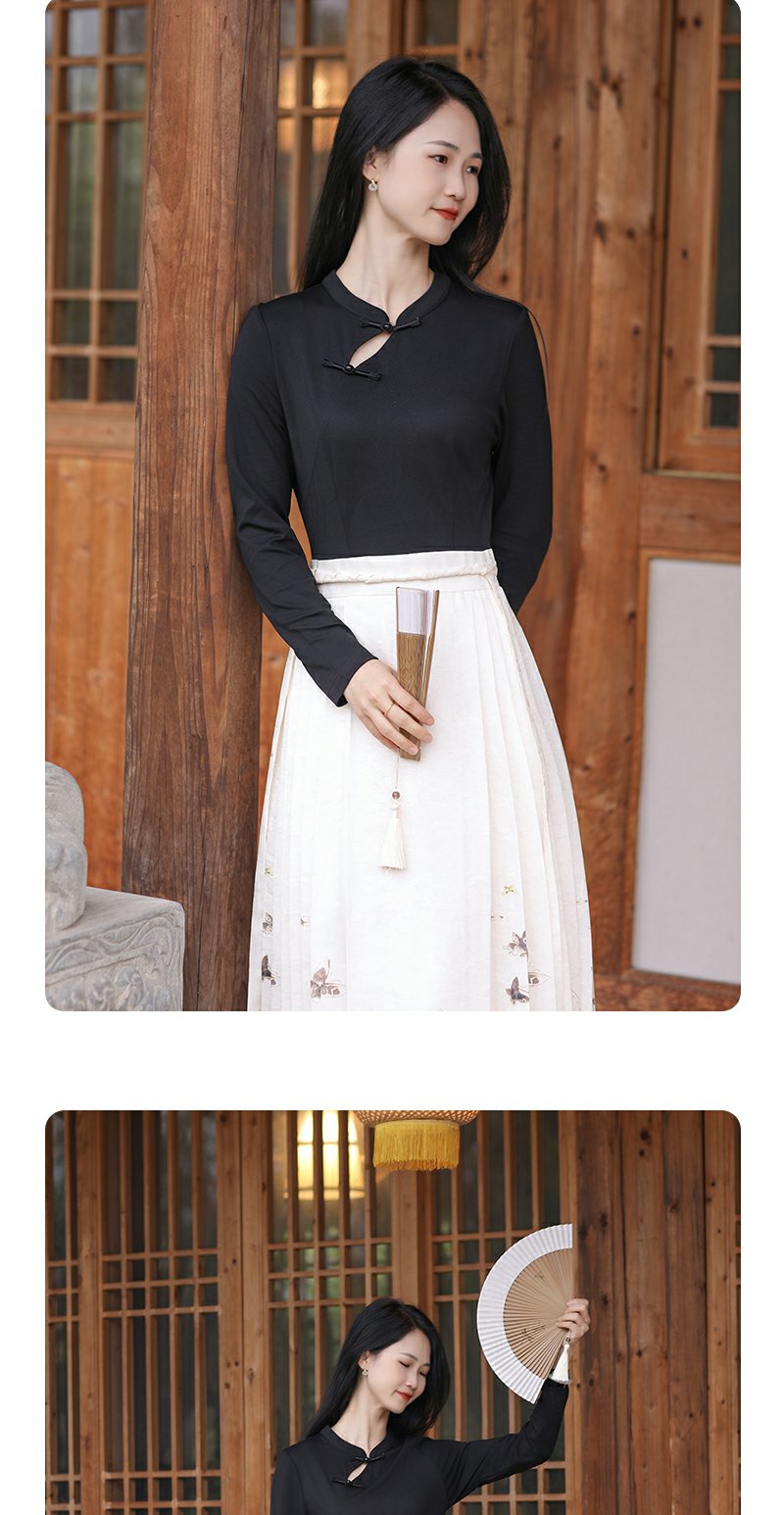 黑色新中式拼接针织连衣裙女春秋2026春季新款国风马面裙