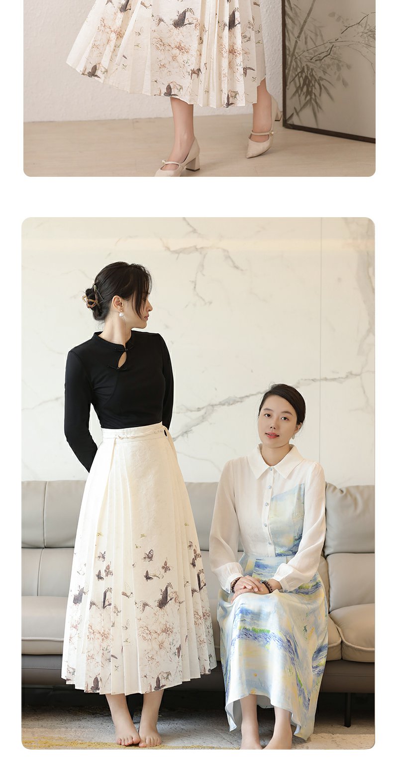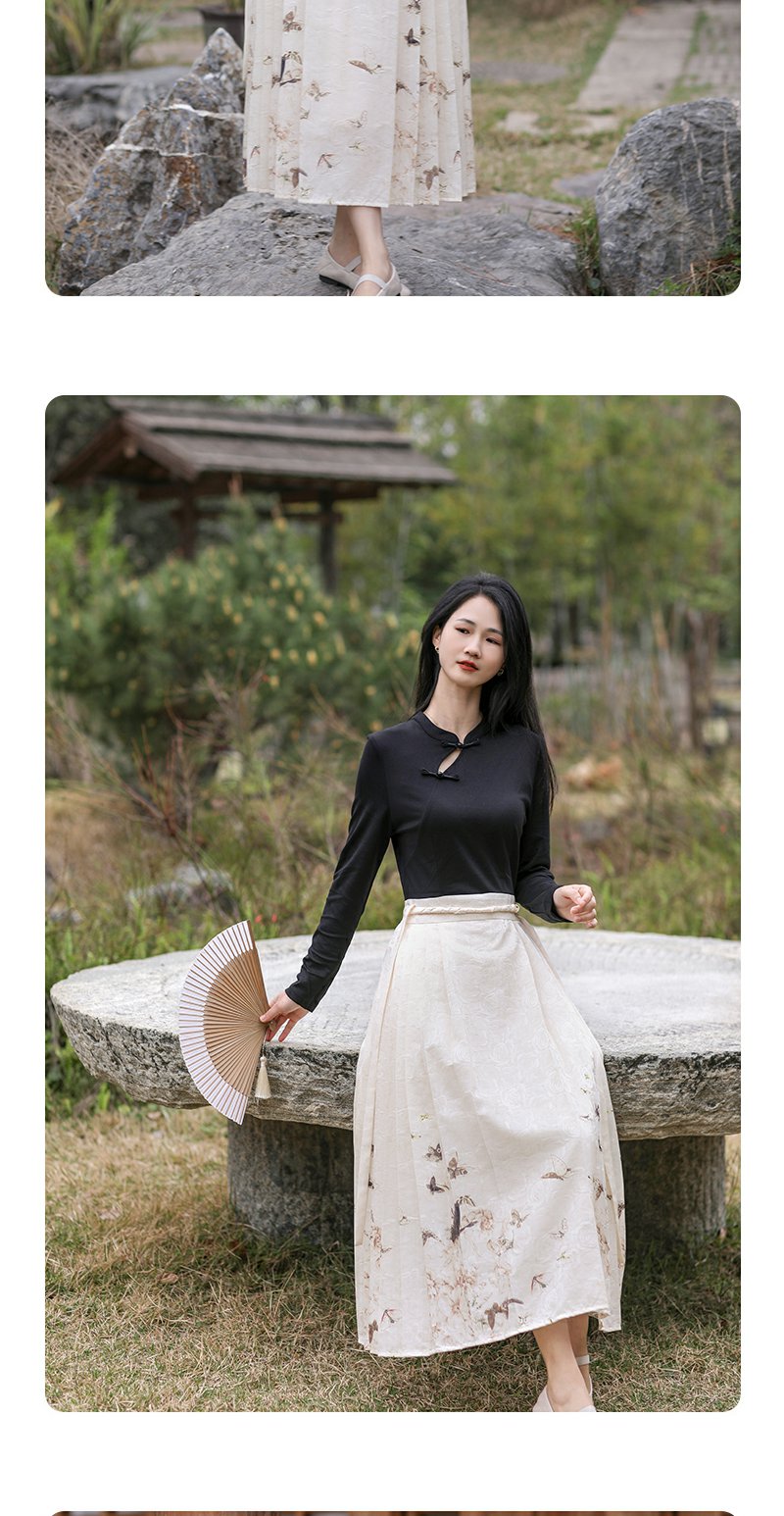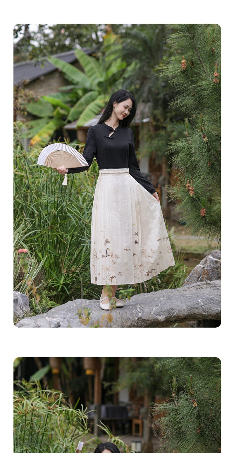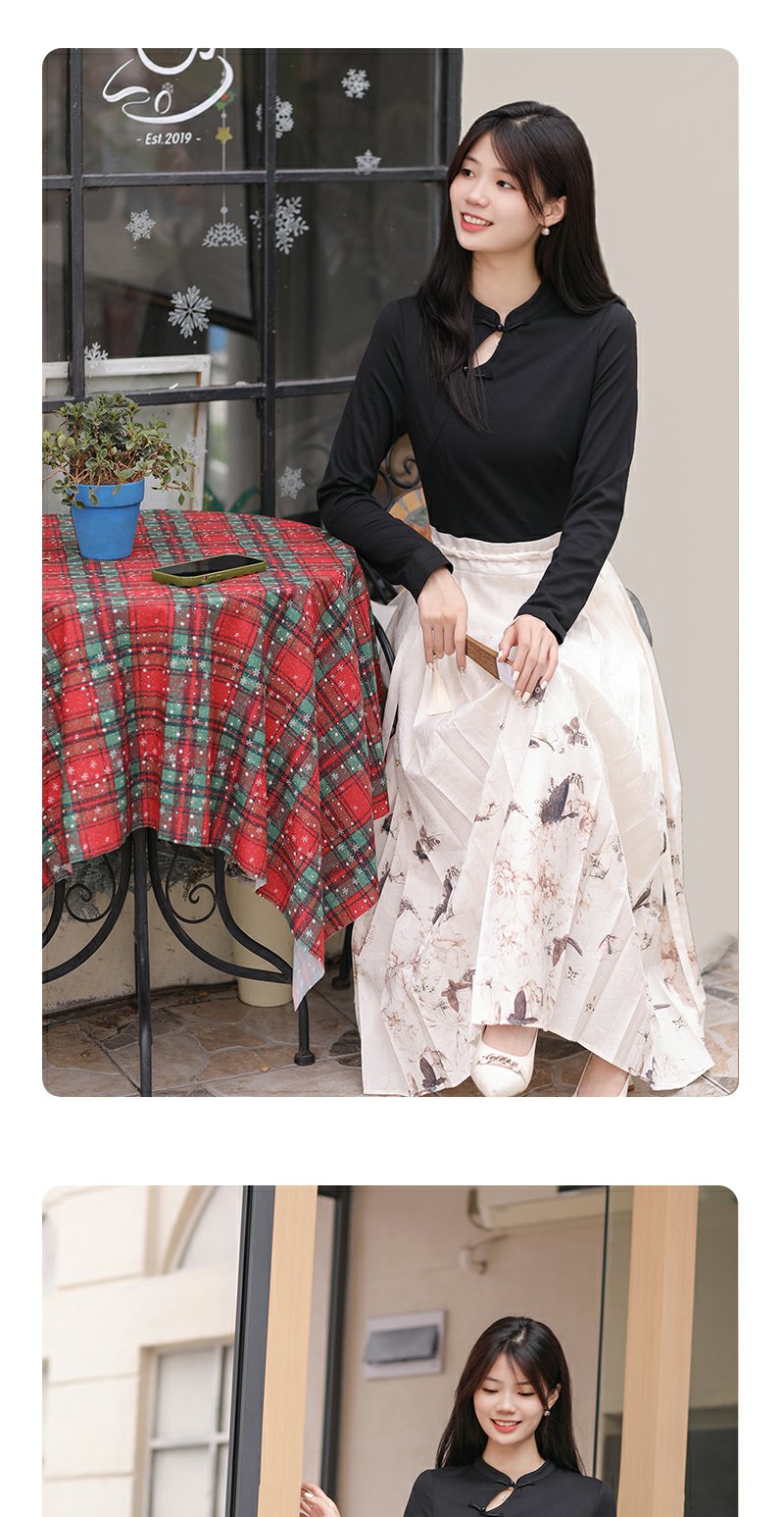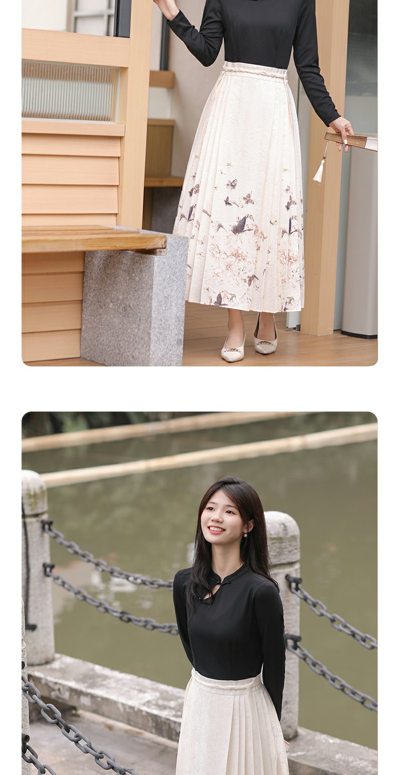 黑色新中式拼接针织连衣裙女春秋2026春季新款国风马面裙