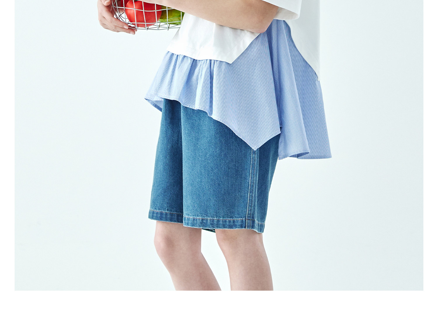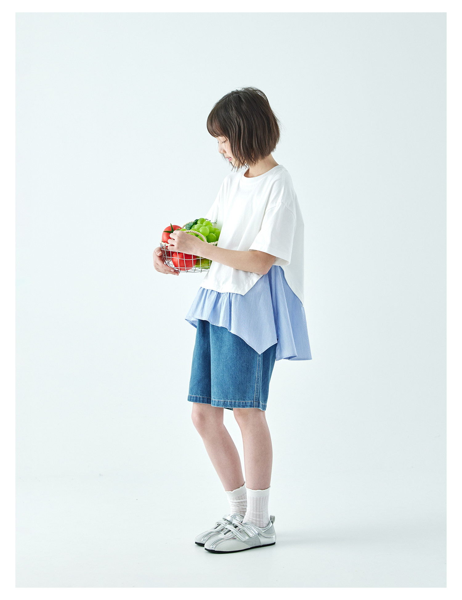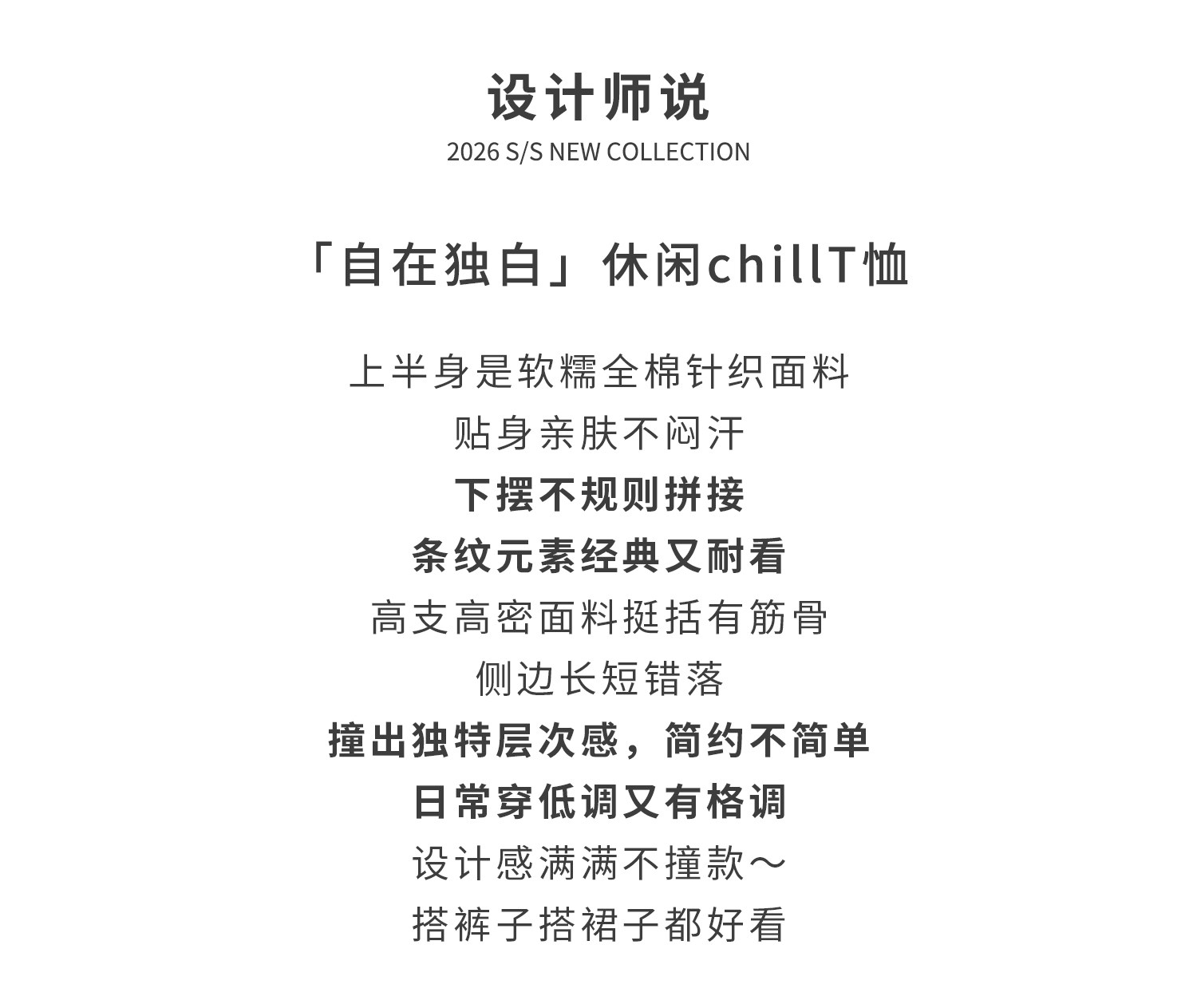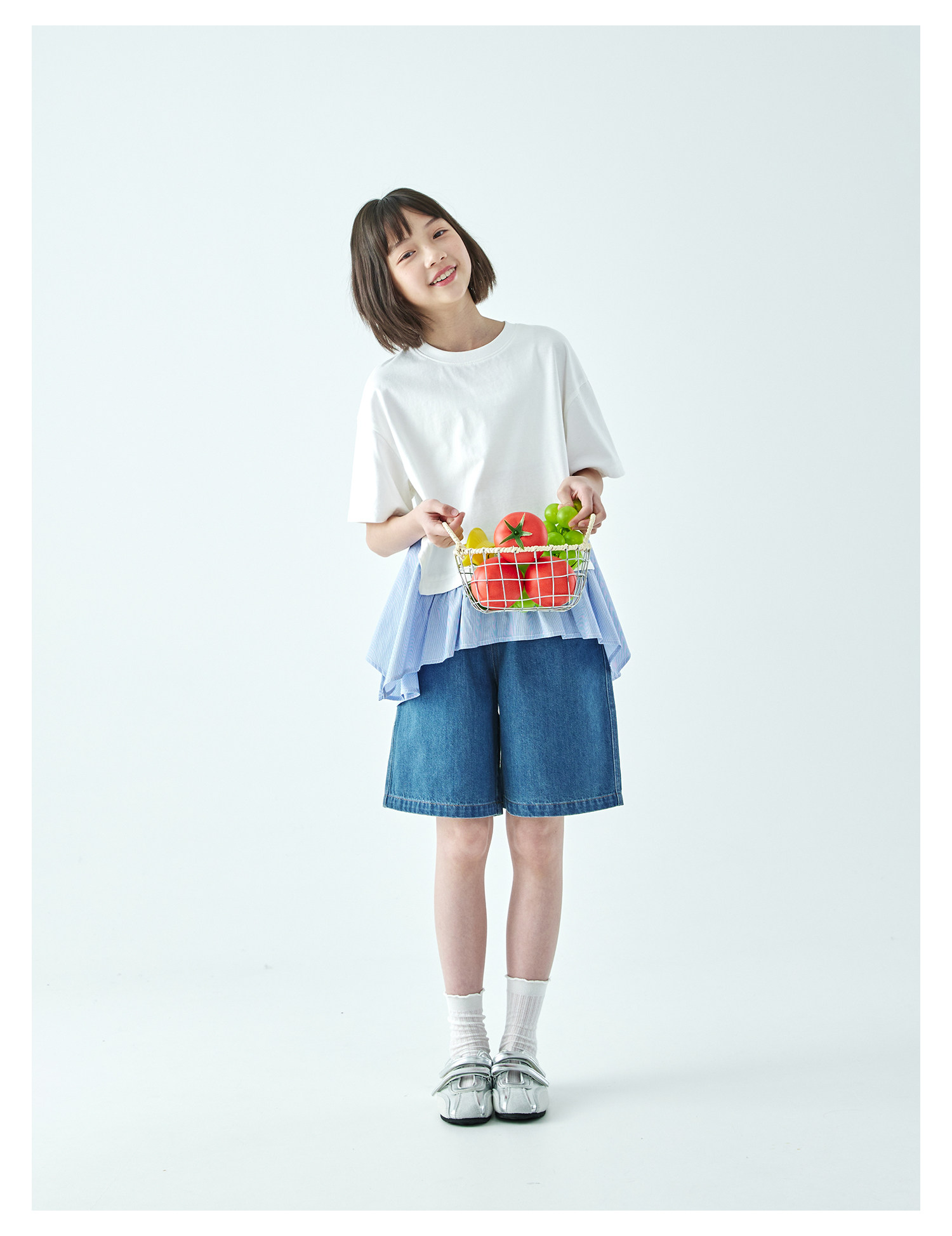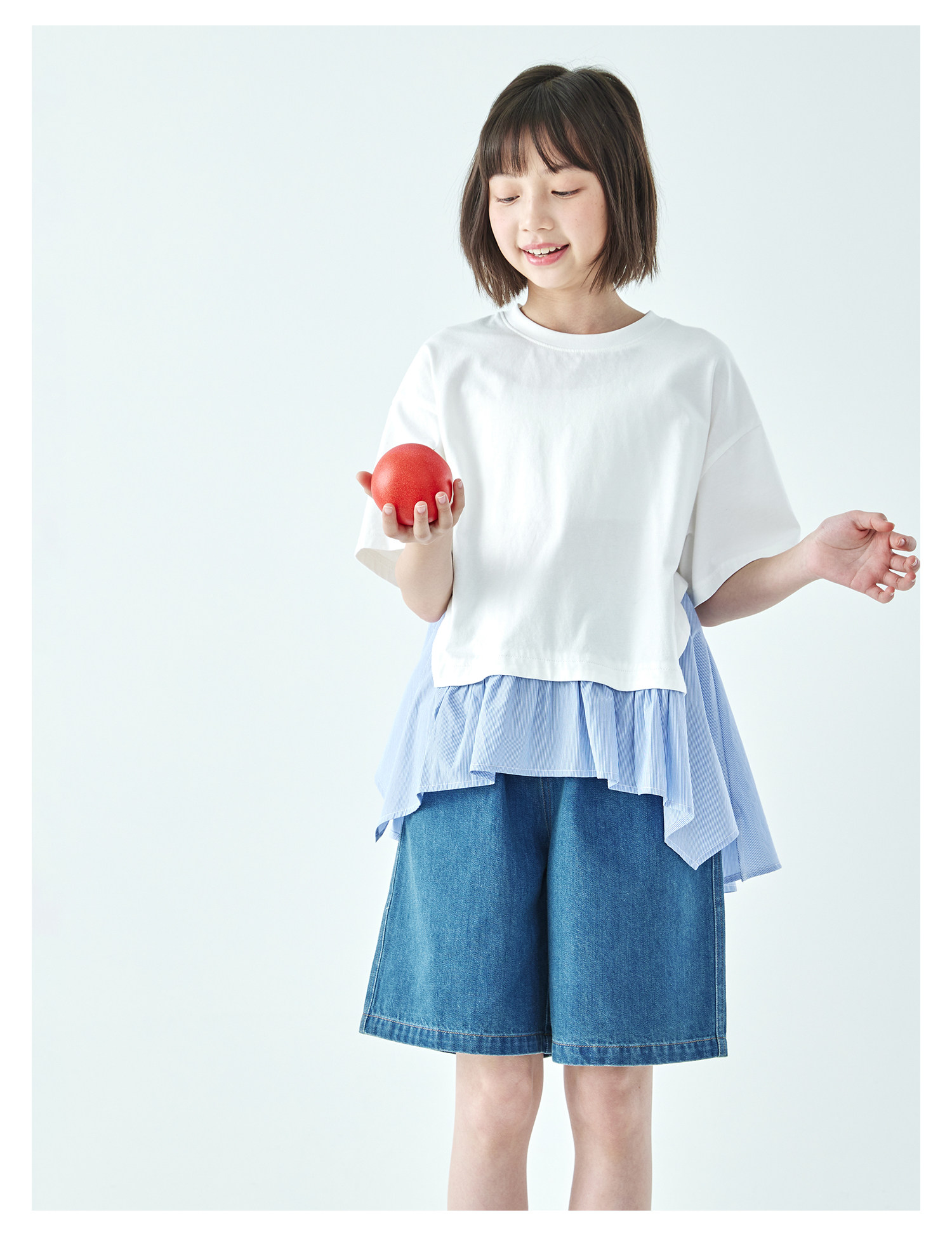 棵初26年夏季新款中大女童不规则拼接休闲短袖纯棉条纹假两件T恤