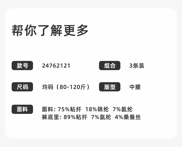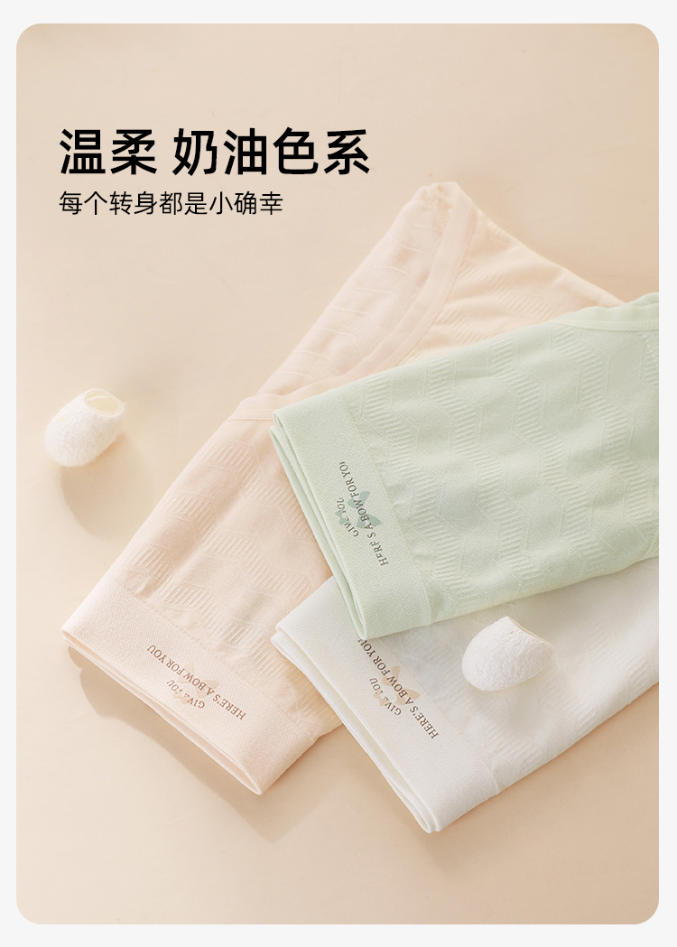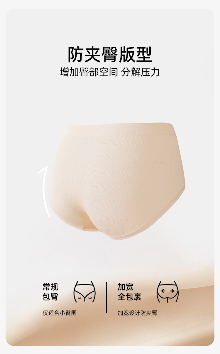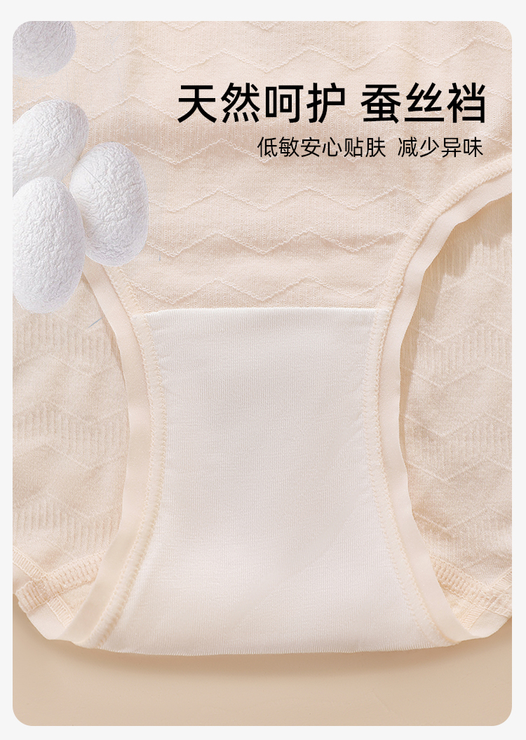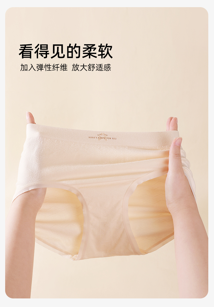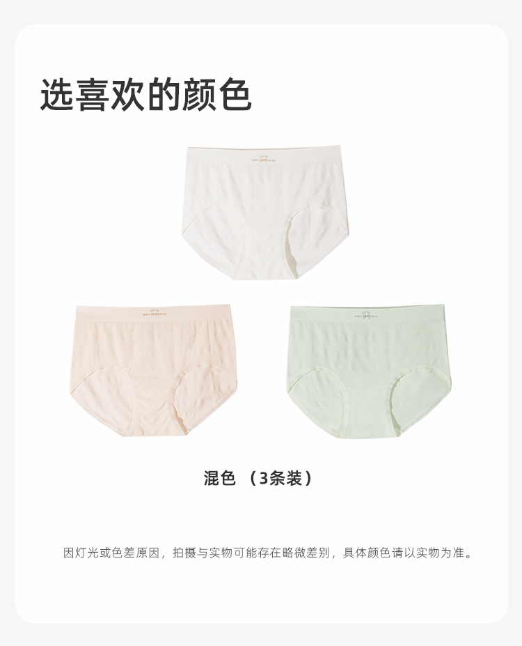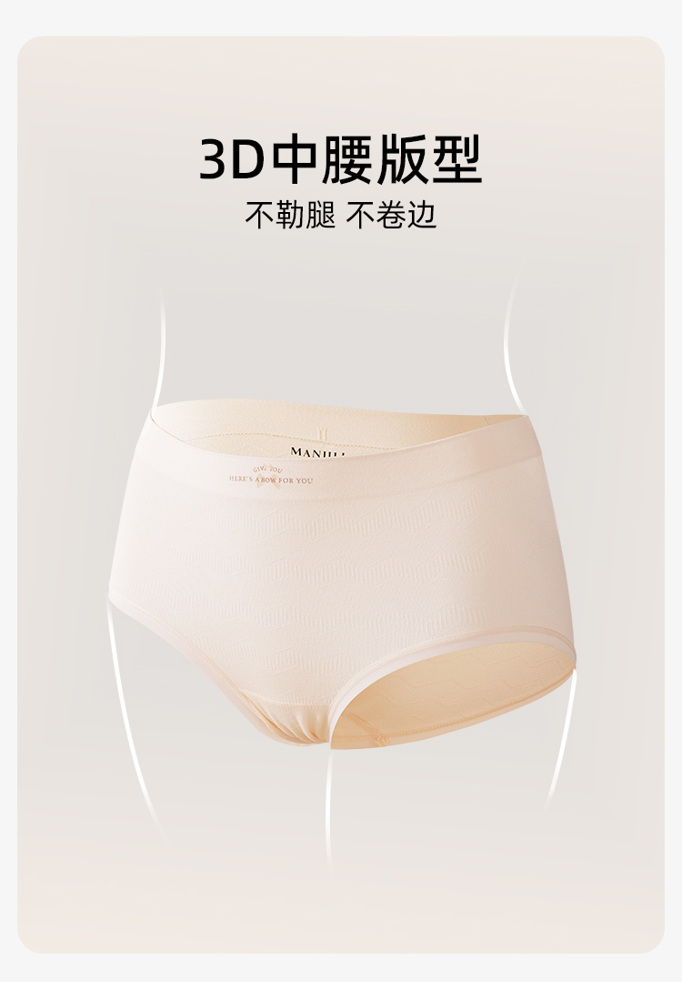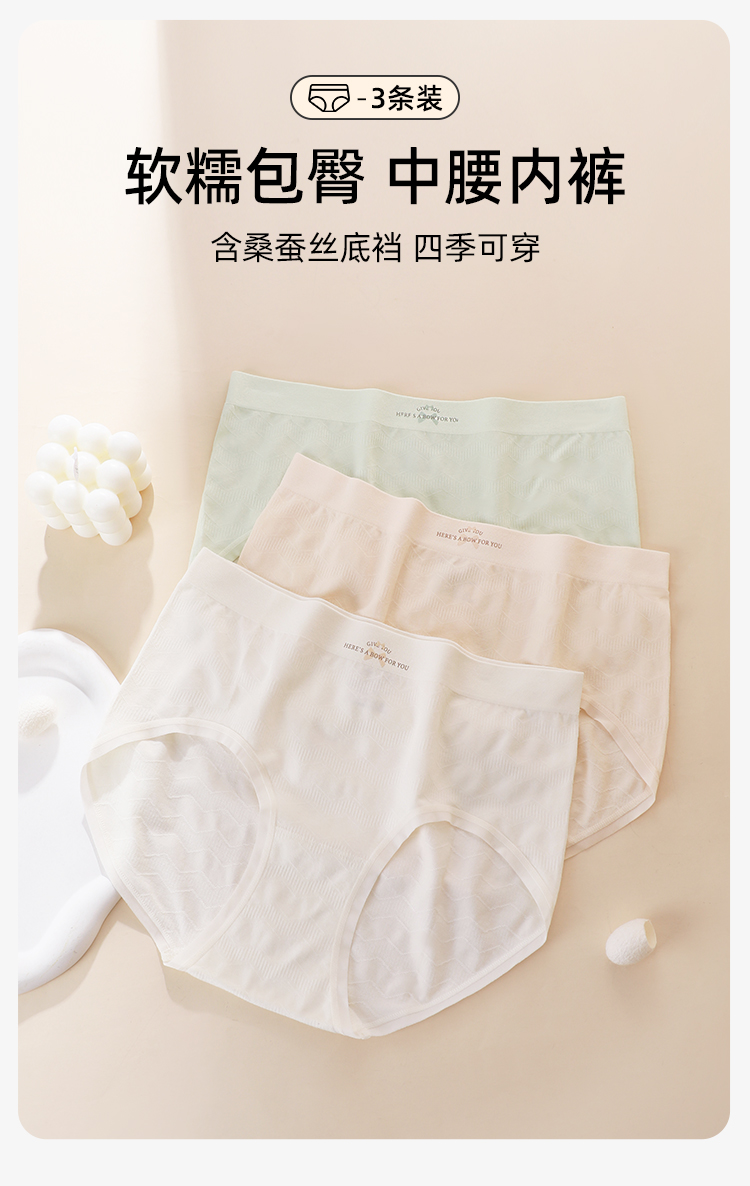 【3条装】熳洁儿 中腰无缝女士内裤包臀桑蚕丝底档肌理提花24762121