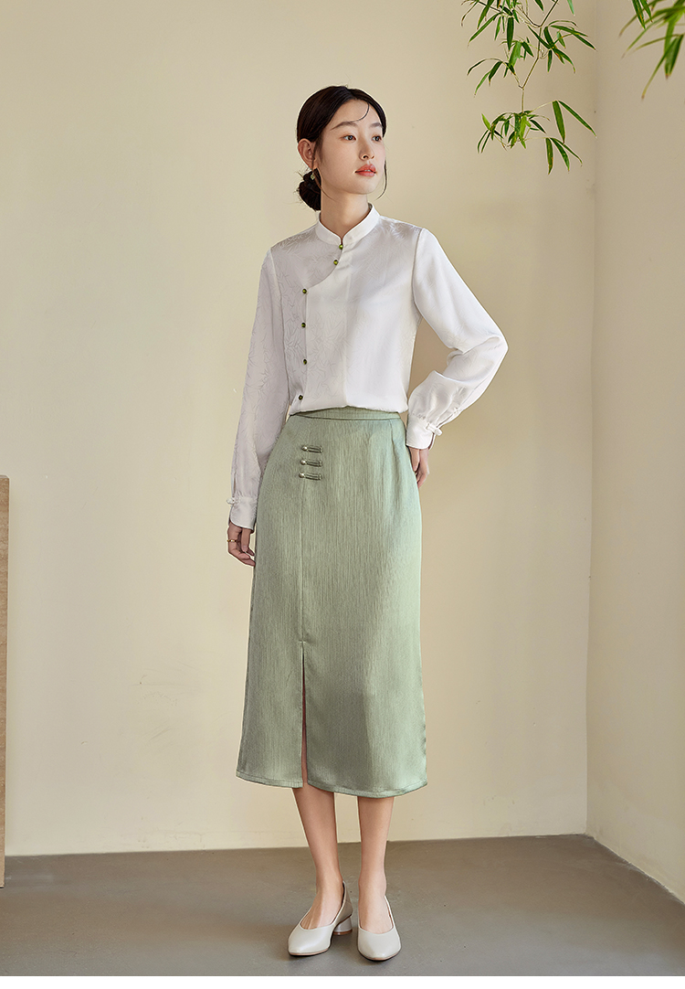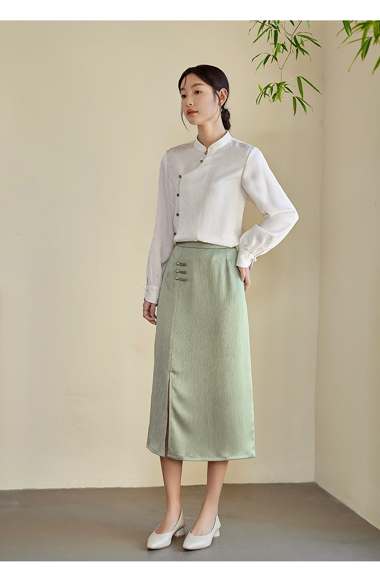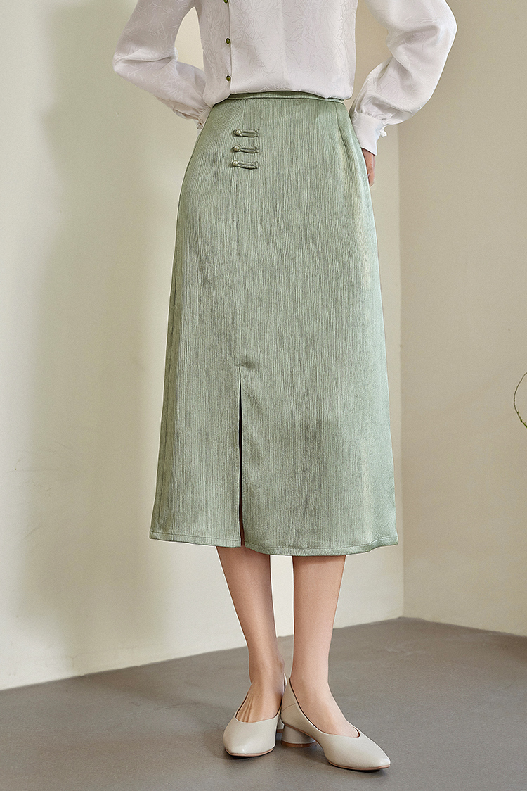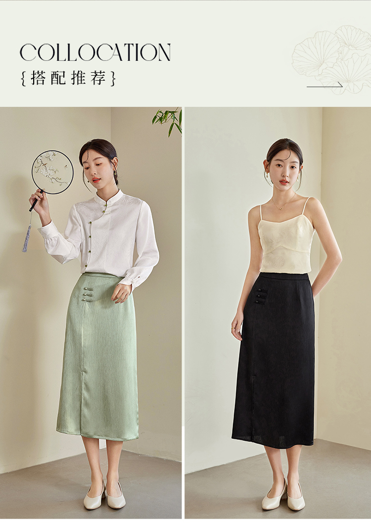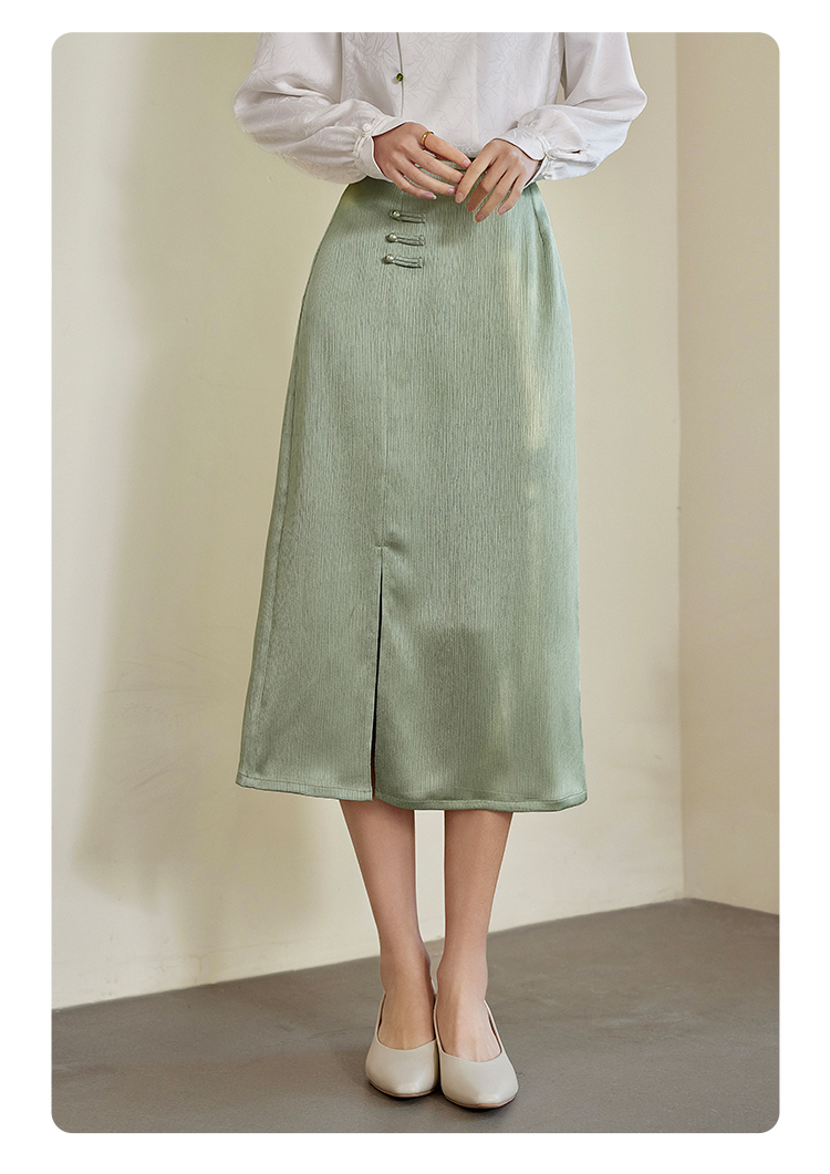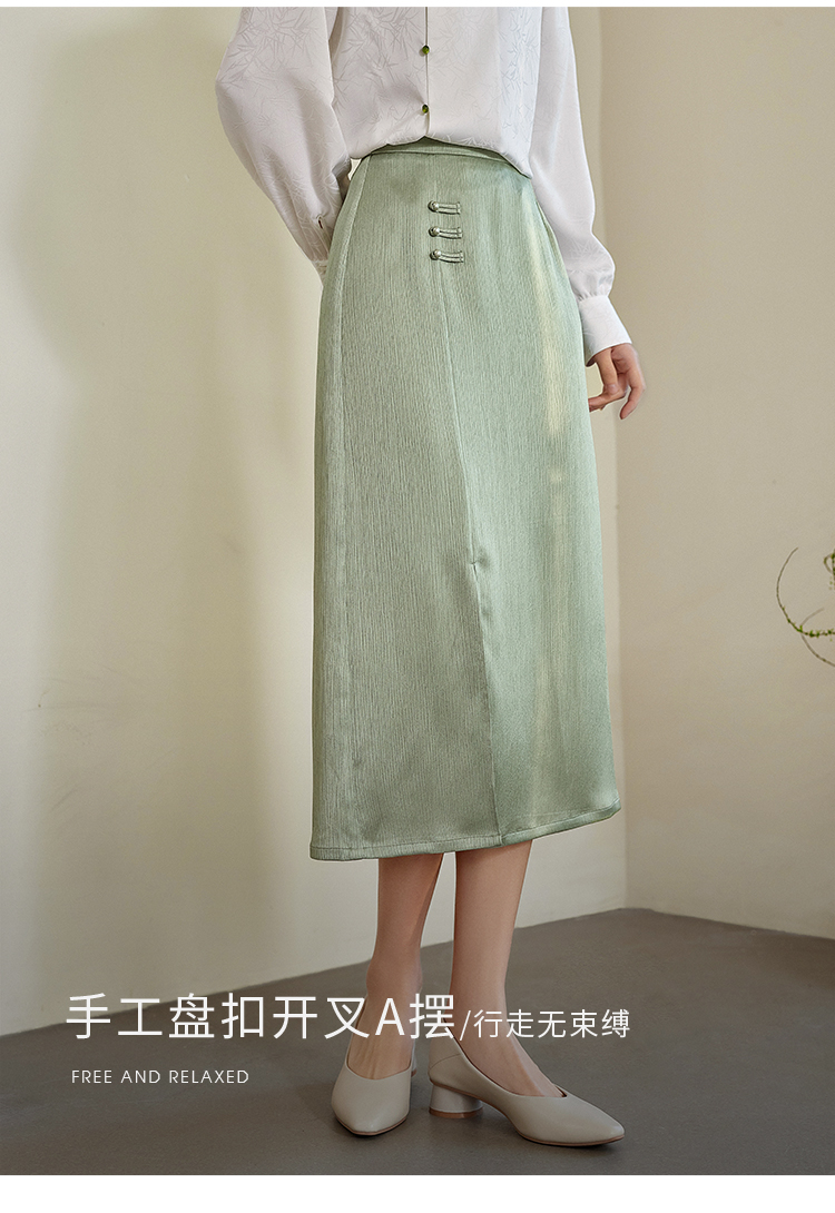 【专属特价】熙世界国风新中式盘扣半身裙女高腰显瘦开叉中长裙子2025秋新款