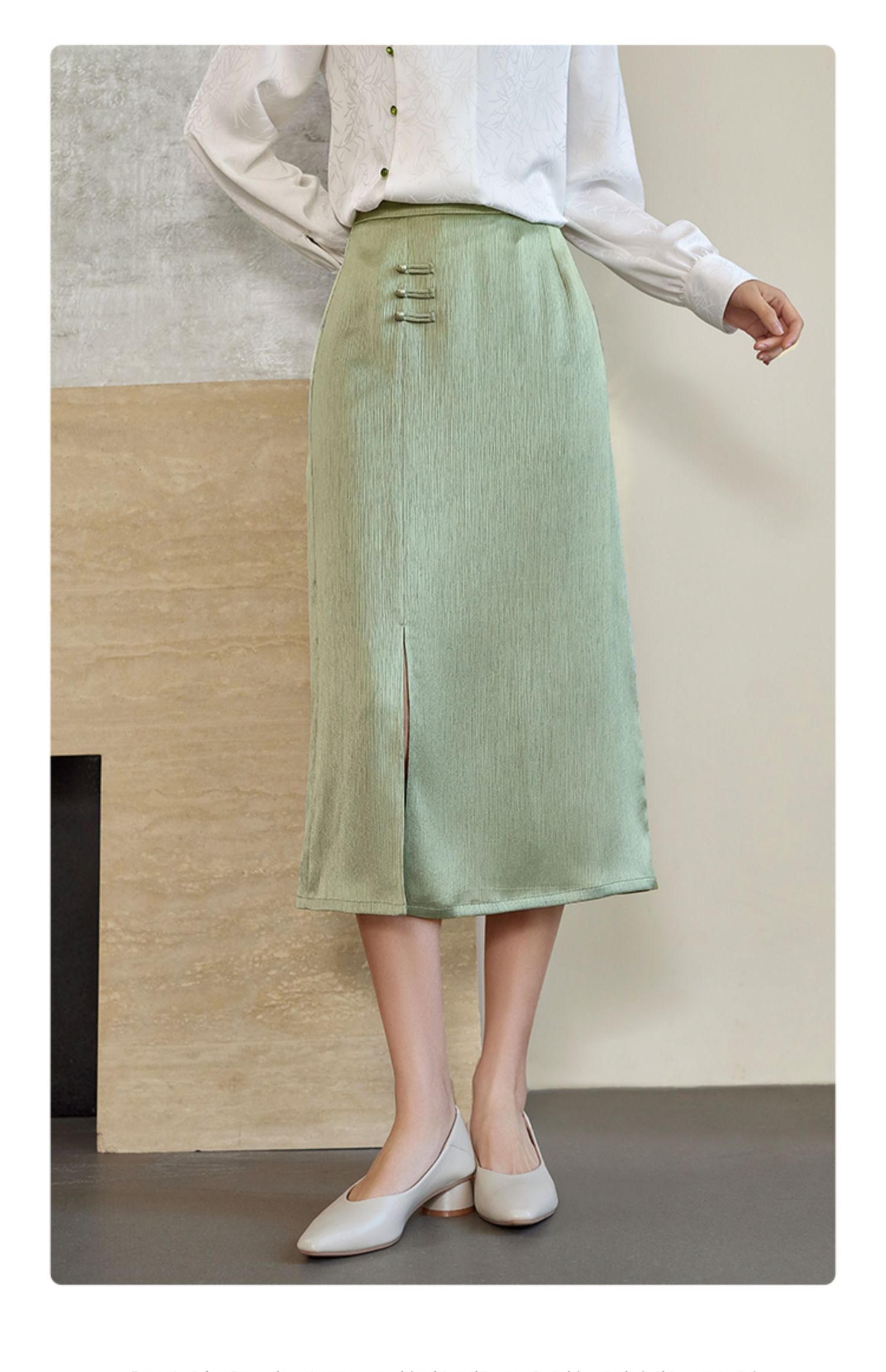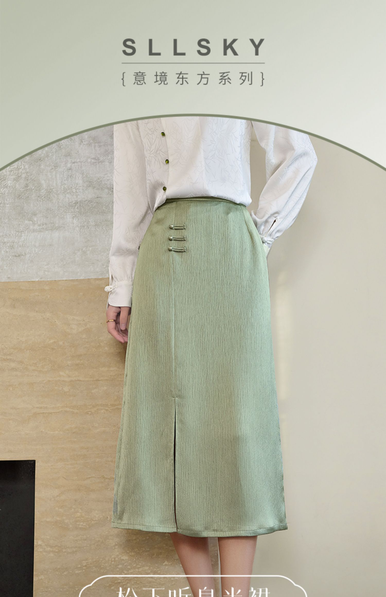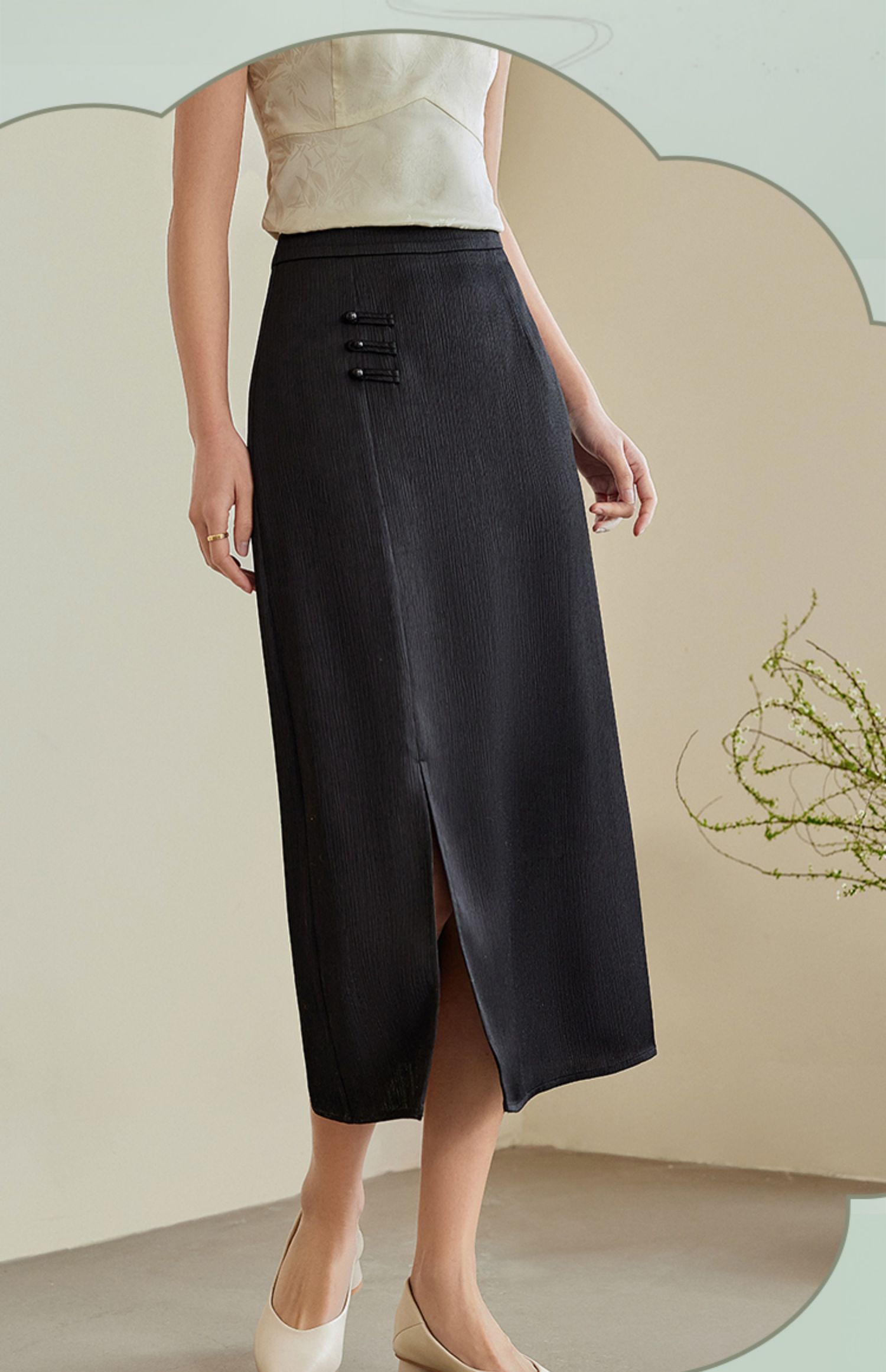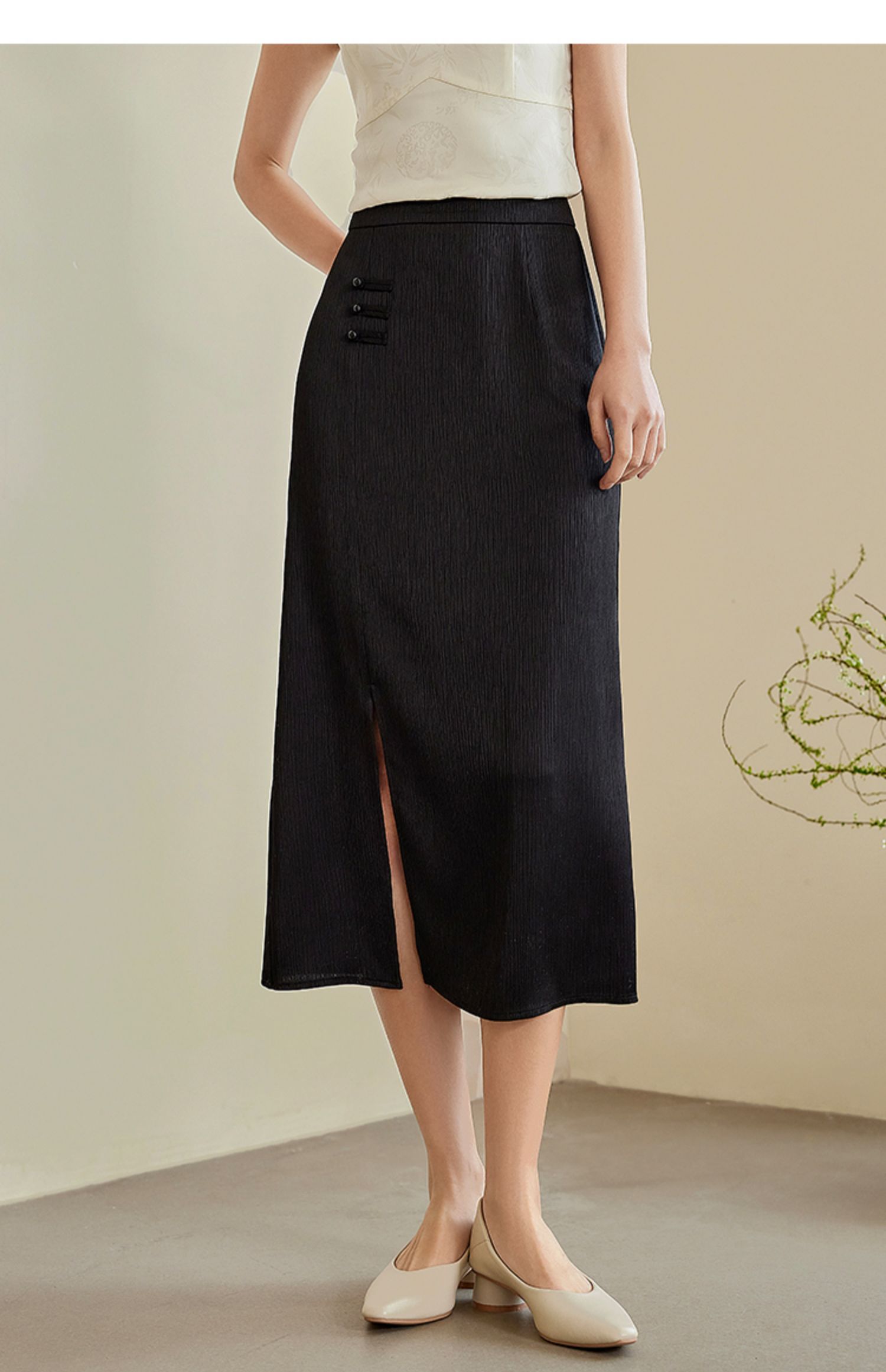 【专属特价】熙世界国风新中式盘扣半身裙女高腰显瘦开叉中长裙子2025秋新款
