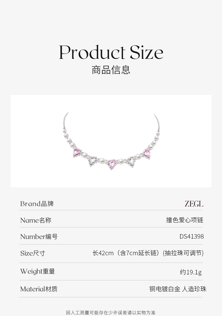 ZEGL设计师璀璨甜心系列爱心人造珍珠项链女轻奢高级感锁骨链配饰