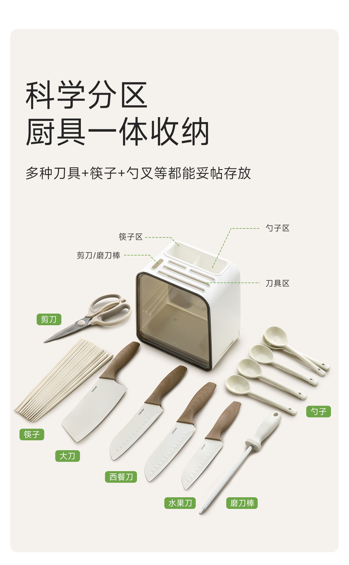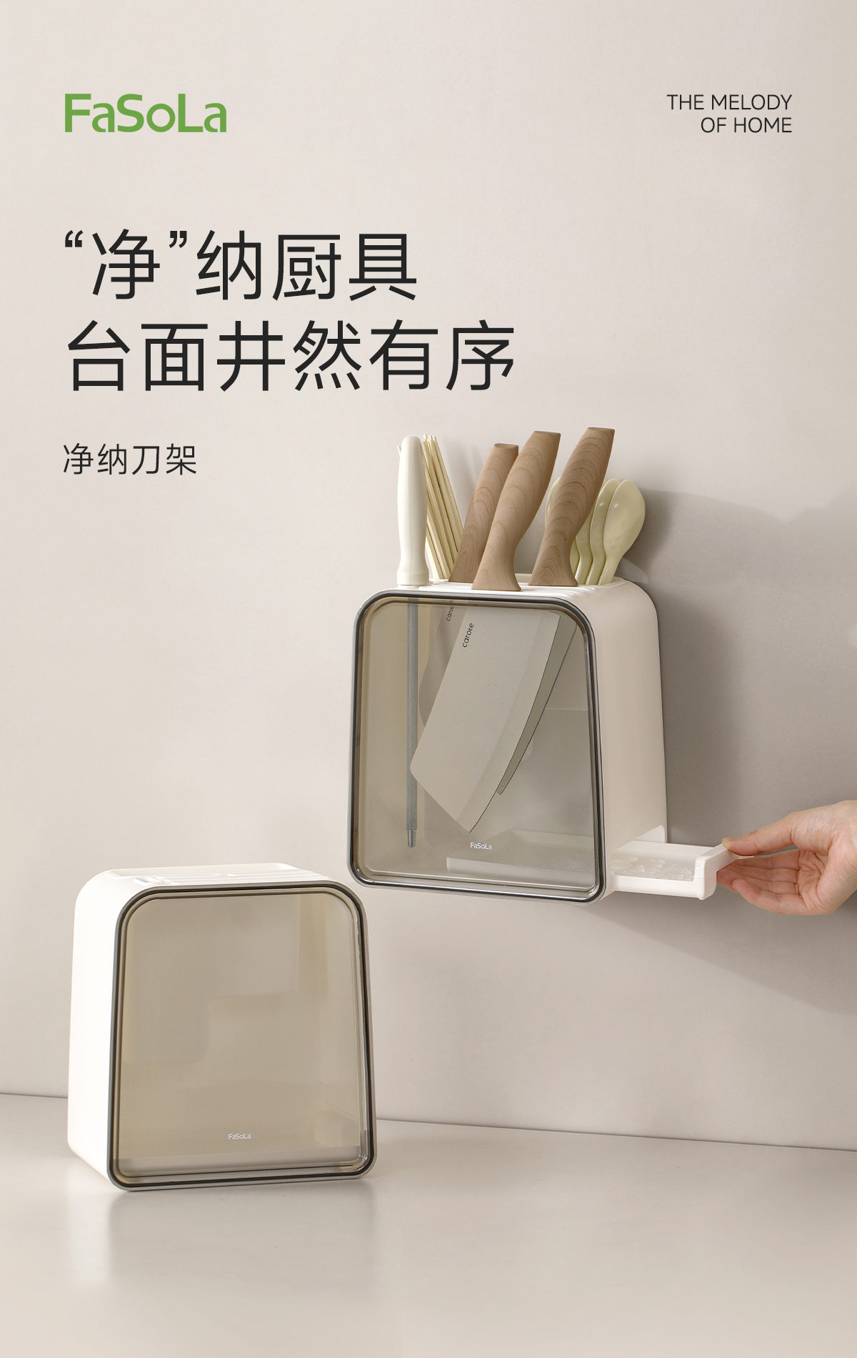 FaSoLa厨房刀架置物架筷子筒笼盒一体收纳架沥水防霉菜刀收纳盒
