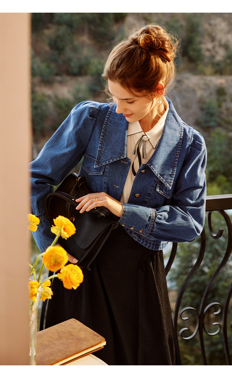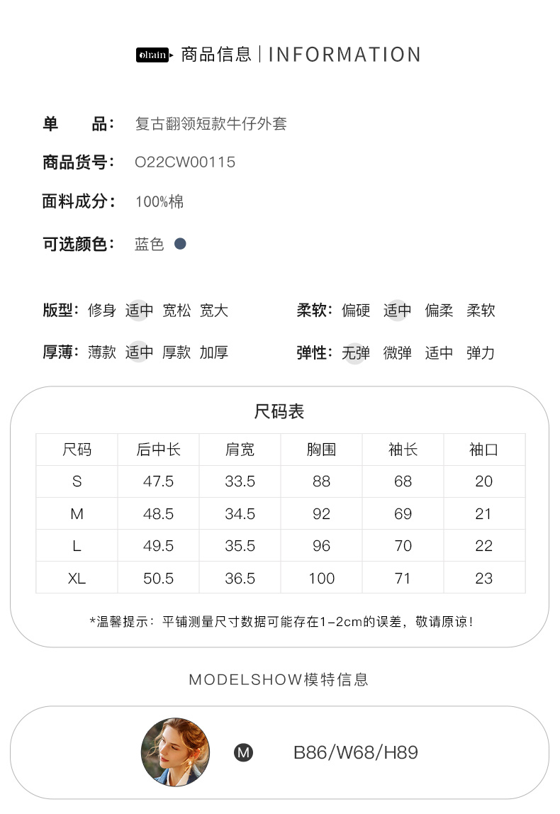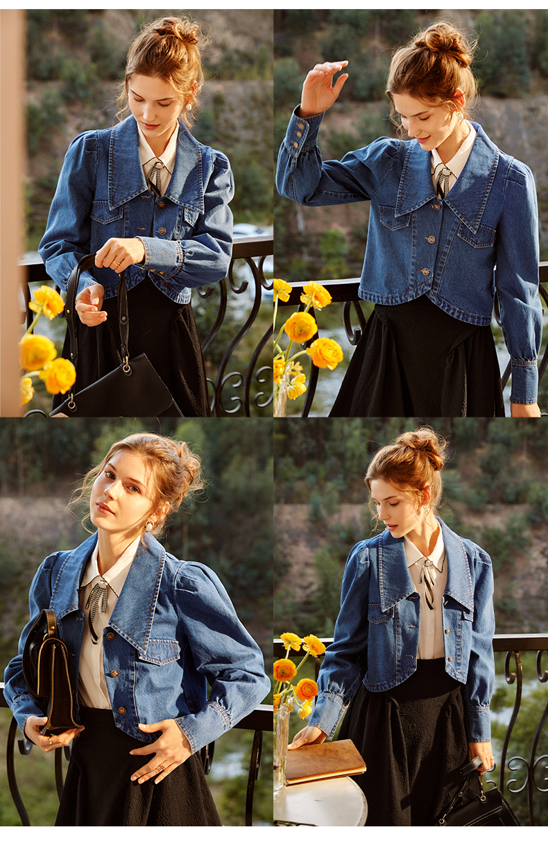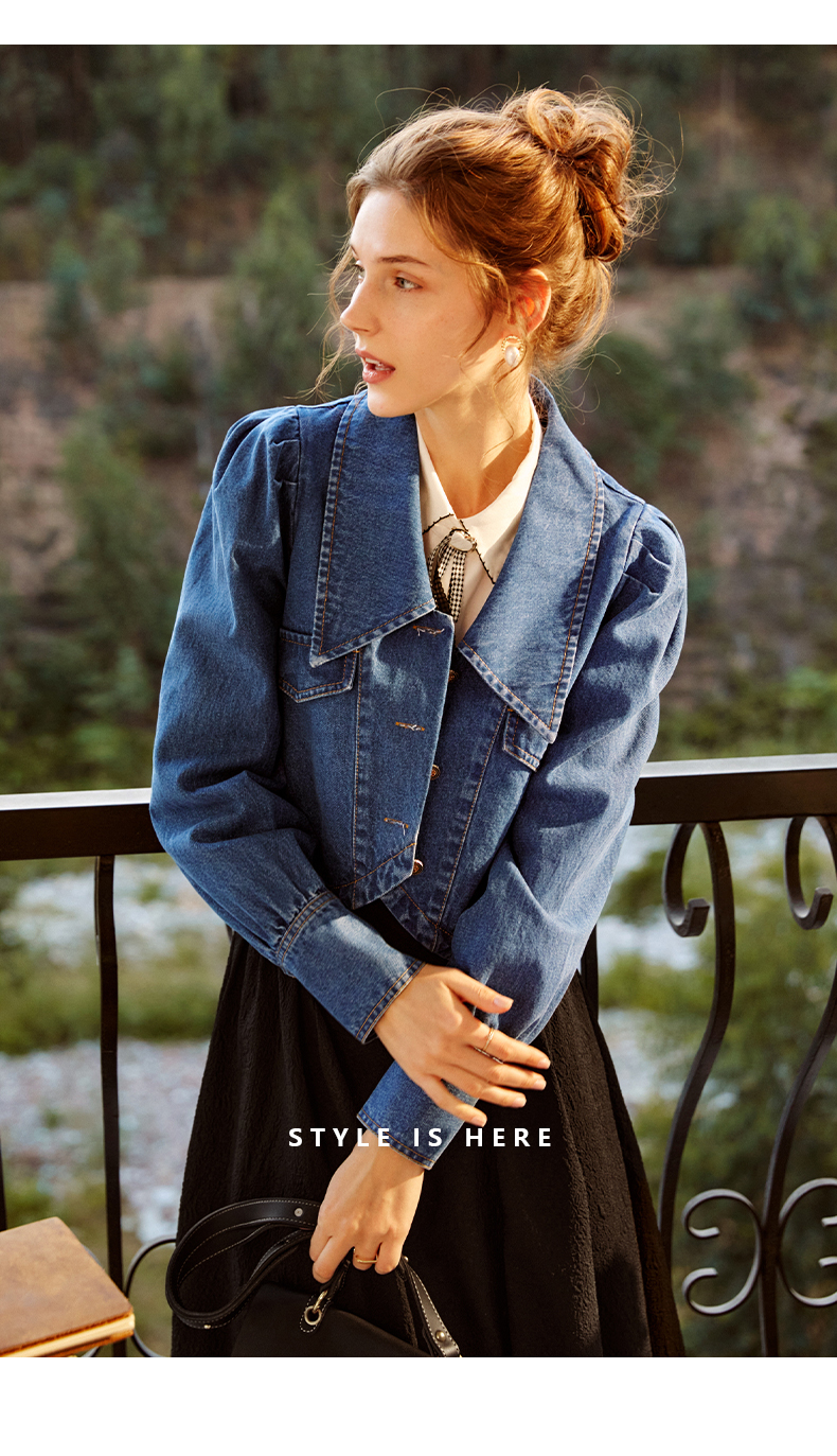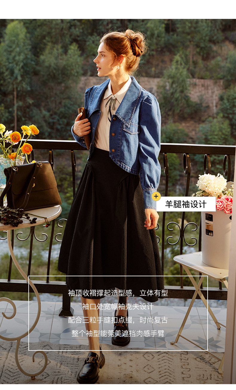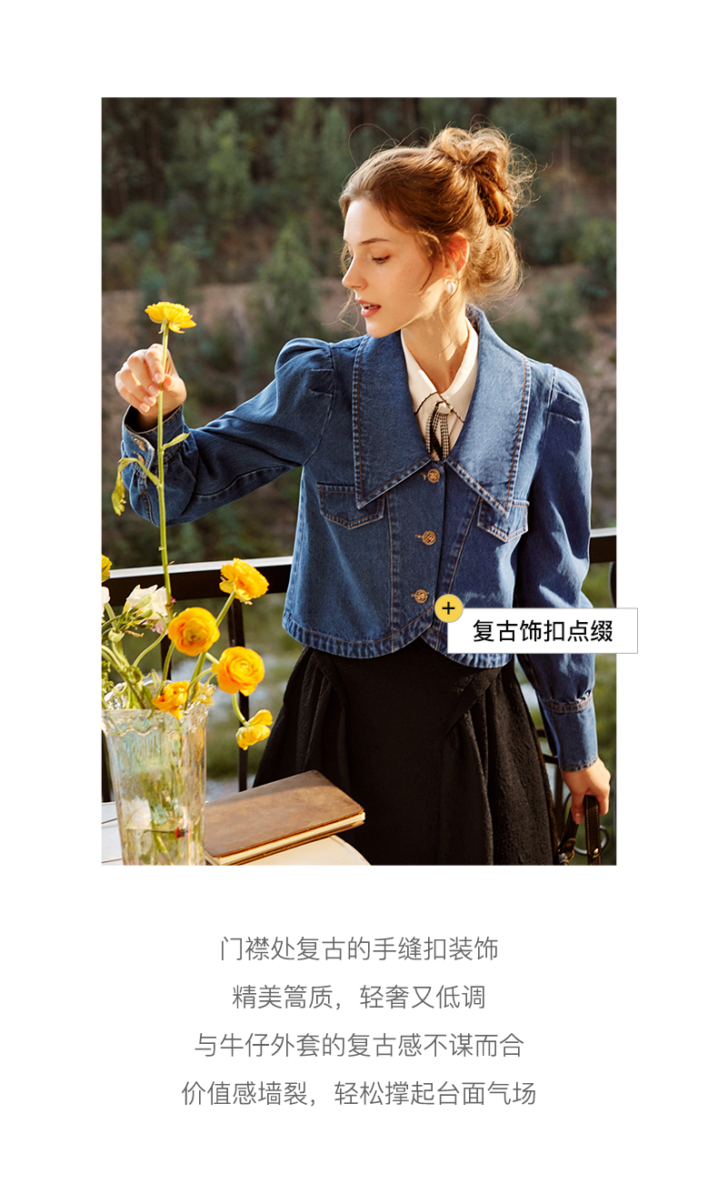 欧芮儿牛仔短外套女春季2022新款宽松显瘦气质复古法式优雅上衣