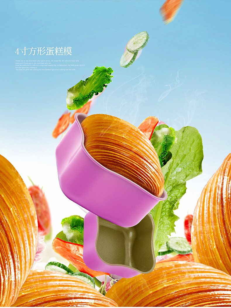 法焙客烘焙模具紫色方形蛋糕模 烘焙戚风蛋糕模具彩色模具