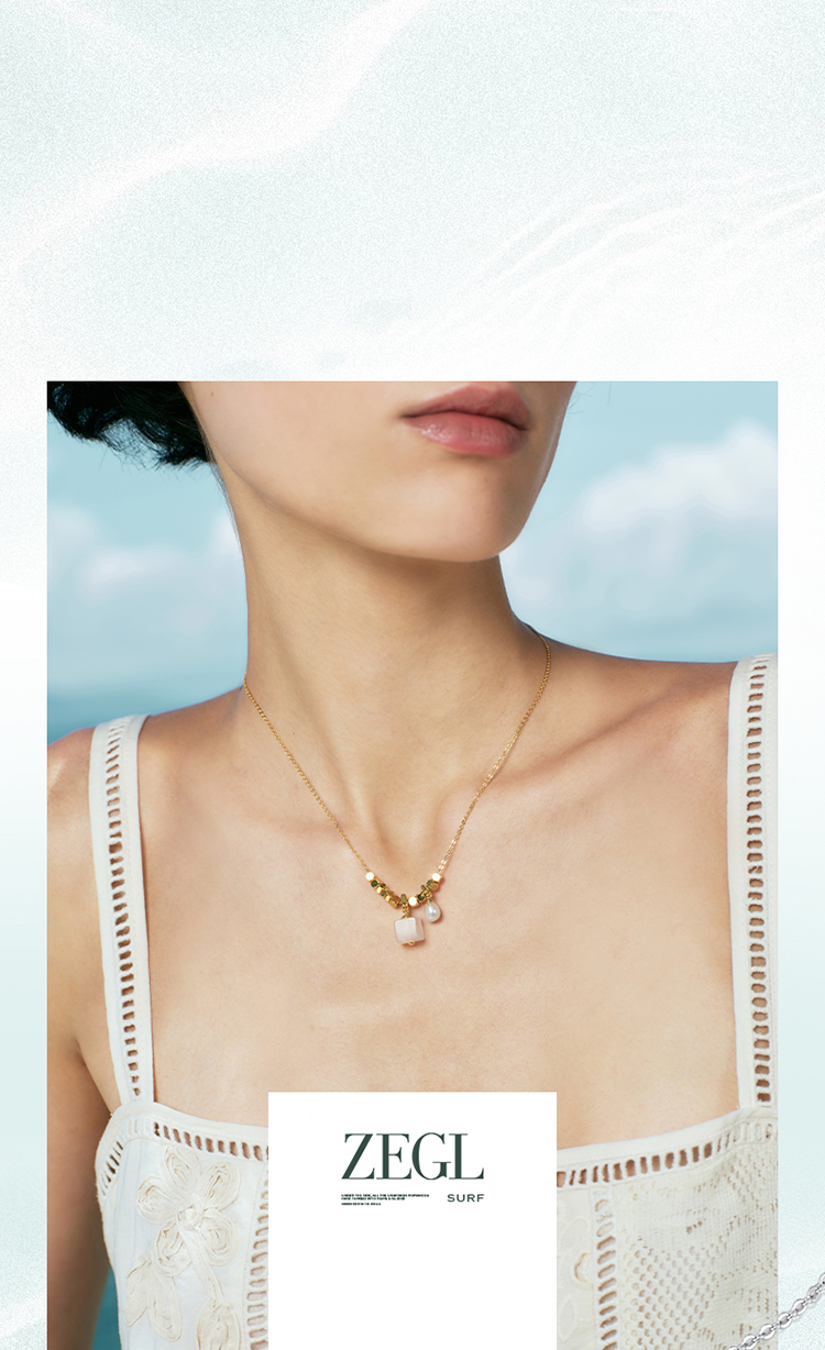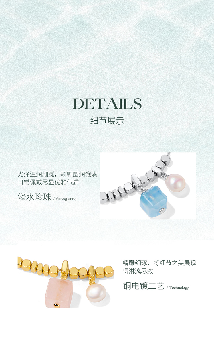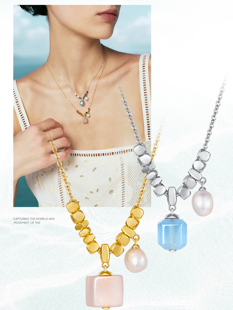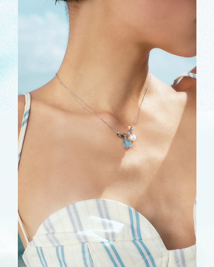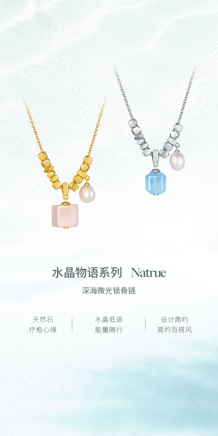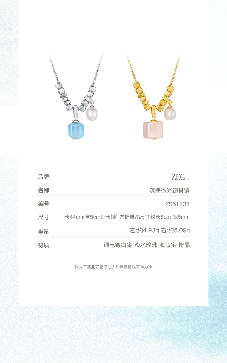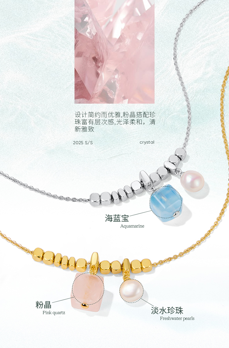 ZEGL设计师系列淡水珍珠海蓝宝项链女款2025新款爆款粉水晶锁骨链