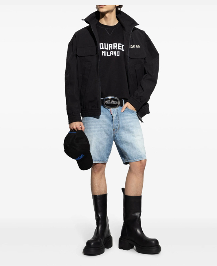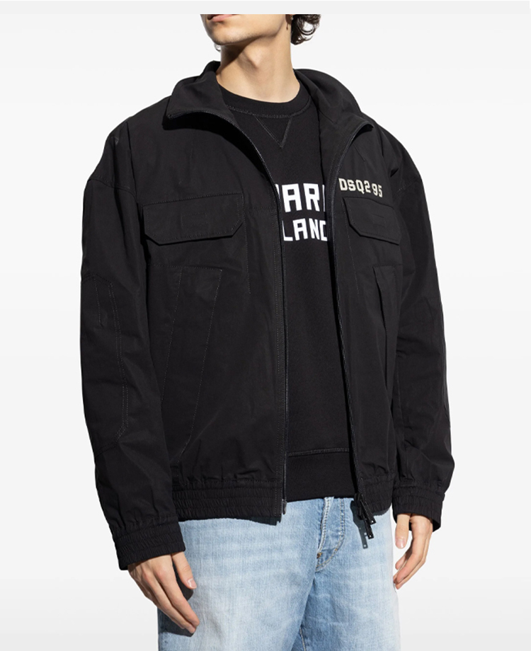 DSQUARED2 男士字母徽标印花拉链夹克外套 黑色 S74AM1565 S53578 900