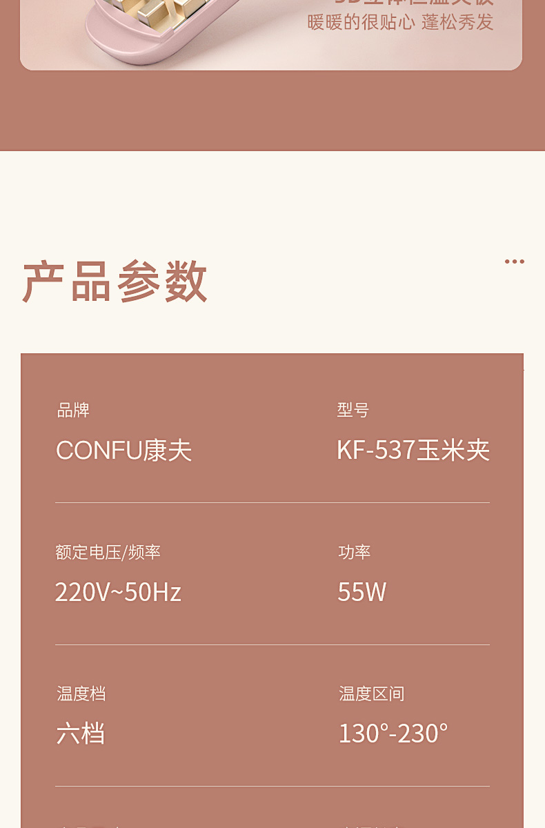 康夫玉米须烫夹板不伤发蓬松神器垫发根卷发棒恒温造型持久定型