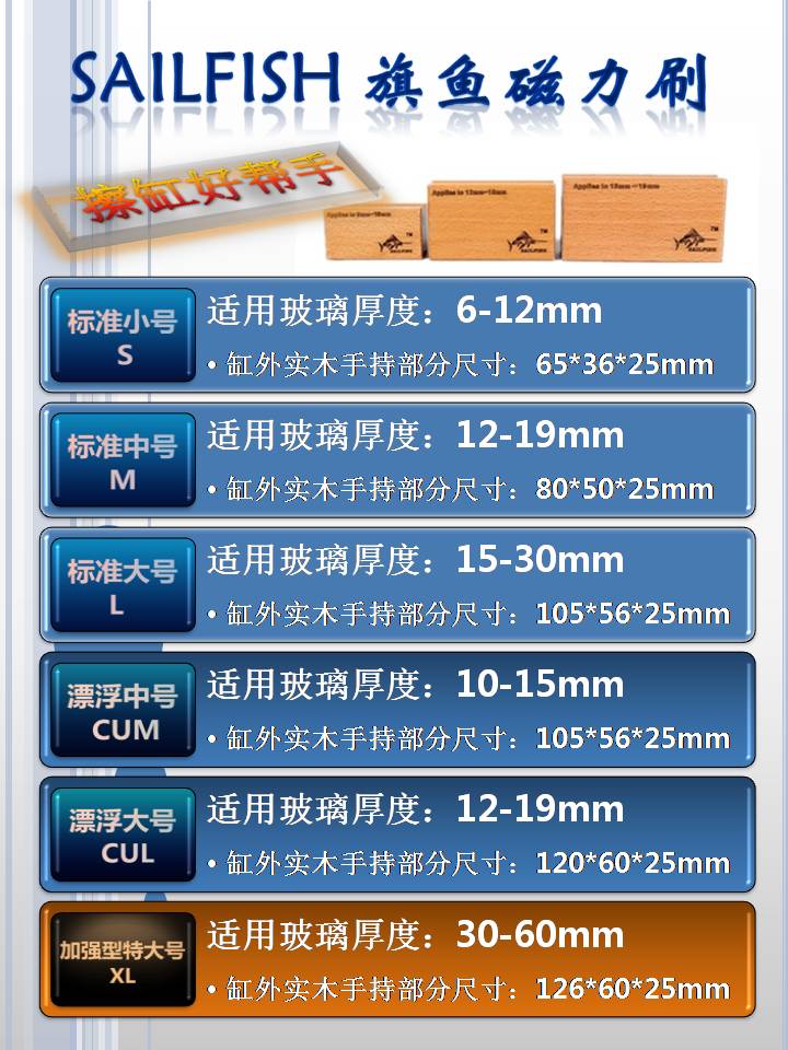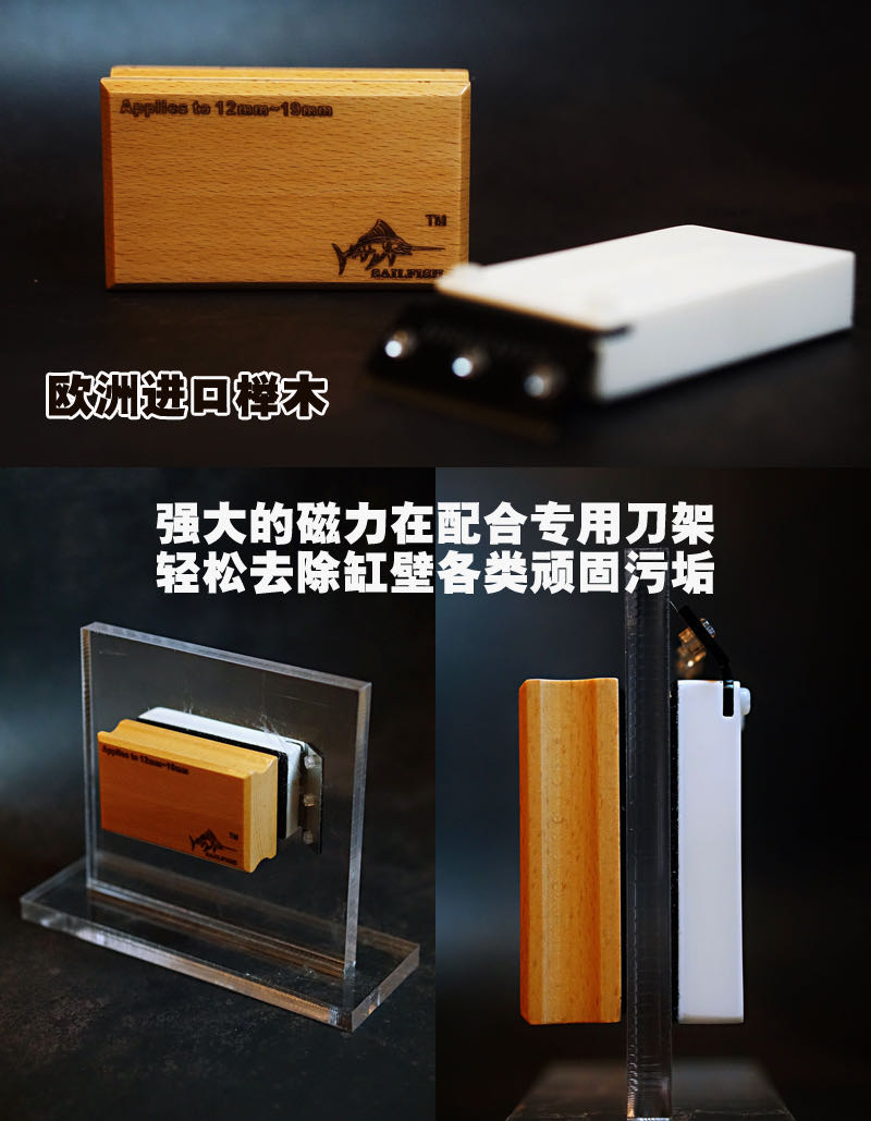 SAILFISH旗鱼缸擦磁刷磁力刷 实木缸刷 刮片架、刮片