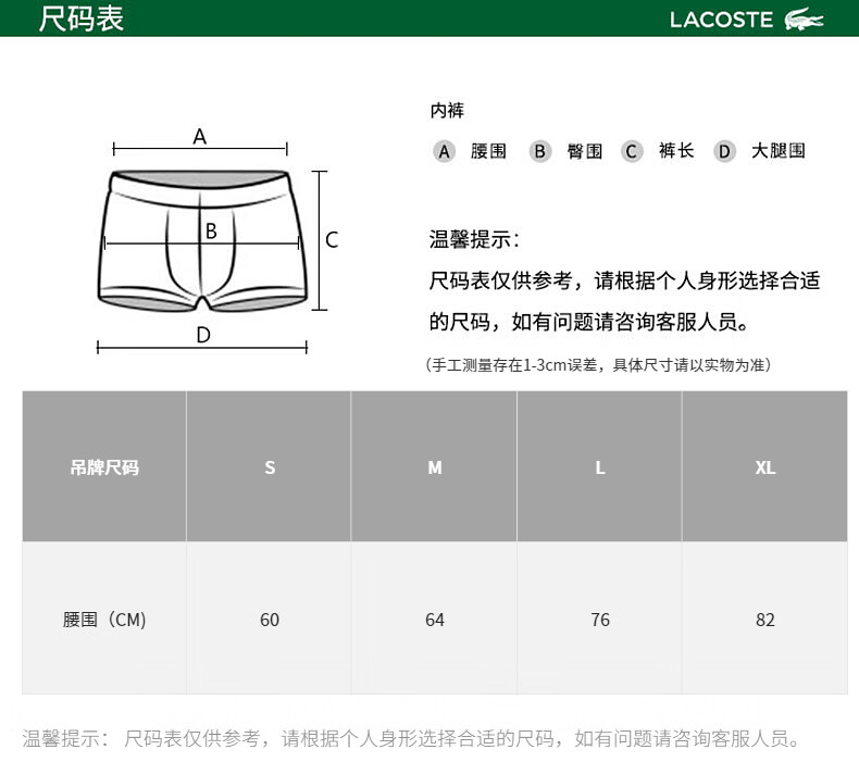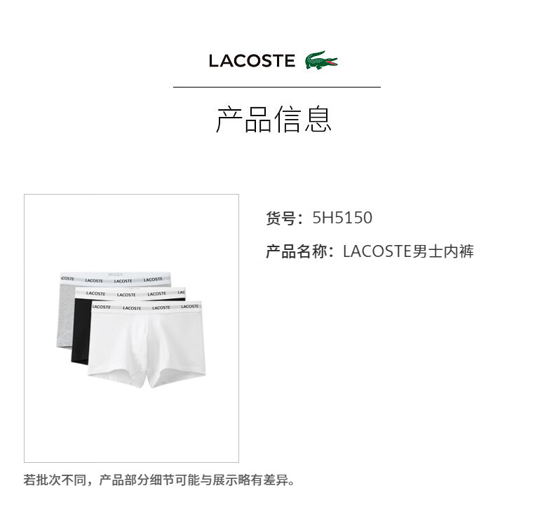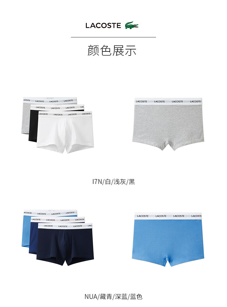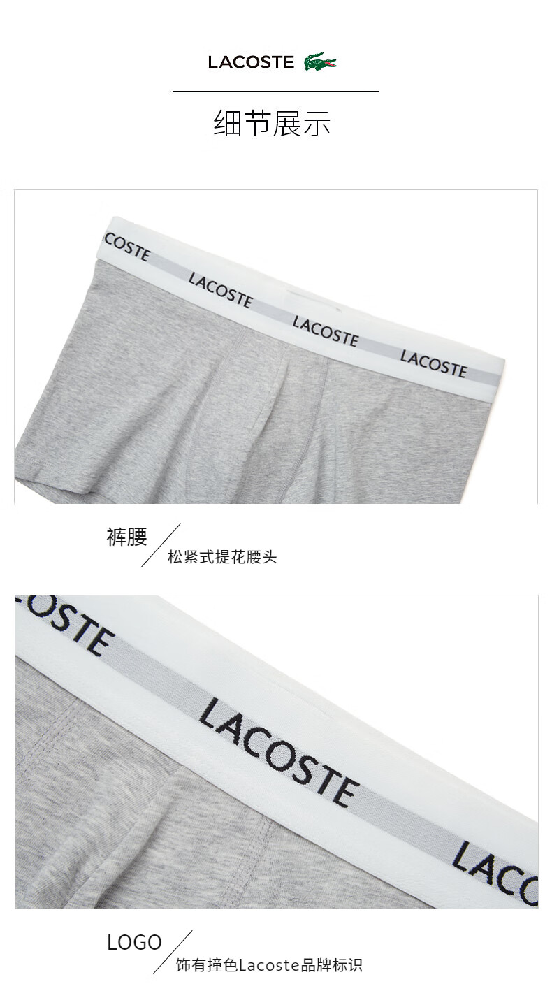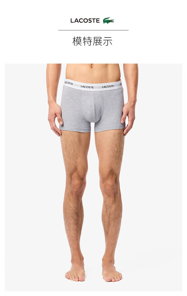 Lacoste法国鳄鱼男士新款时尚棉质舒适3条装平角裤内裤5H5150-10
