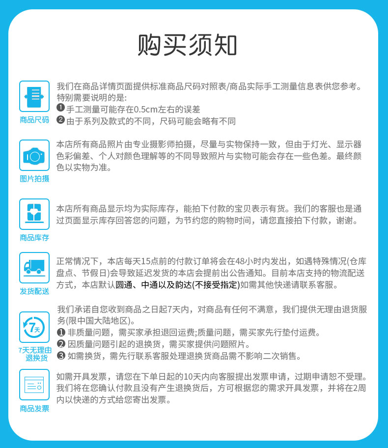 【售后政策】支持7天无理由退换货:需要保持商品包装完好,不影响二次销售(退换货前需提供产品照片/视频,如有赠品需一同寄回),质量问题可提供图片,我们为您处理