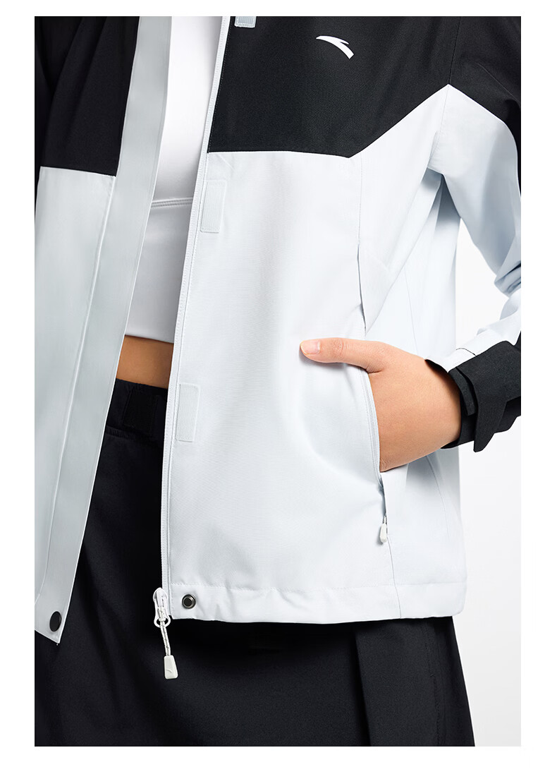 安踏青松壳LT丨冲锋衣女士春季无氟防泼水拼色户外运动外套 基础黑162616601U -4