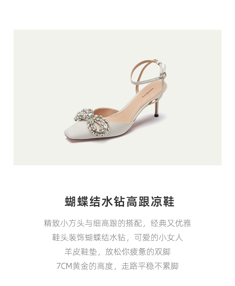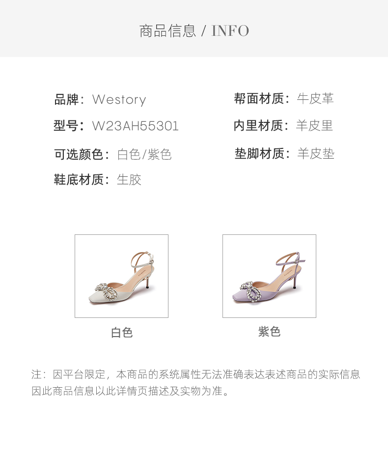 westory女鞋夏季新款尖头高跟牛皮后空鞋羊皮内里牛皮鞋垫72961