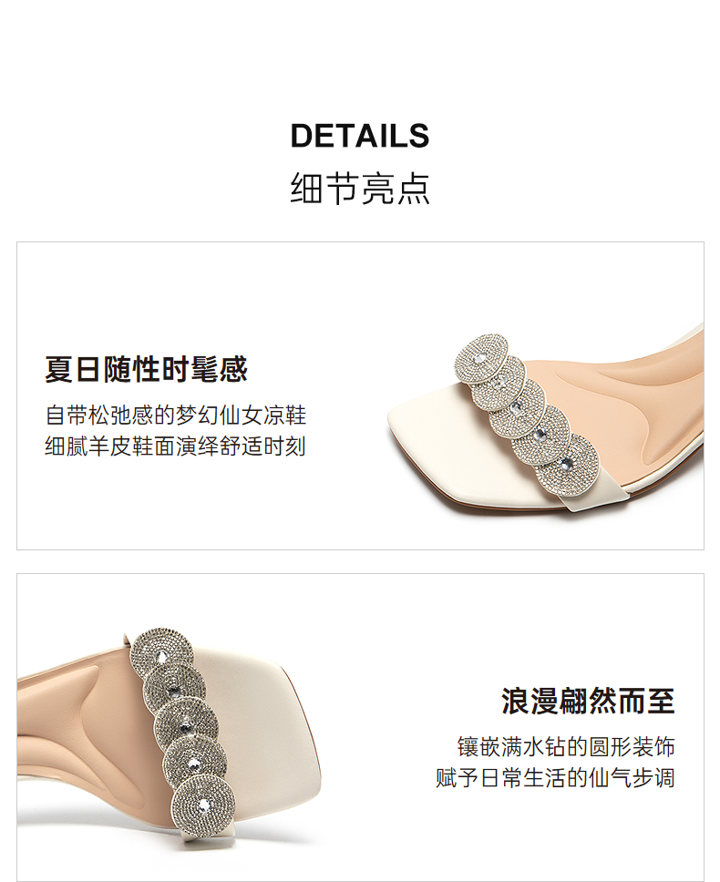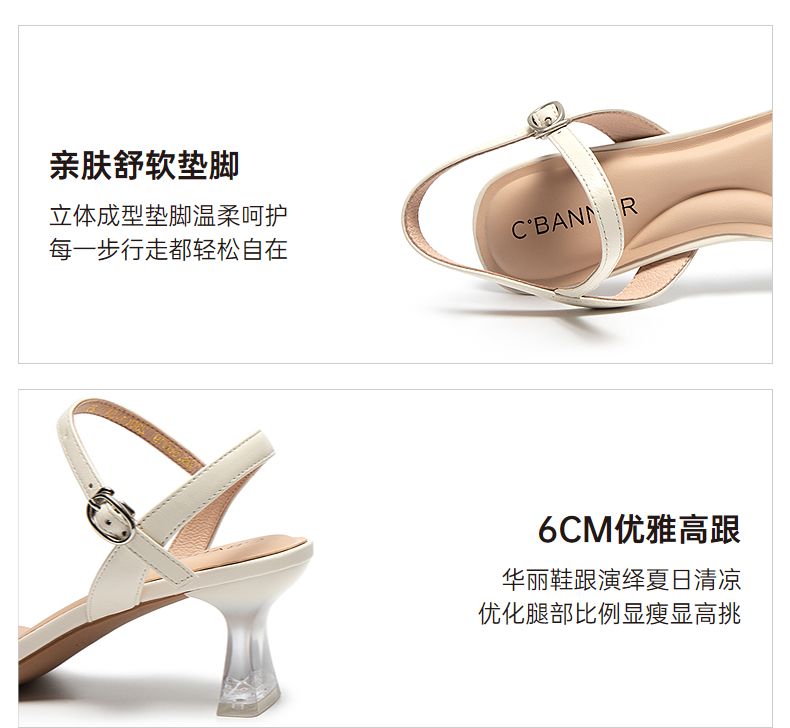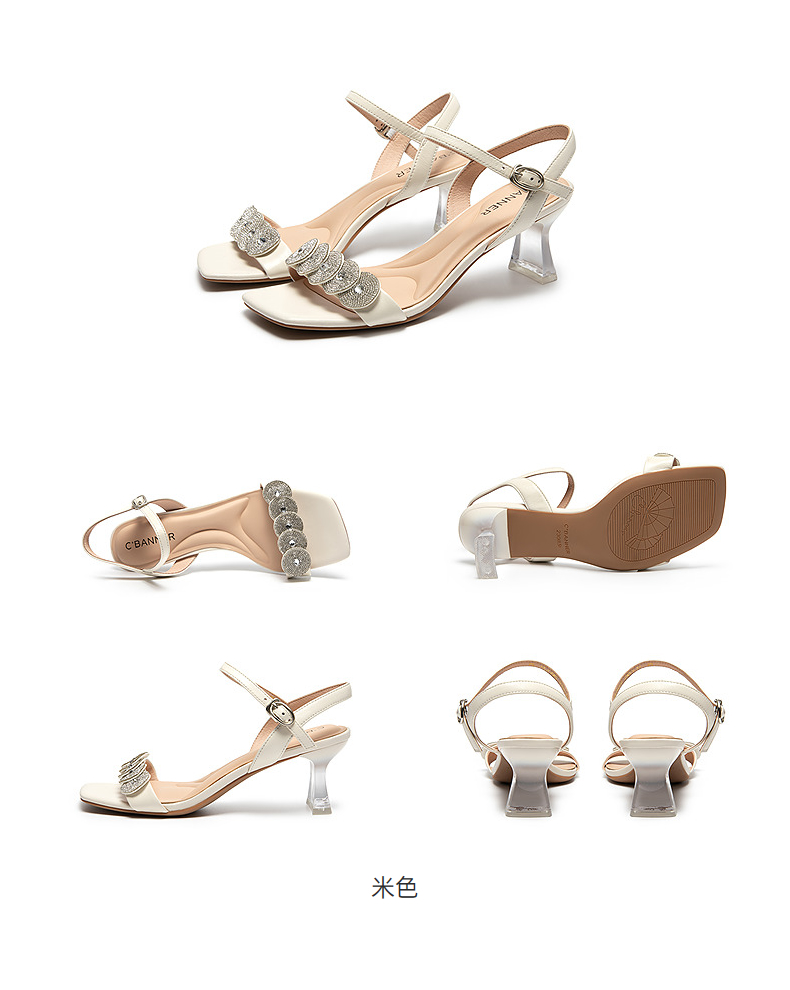 千百度粗高跟一字带时装凉鞋女款配裙子露趾绝美凉鞋A25335920
