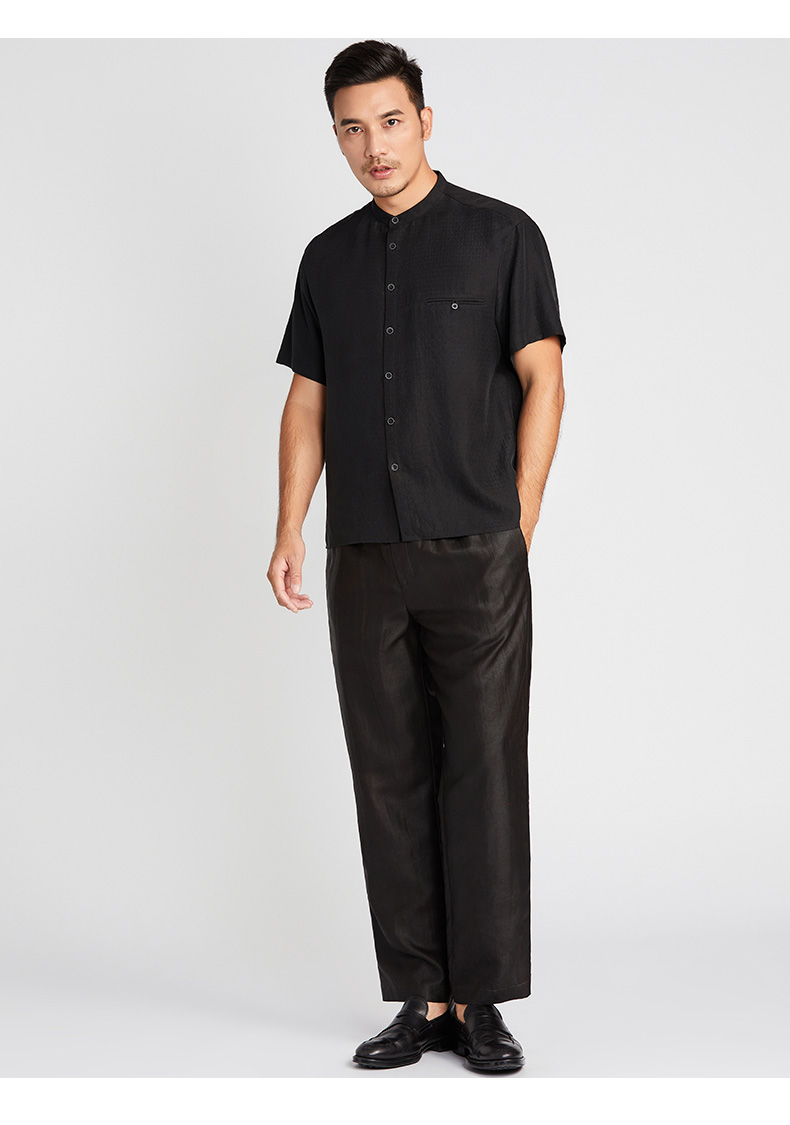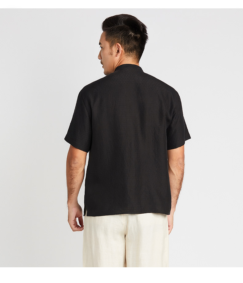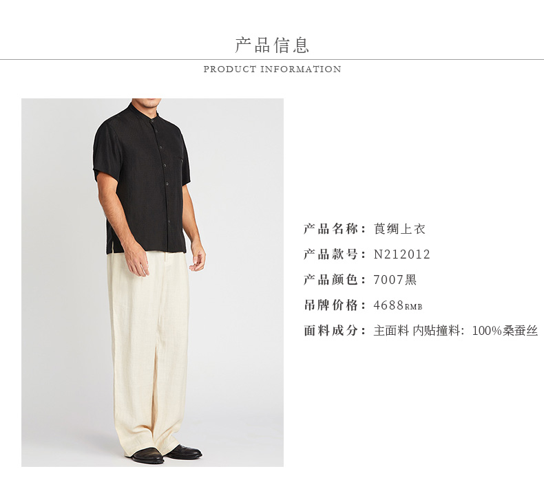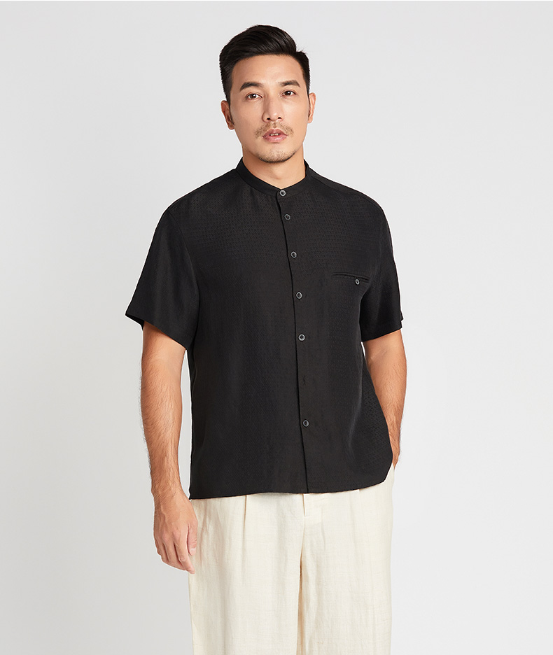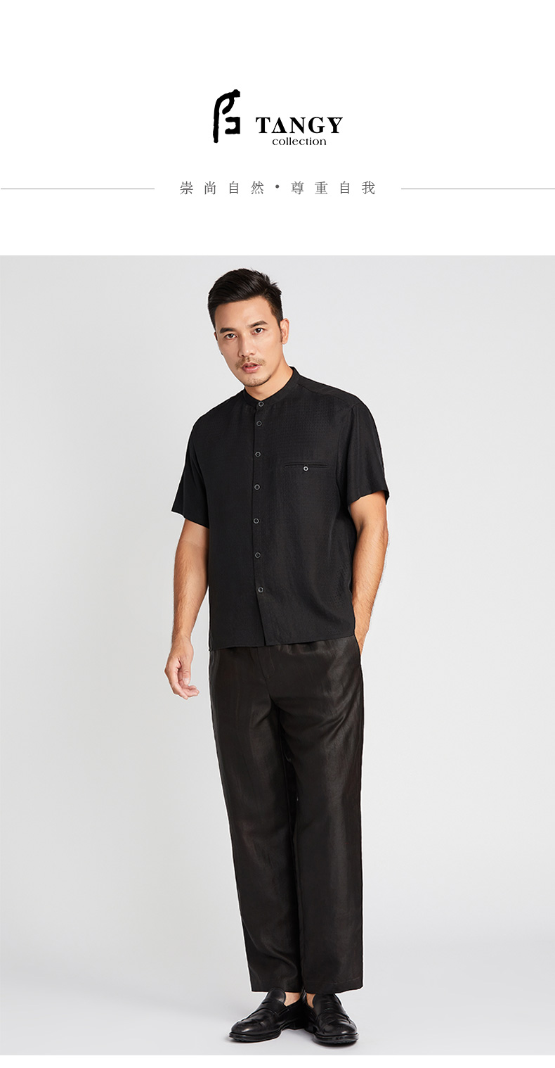 TANGY Collection/天意精品2021年春夏新品原创落肩袖莨绸短袖衬衫