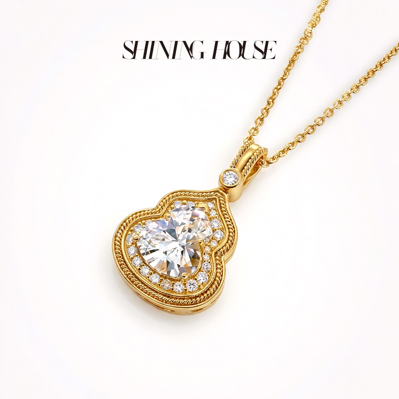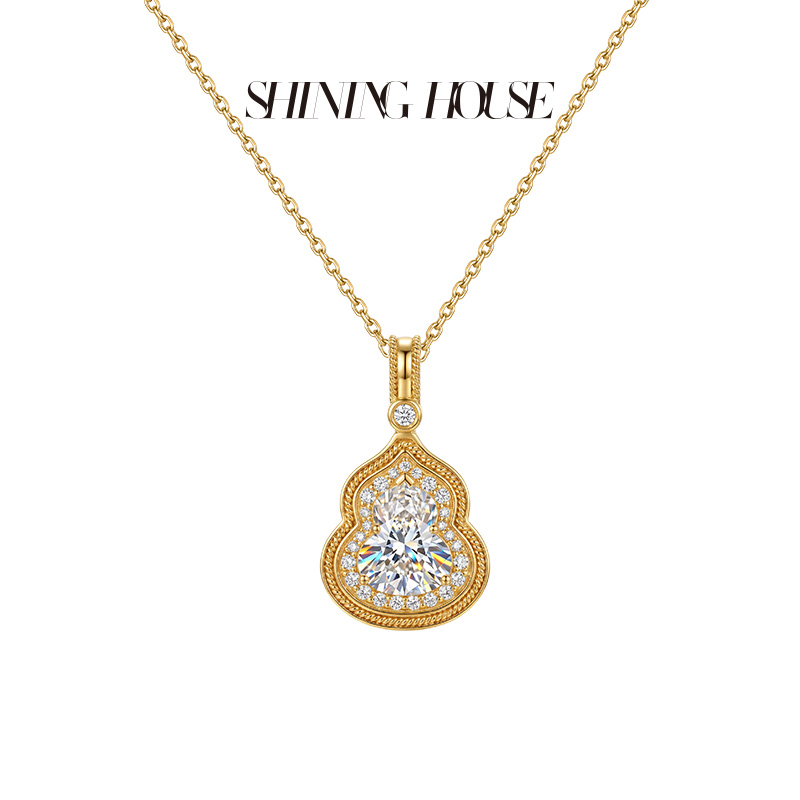 意趣东方系列 ShiningHouse[培育] 足金钻石吊坠 葫芦形1克拉钻人工真钻人造钻石古法黄金时尚钻石吊坠【此商品不支持7天无理由退货退款】预计3日发货