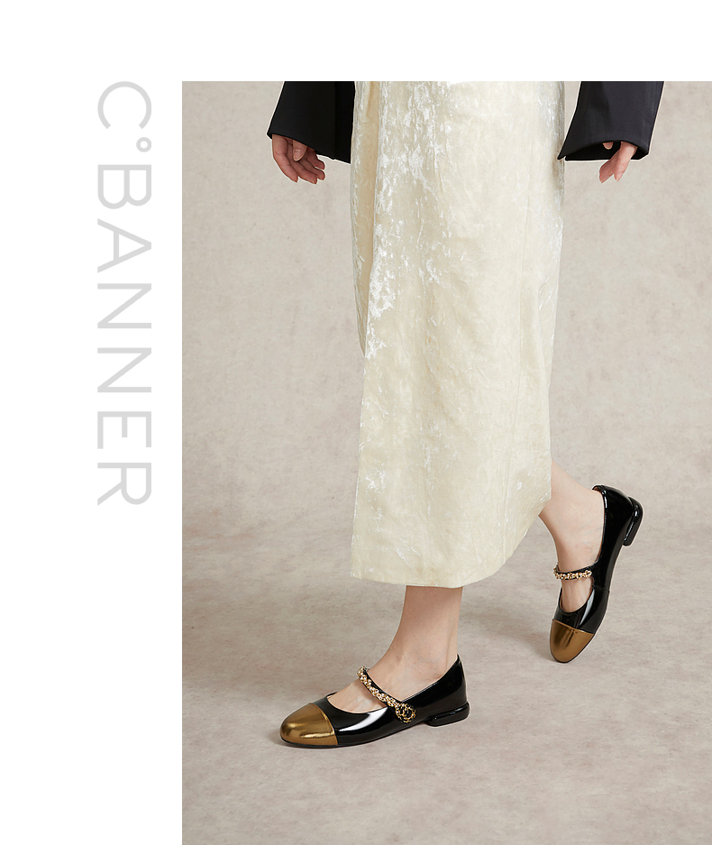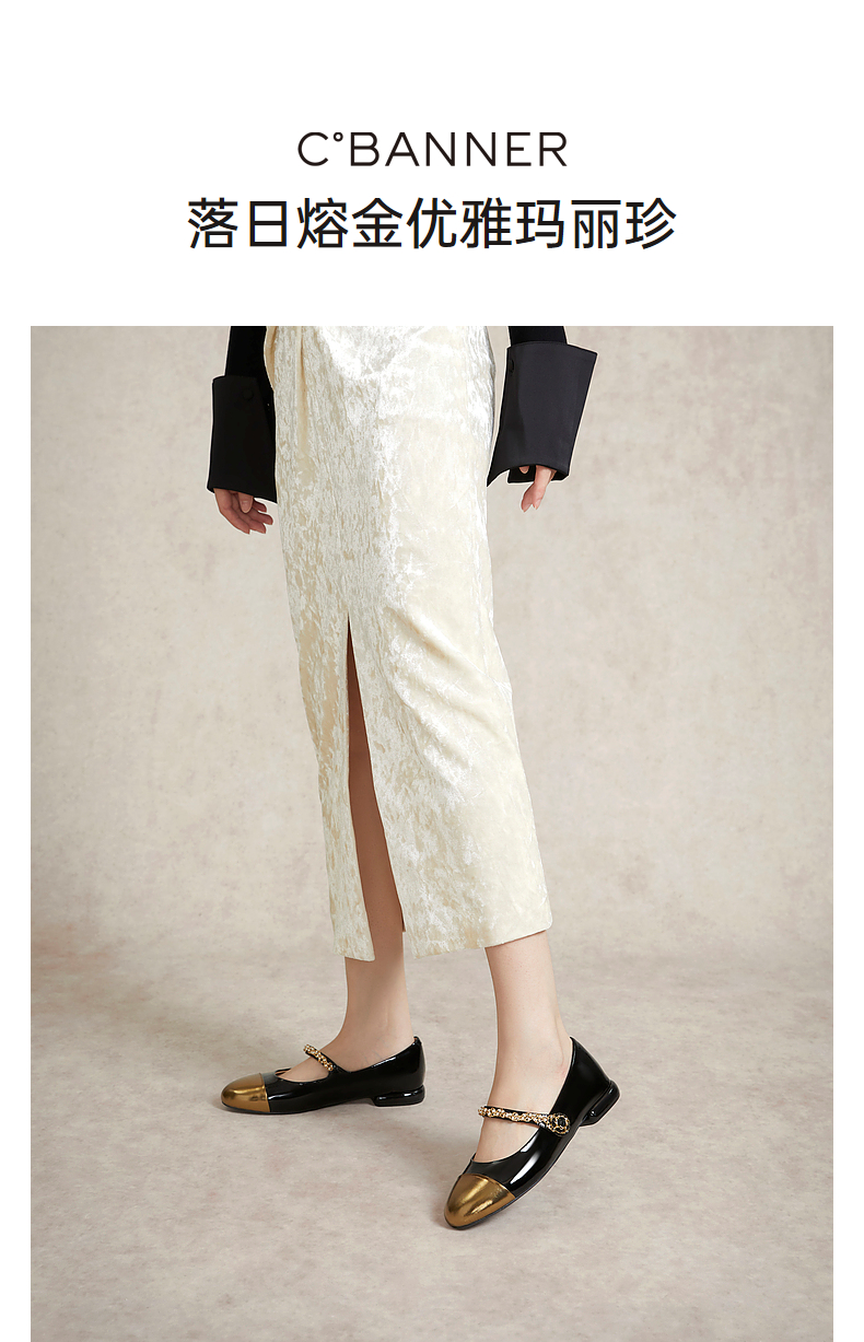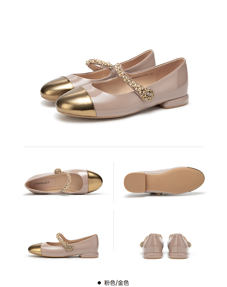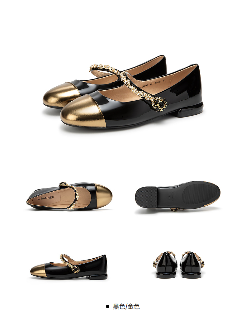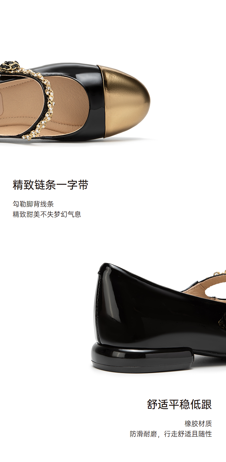 千百度时尚拼接玛丽珍鞋女春季小香风晚晚鞋单鞋A24180904